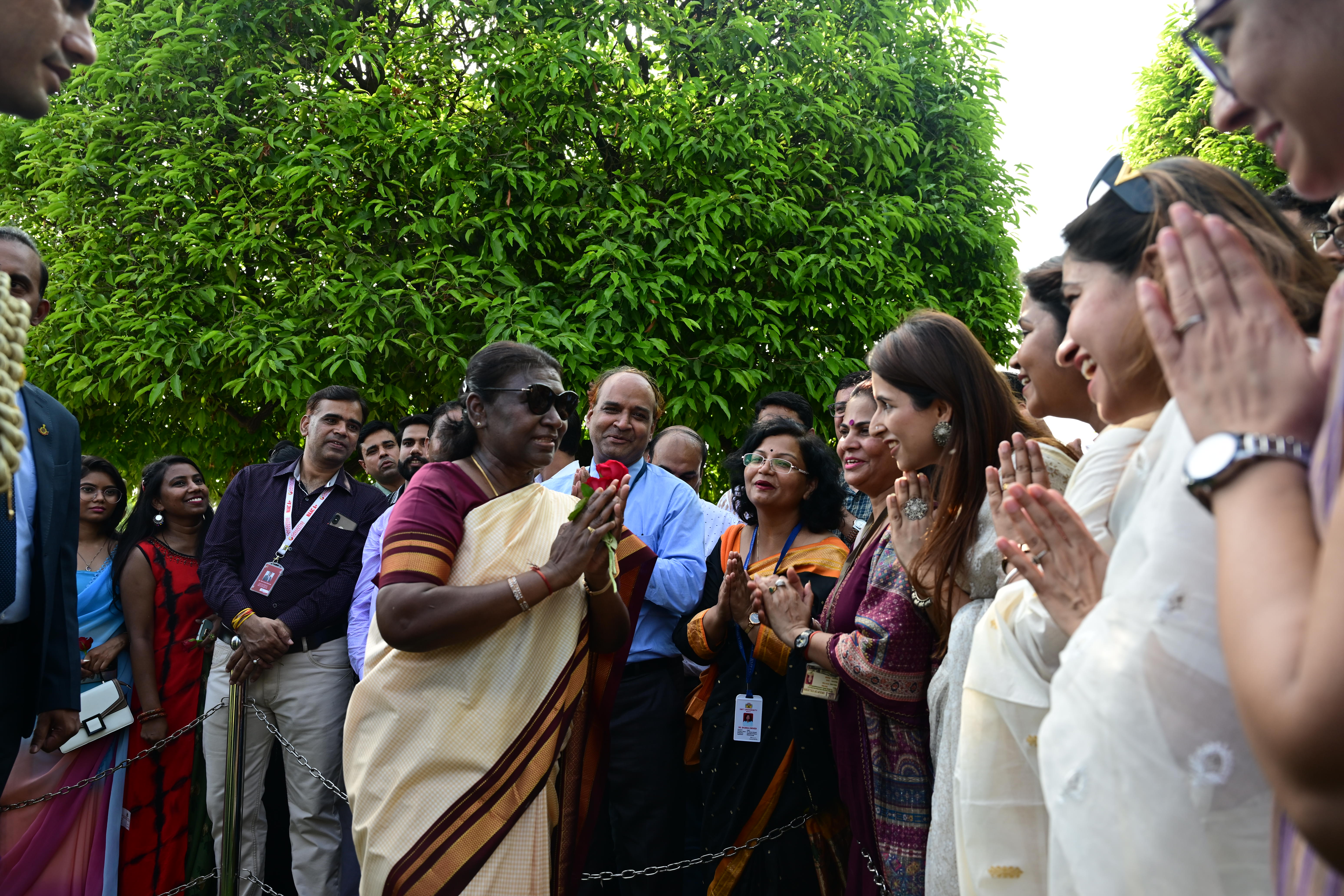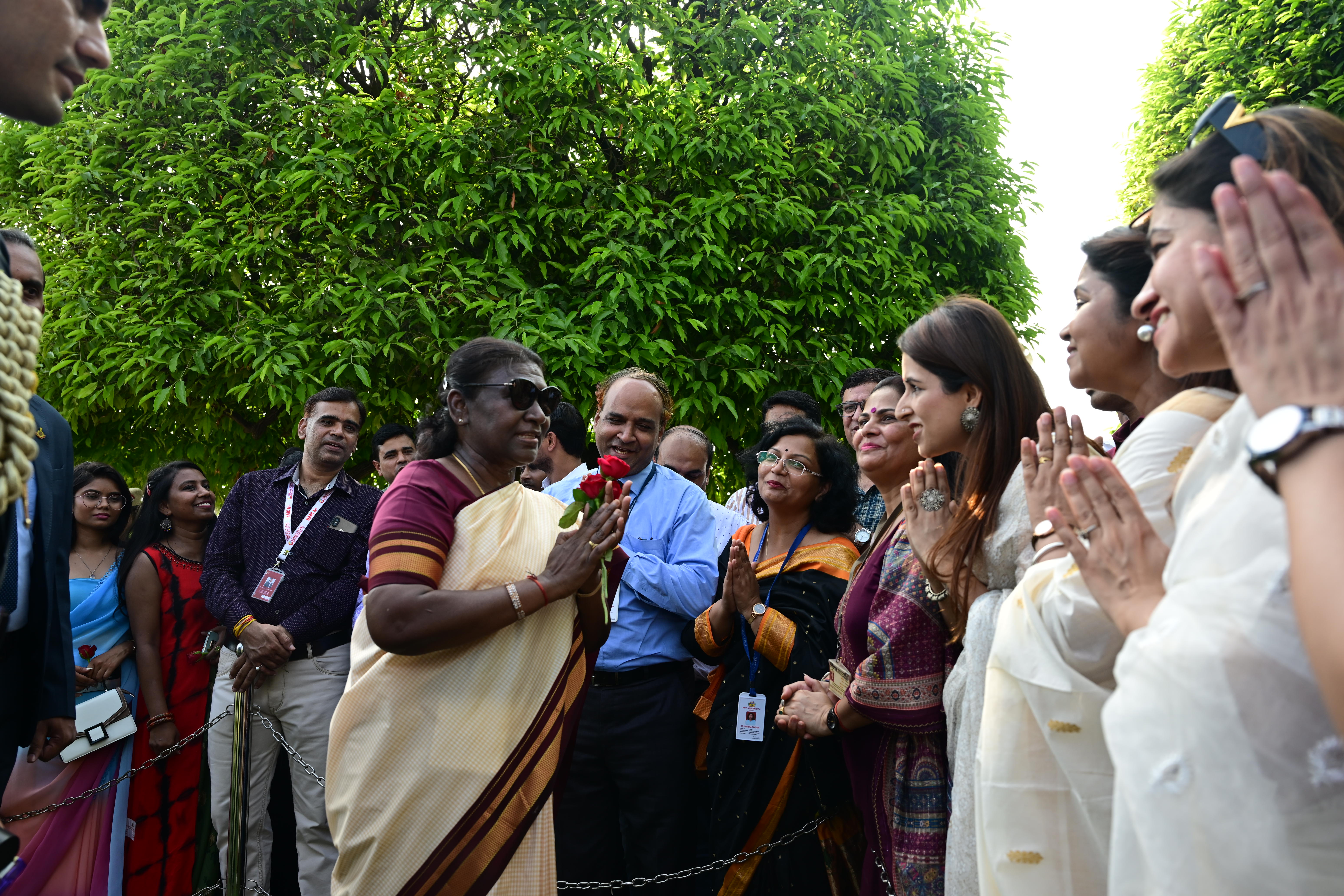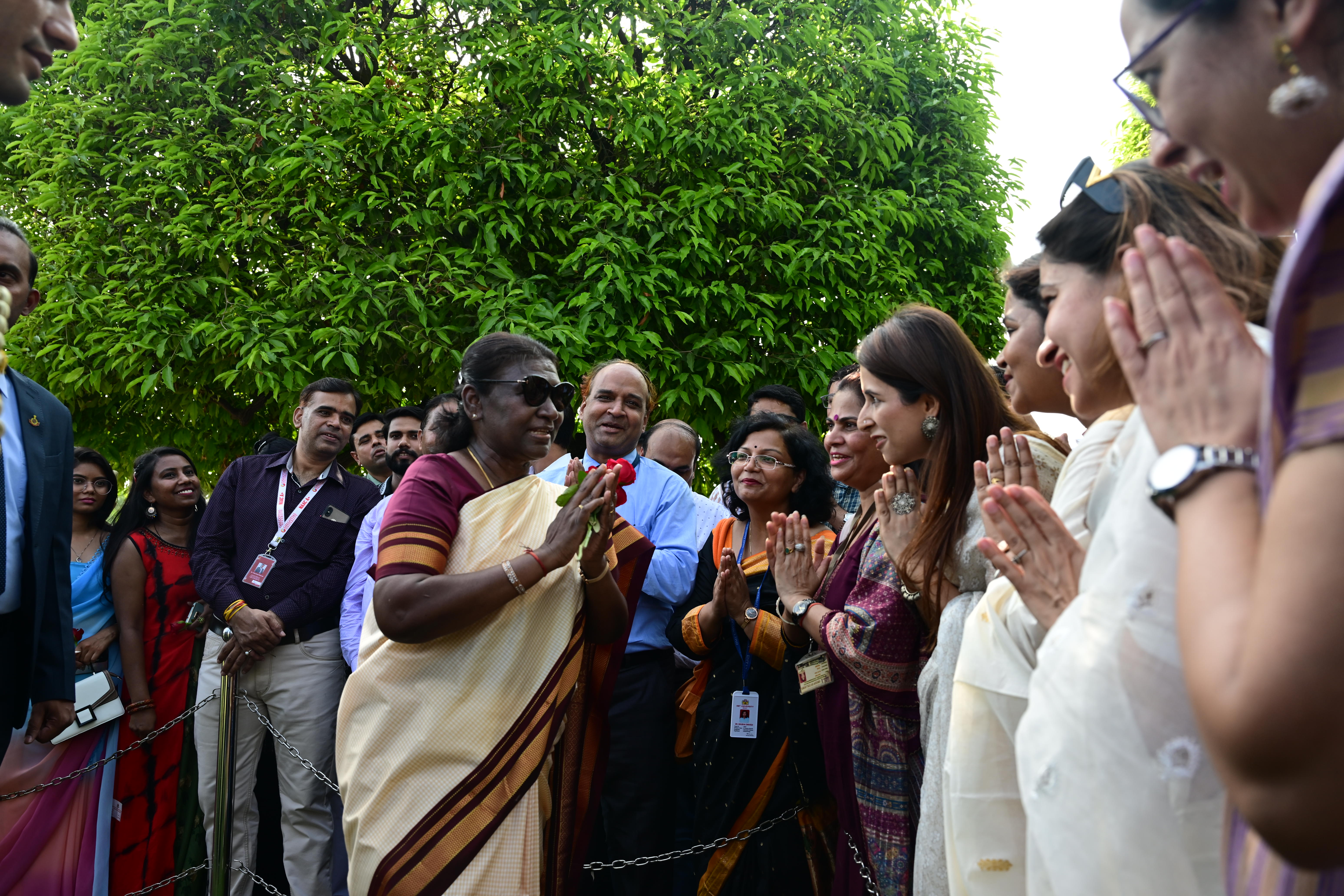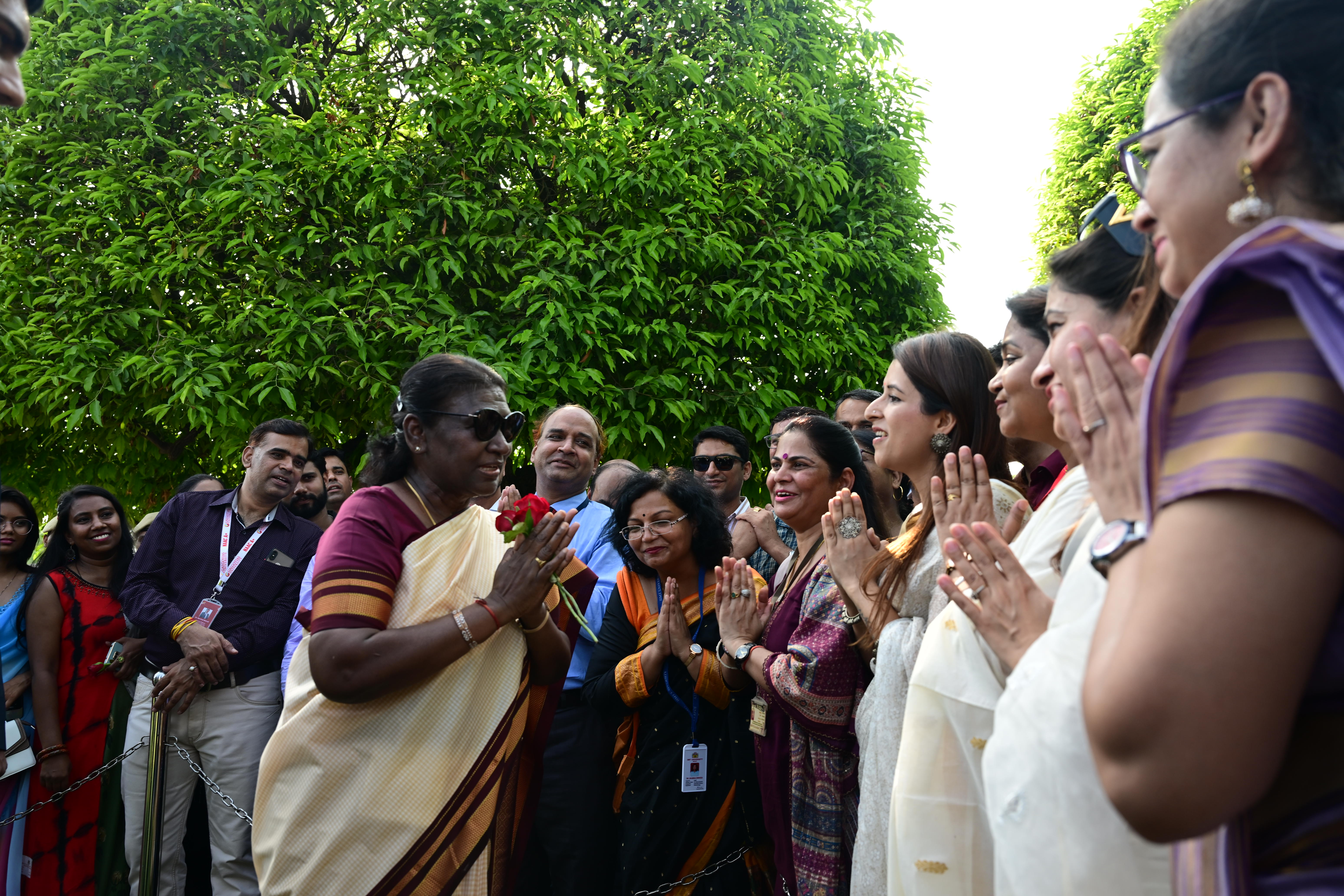 | Caption: | The President of India, Smt. Droupadi Murmu Interaction with the teachers invited to visit the Amrit Udyan as special invitees at Rashtrapati Bhavan on September 5, 2023. |