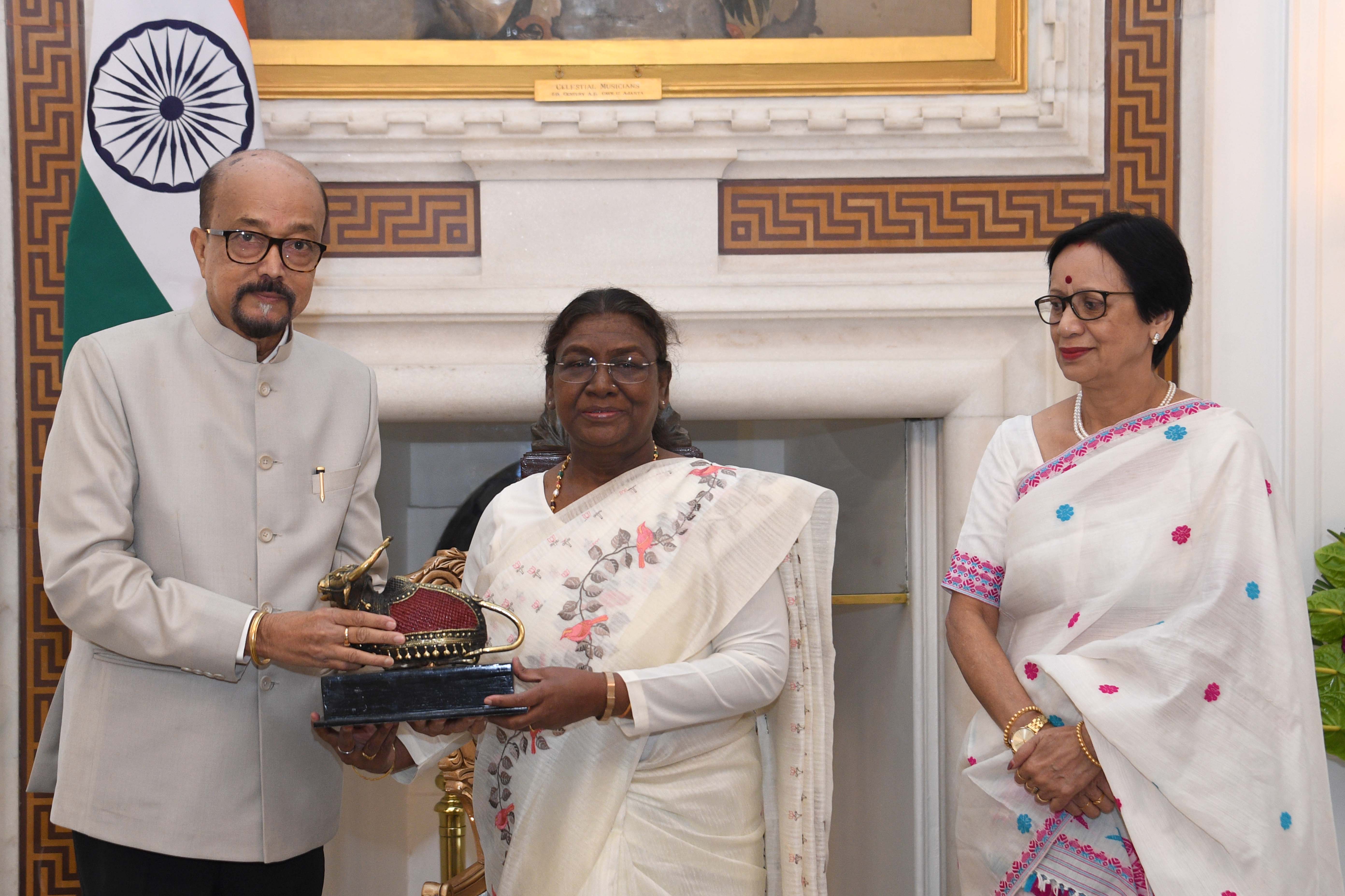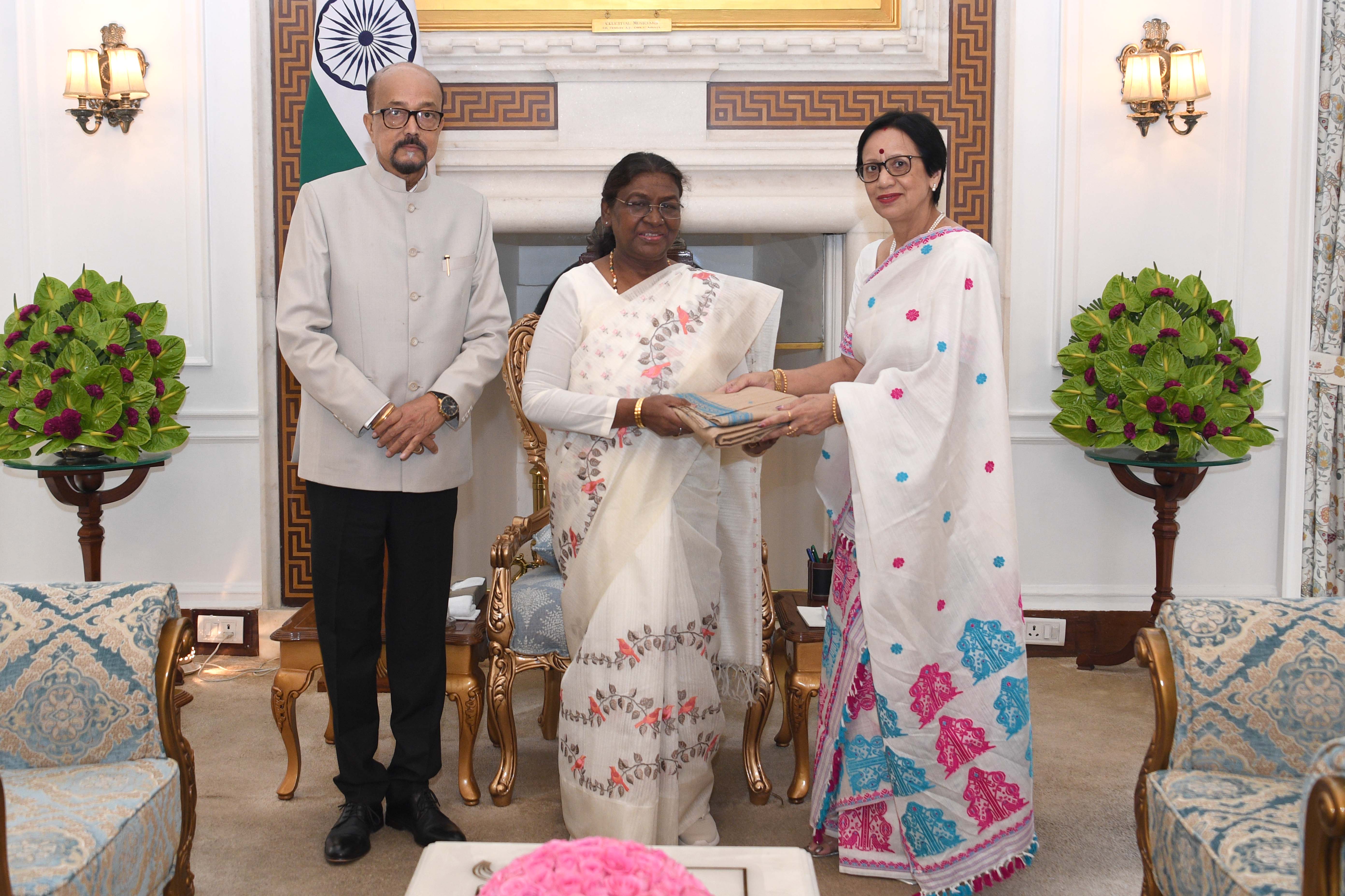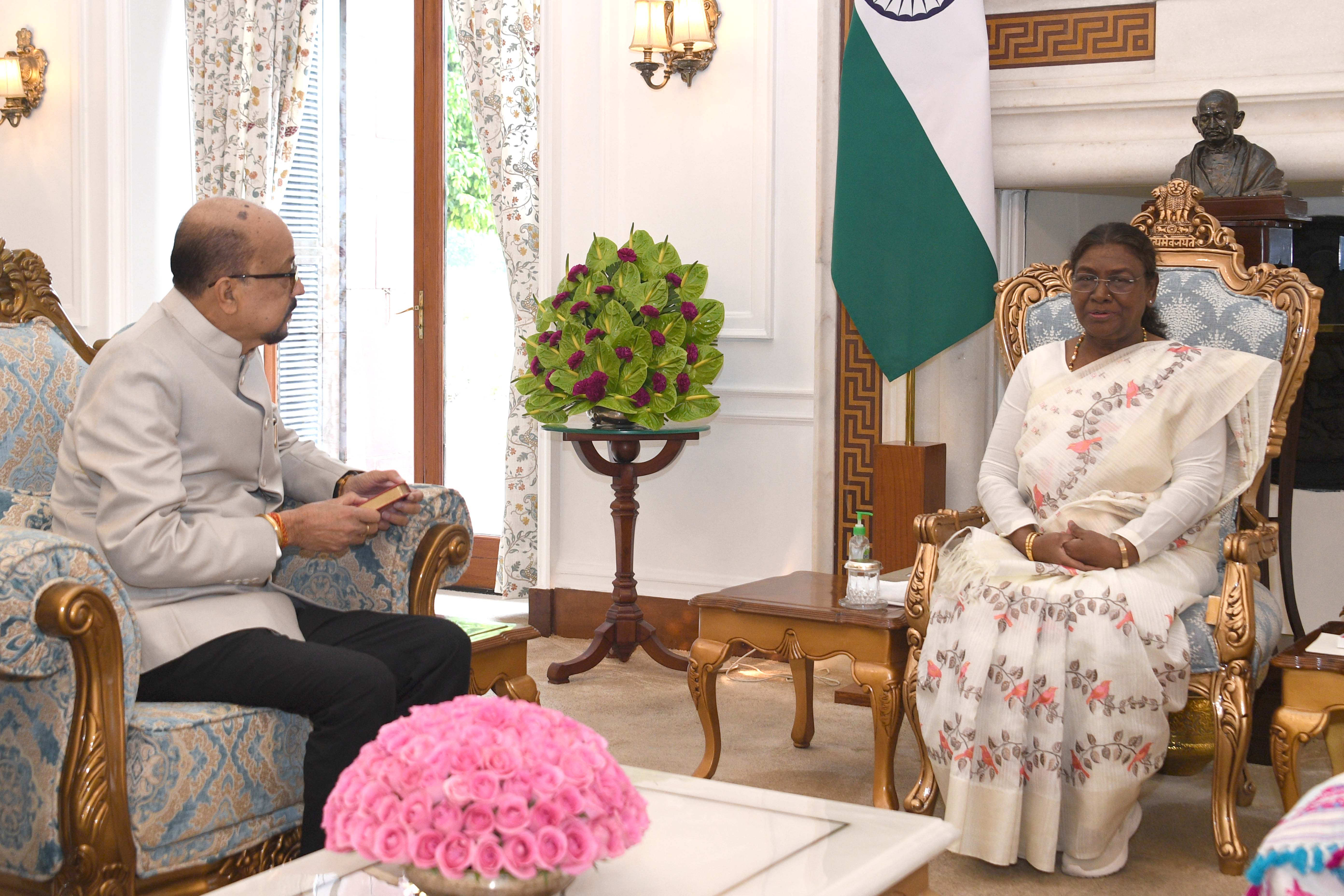 | Caption: | The Governor of Chhattisgarh, Shri Ramen Deka along with his wife, called on the President of India Smt. Droupadi Murmu at Rashtrapati Bhavan on August 2, 2024. |