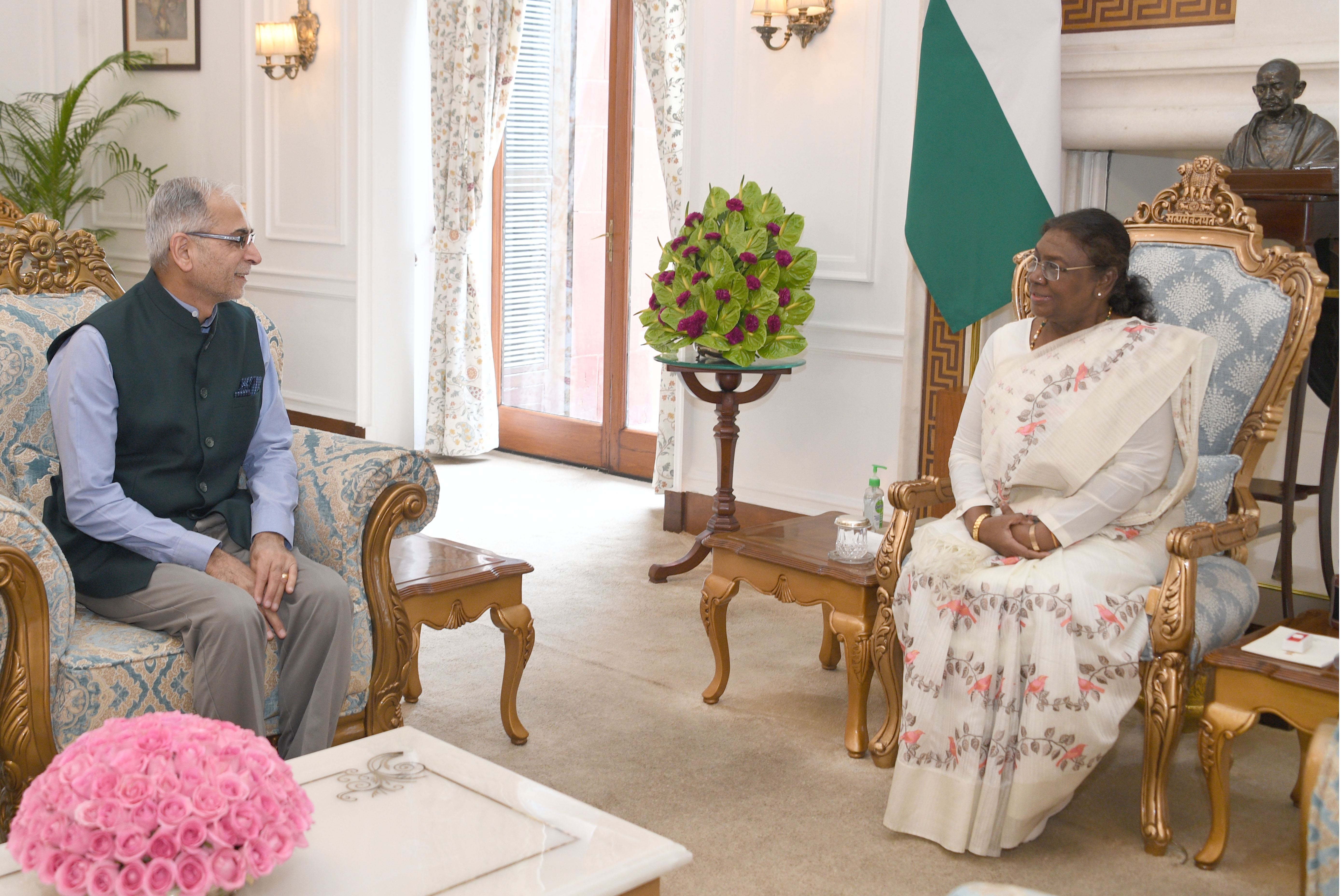 | Caption: | The Ambassador-designate of India to the United States of America, Shri Vinay Mohan Kwatra called on the President of India Smt. Droupadi Murmu at Rashtrapati Bhavan on August 2, 2024. |