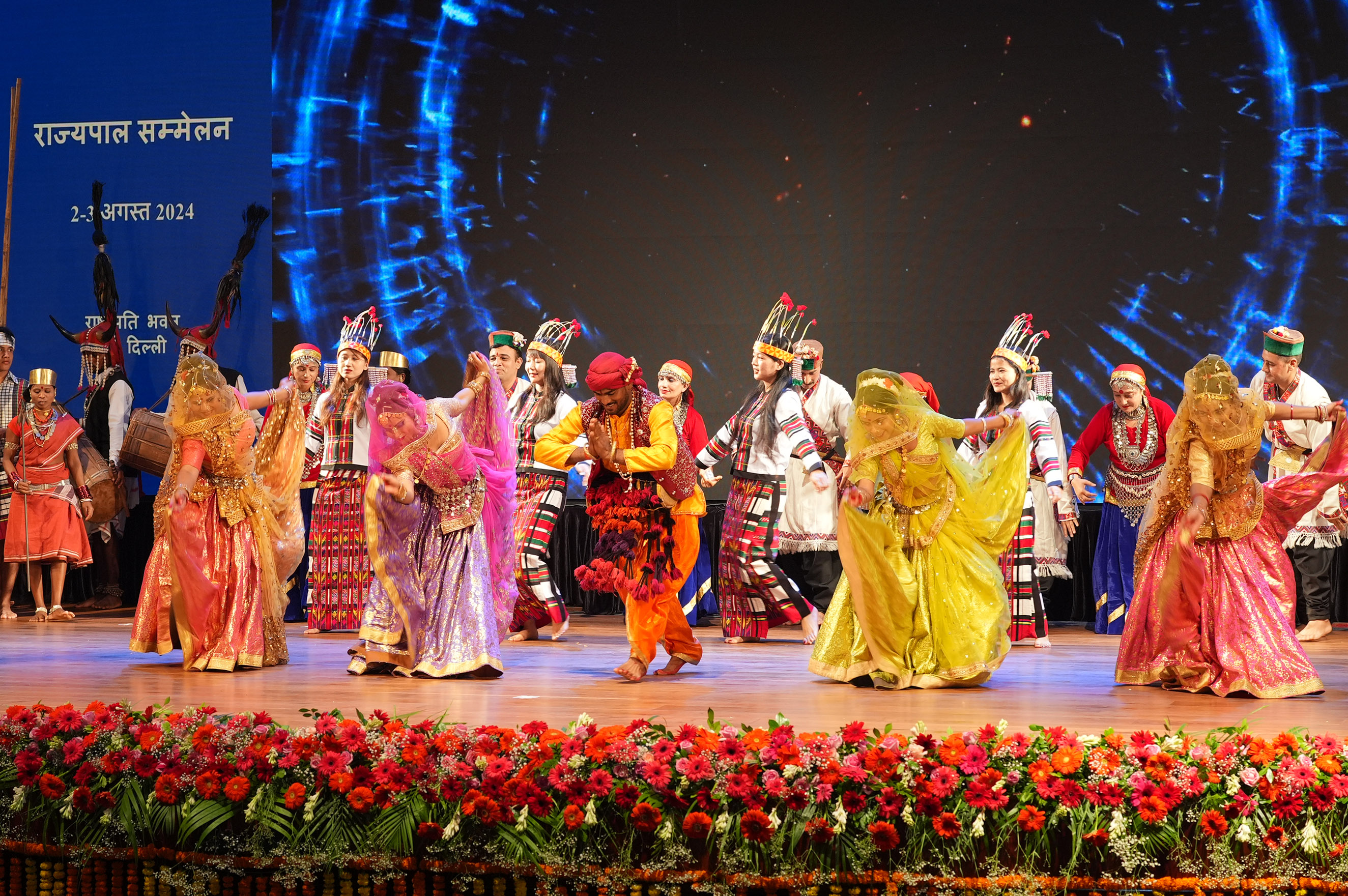 | Caption: | The President of India, Smt Droupadi Murmu attended Cultural Programme (for participants of the Conference of Governors 2024 with their spouses) at Rashtrapati Bhavan on August 2, 2024. |