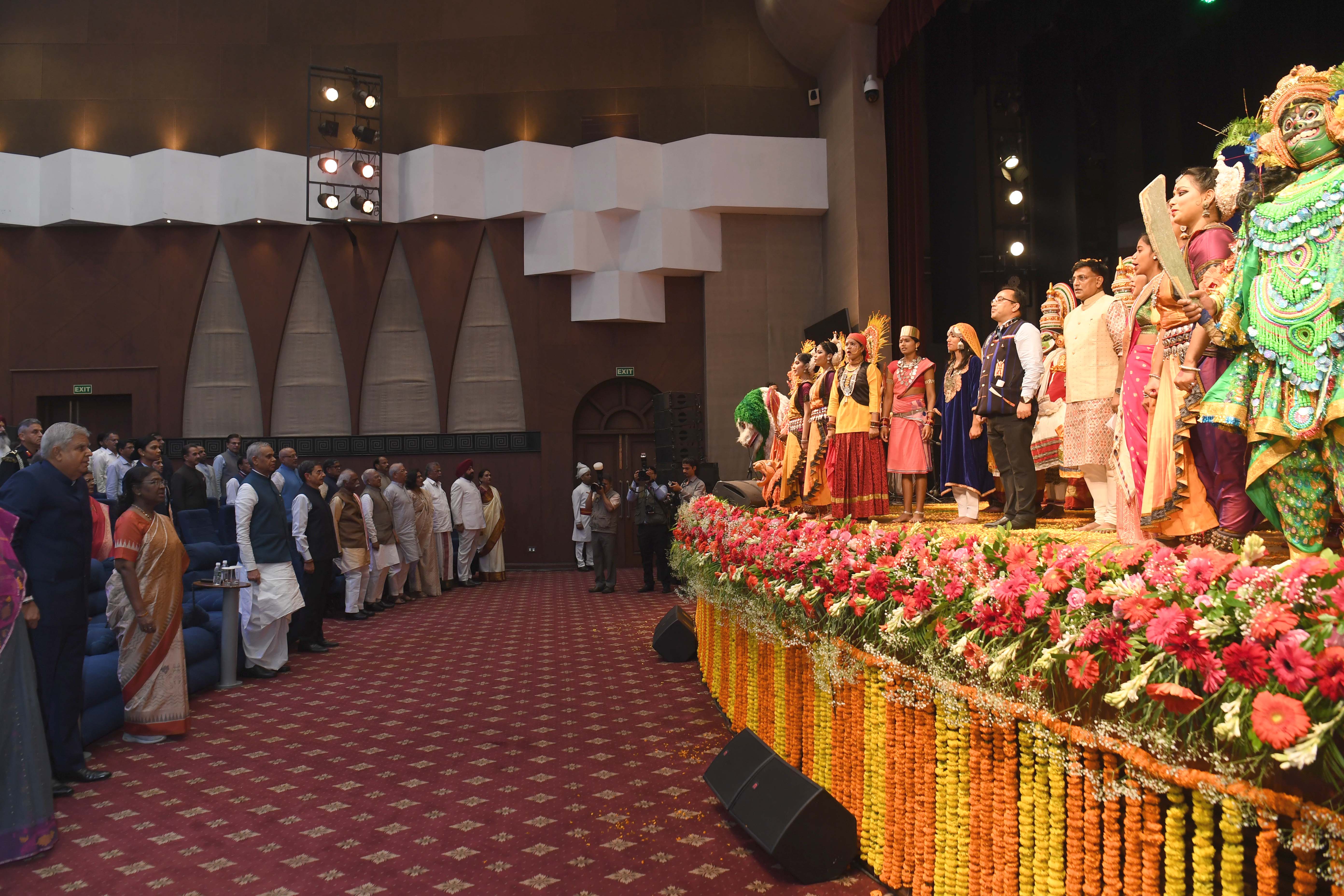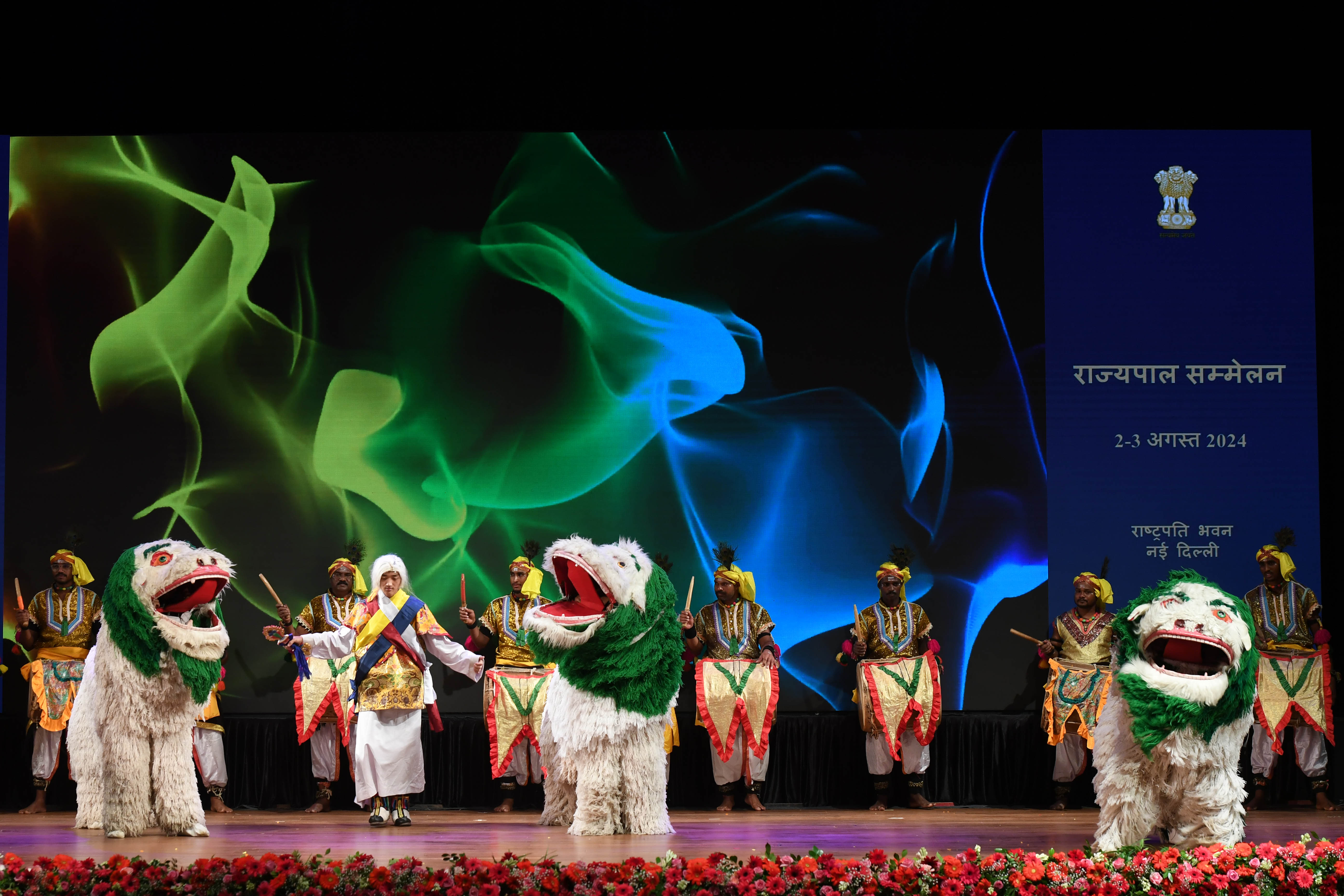 | Caption: | The President of India, Smt Droupadi Murmu attended Cultural Programme (for participants of the Conference of Governors 2024 with their spouses) at Rashtrapati Bhavan on August 2, 2024. |