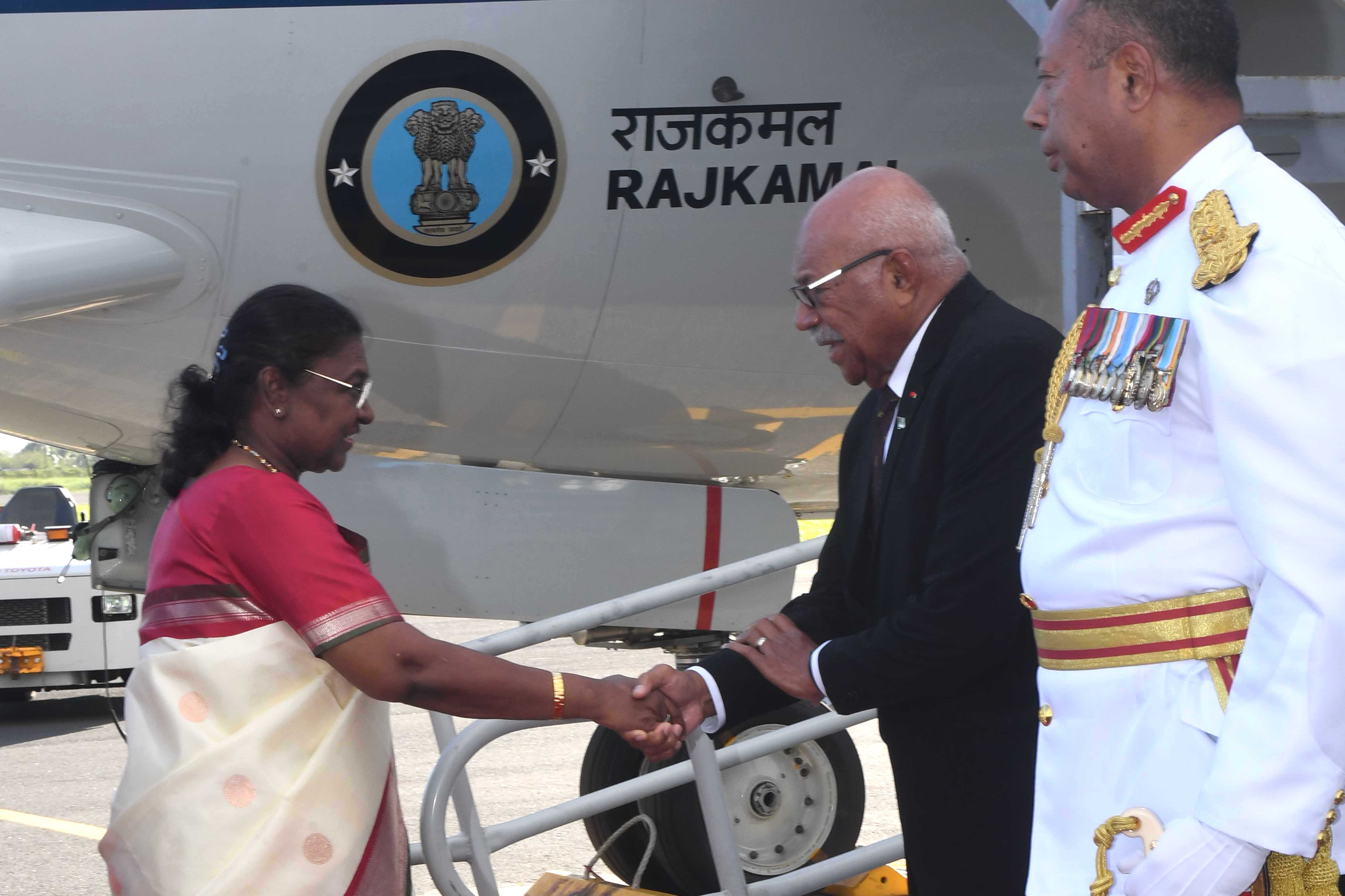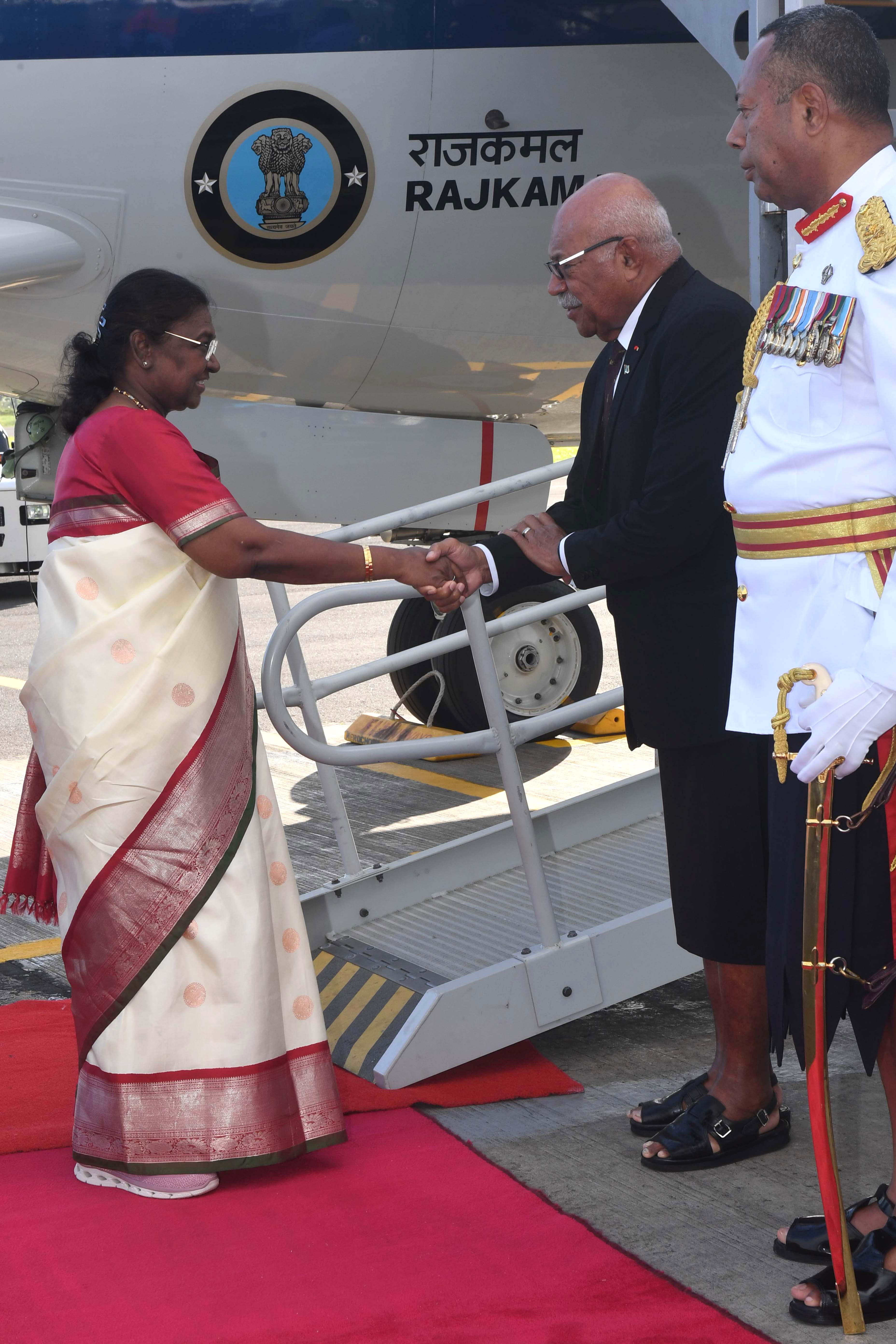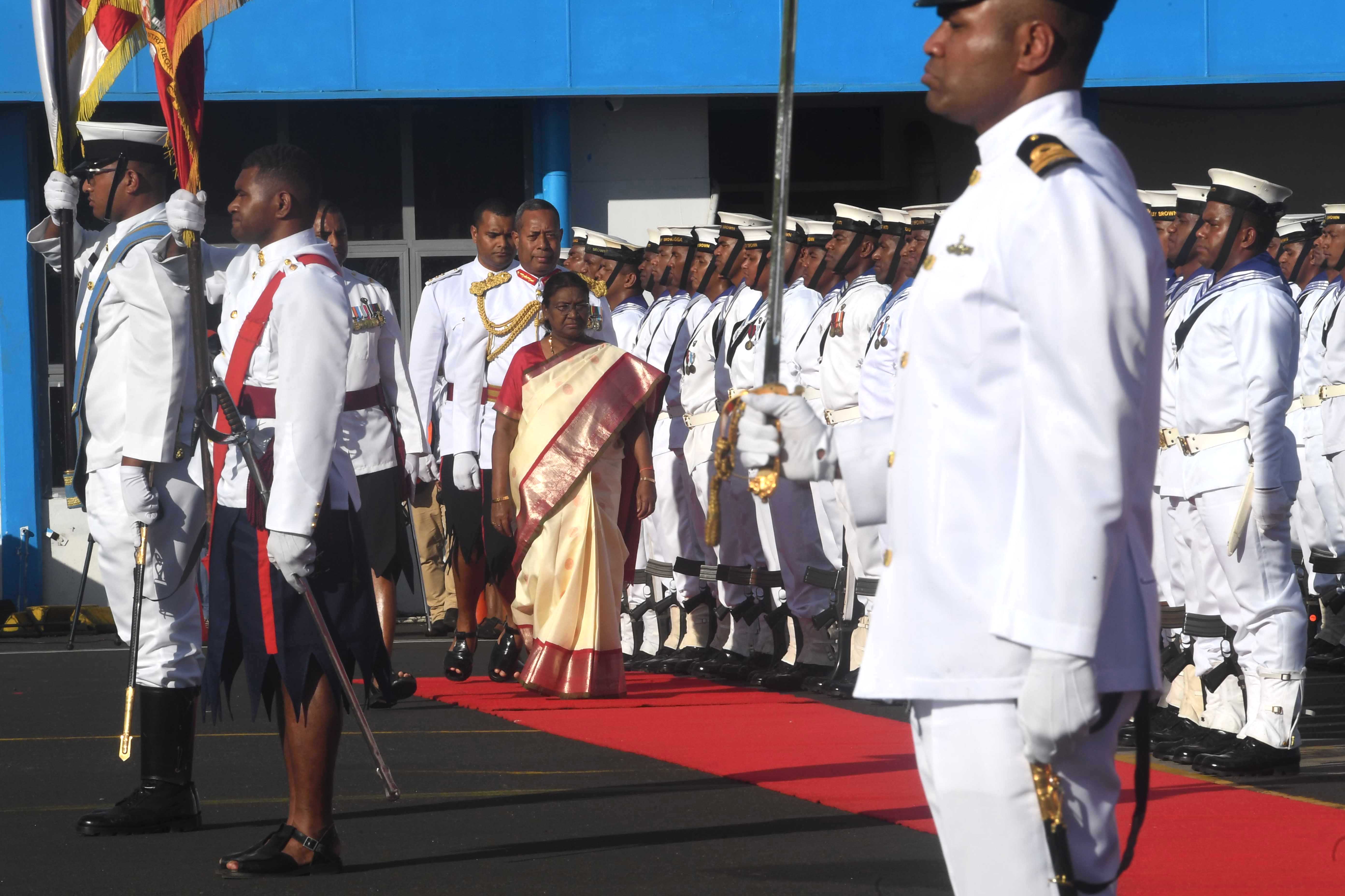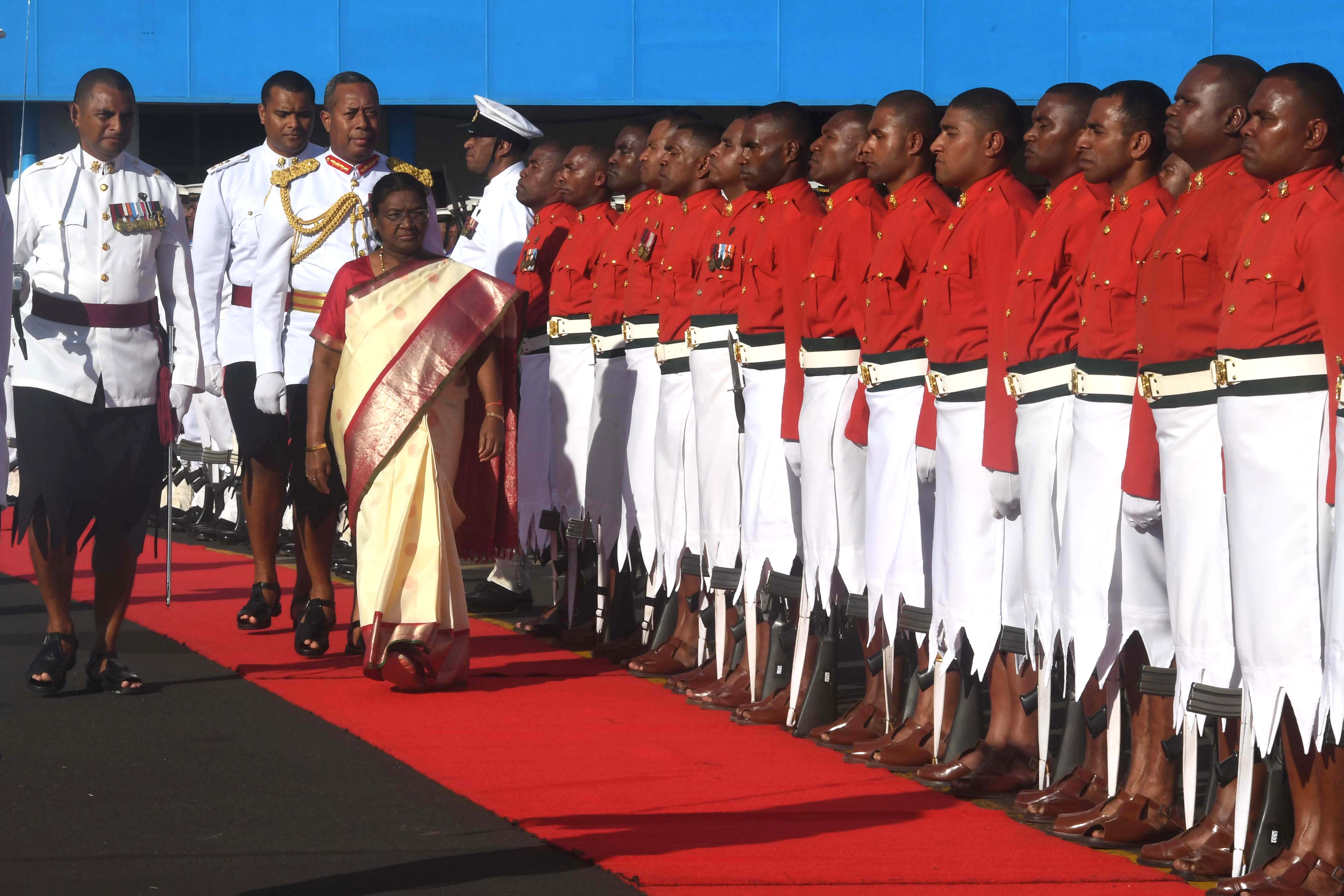 | Caption: | The President of India, Smt. Droupadi Murmu was accorded a guard of honour her arrival at Suva, Fiji on August 6, 2024. |