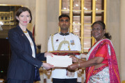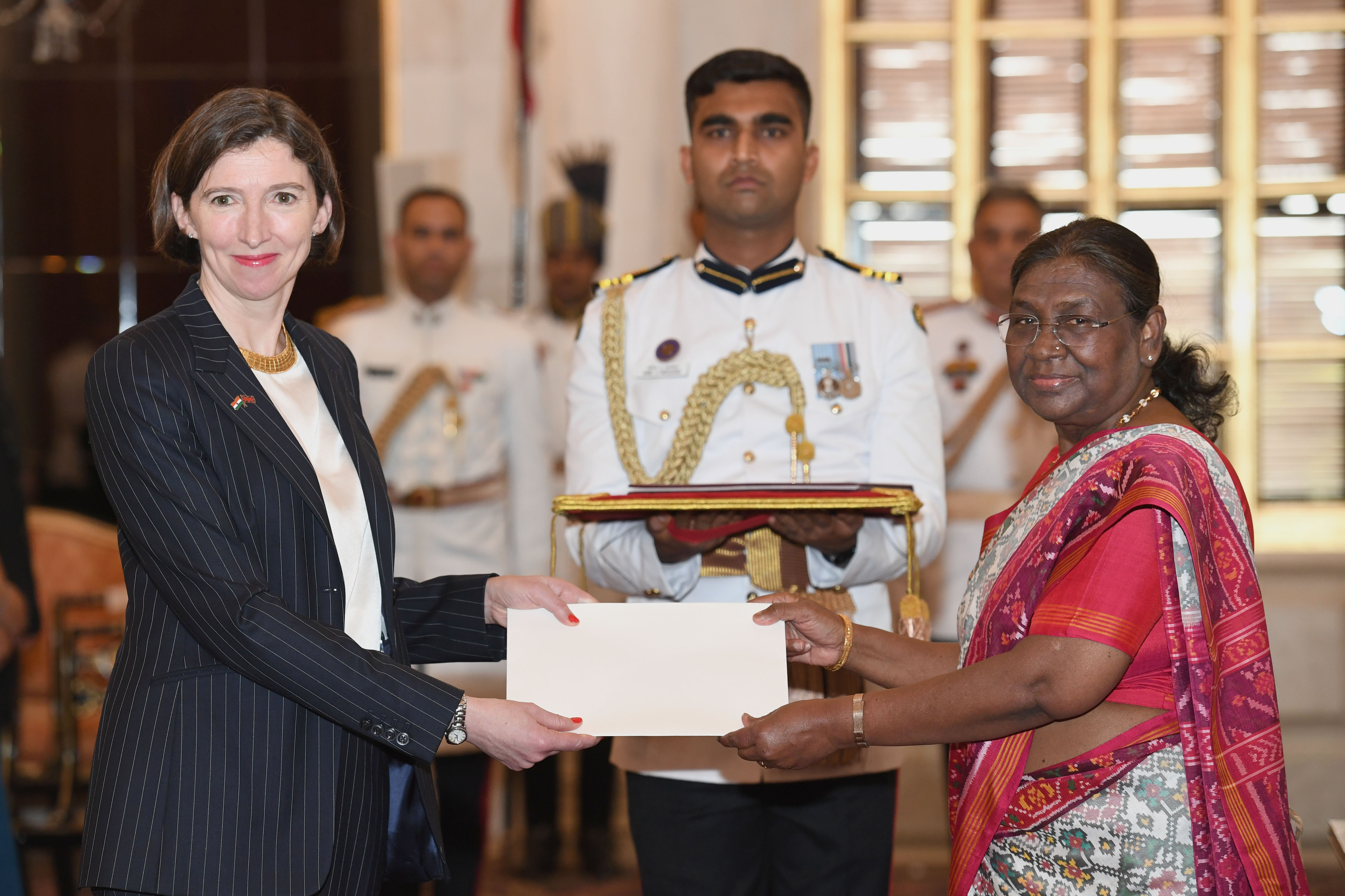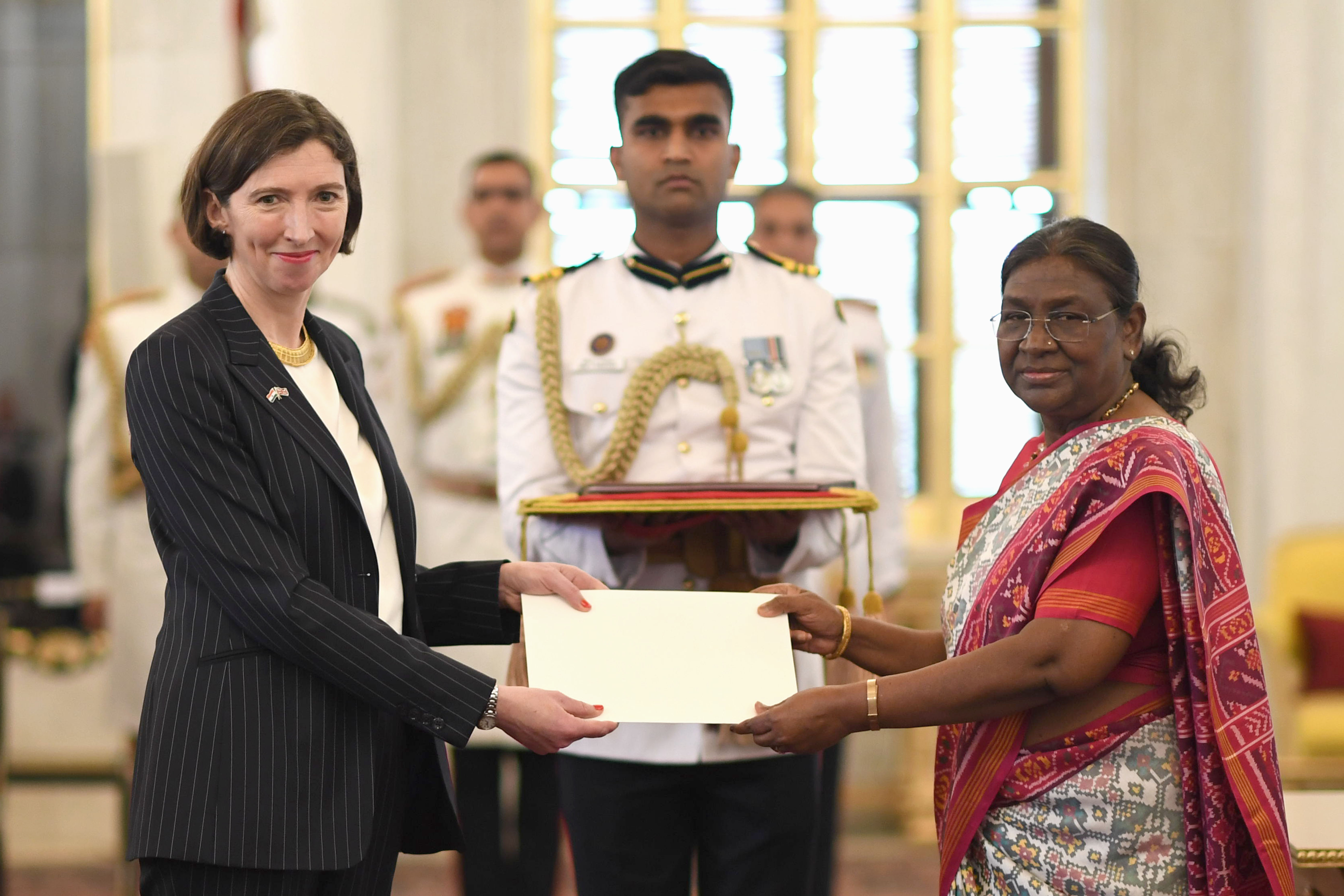 | Caption: | The High-Commissioner-designate of the United Kingdom, H.E. Mrs Lindy Elizabeth Cameron presenting her credentials to the President of India, Smt Droupadi Murmu at a ceremony held at Rashtrapati Bhavan on May 31, 2024. |