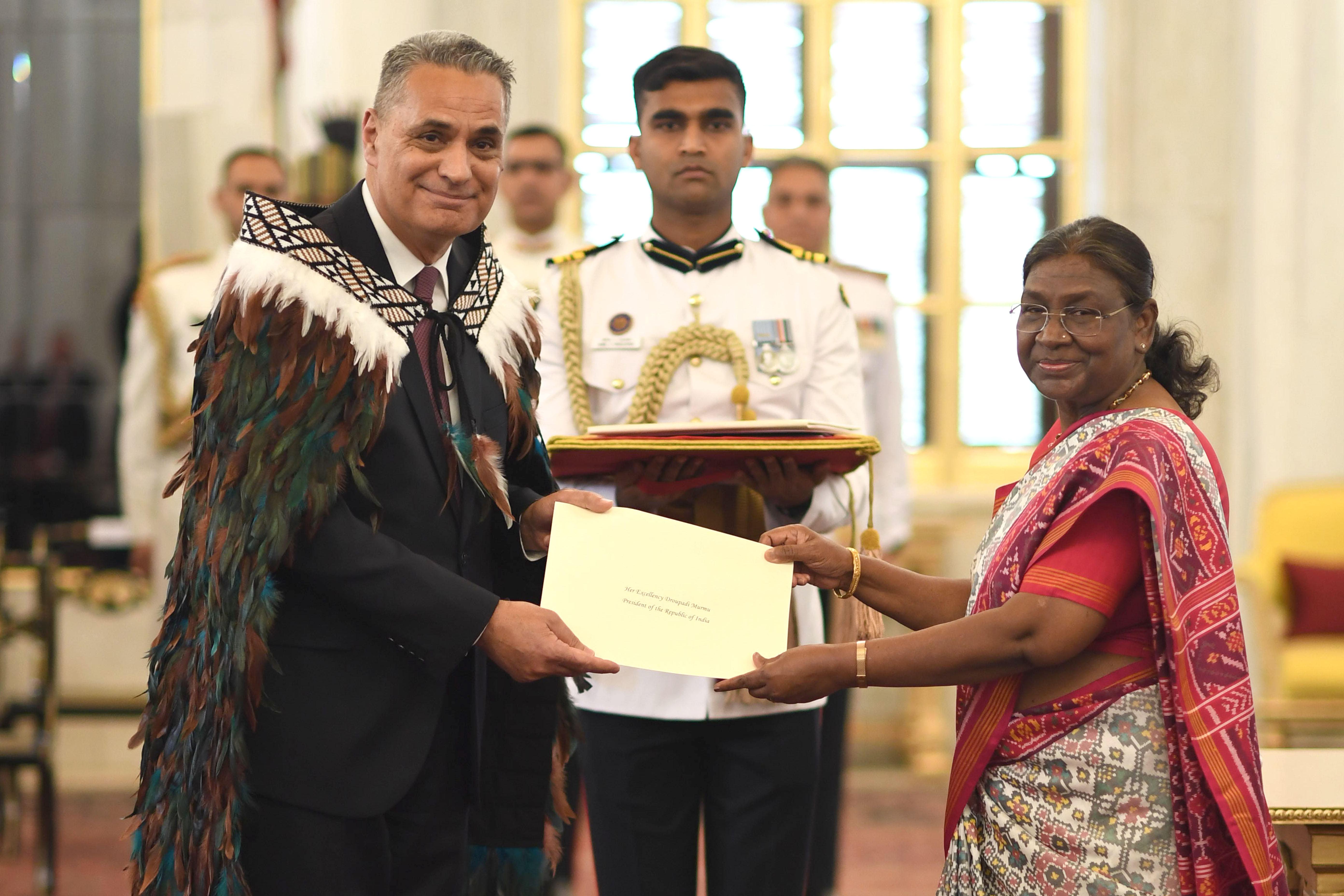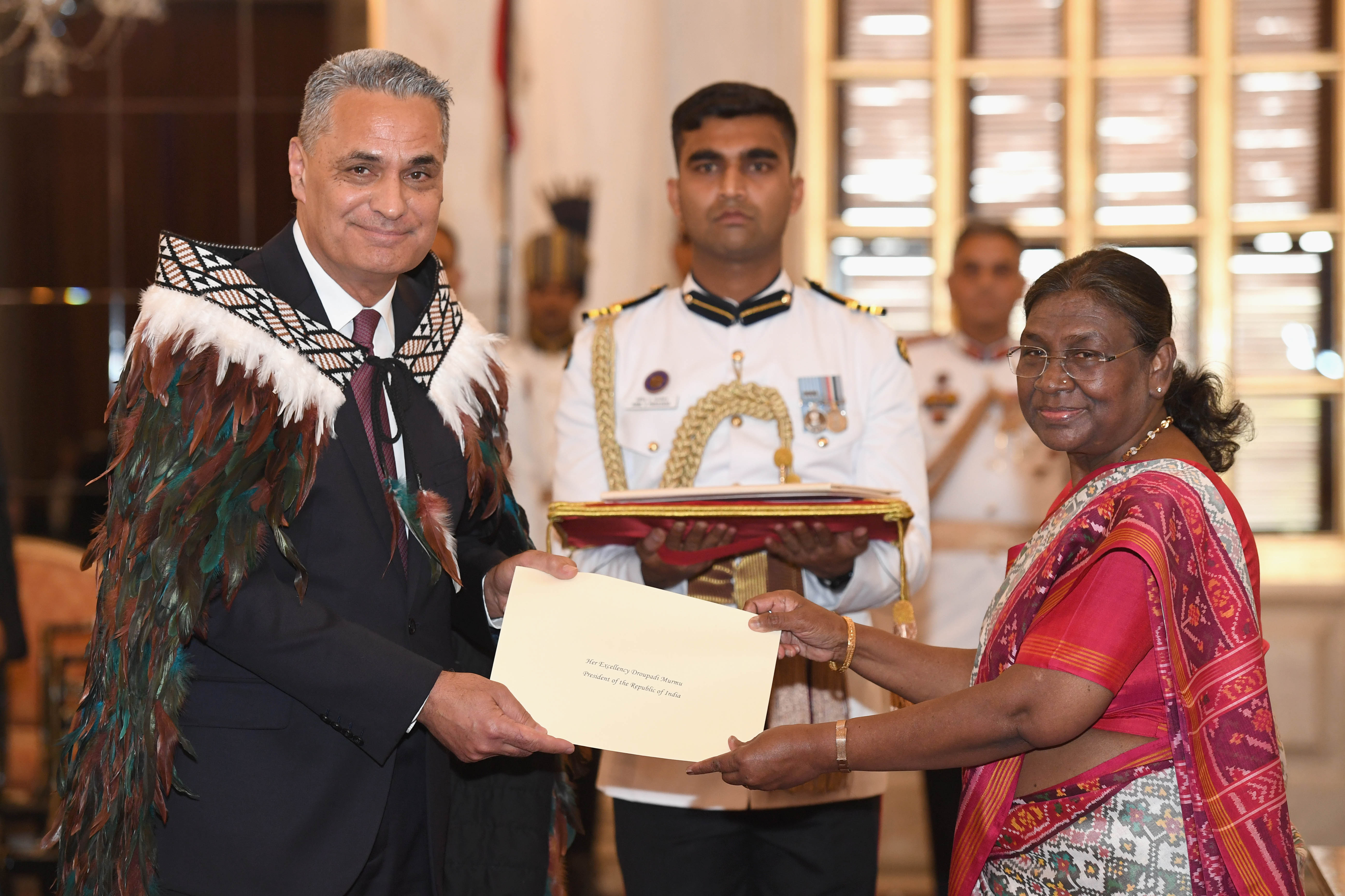 | Caption: | The High Commissioner-designate of New Zealand, H.E. Mr Patrick John Rata presenting his credentials to the President of India, Smt Droupadi Murmu at a ceremony held at Rashtrapati Bhavan on May 31, 2024. |