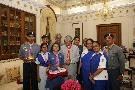 | Caption: | The President of India, Dr A P J Abdul Kalam with Shri L M Jain, National Commissioner and others from the Bharat Scouts & Guides to pining a Flag on the occasion of their Flag Day at Rashtrapati Bhavan in New Delhi on Nov 07, 2005 |