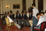 | Caption: | The President of India, Dr A P J Abdul Kalam meeting with the Students and Staff from St Michael's Higher Secondary School, Bhopal at the Yellow Drawing Room of Rashtrapati Bhavan in New Delhi on Sep 27, 2002 |