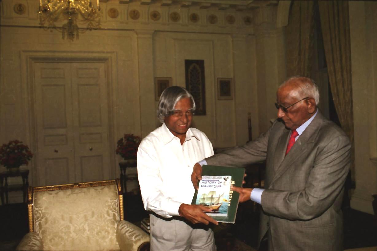 | Caption: | The President of India, Dr A P J Abdul Kalam with the Former Vice President of Mauritius, Mr A V Chettiar at Rashtrapati Bhavan in New Delhi on Sep 27, 2002 |
