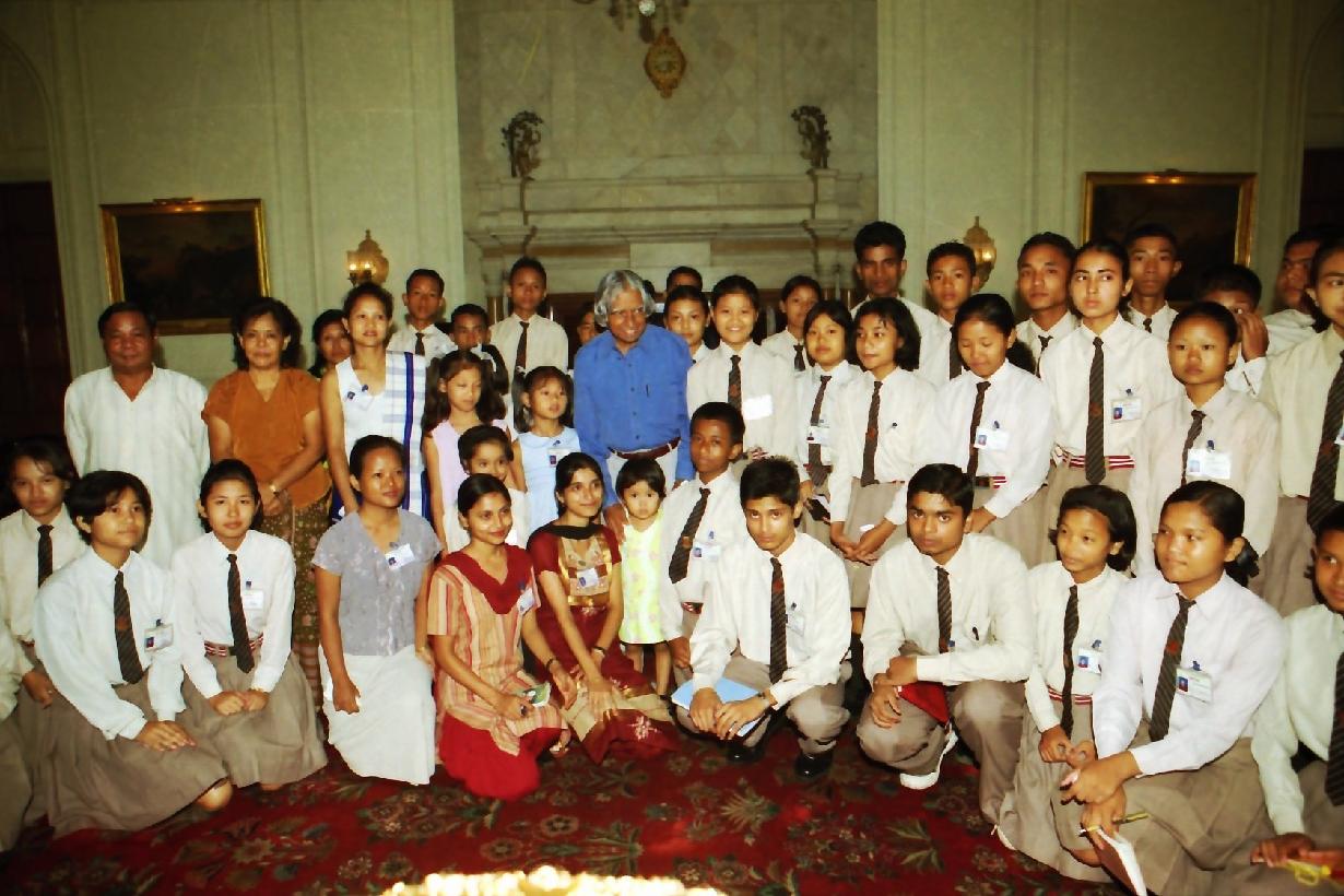 | Caption: | The Students and Teachers from Aeroville Secondary School Tura Meghalaya and Shri P A Sangma calling on the President of India, Dr A P J Abdul Kalam at the Yellow Drawing Room of Rashtrapati Bhavan in New Delhi on July 14, 2003 |