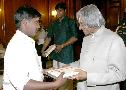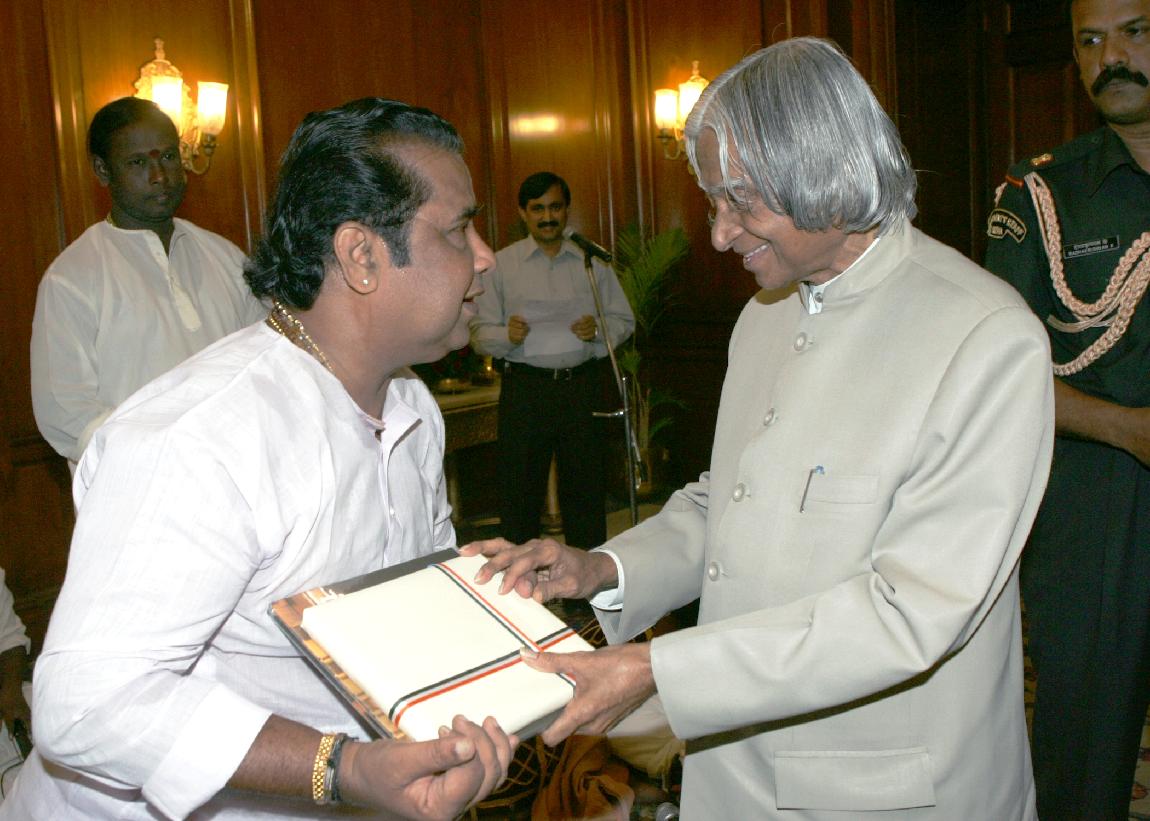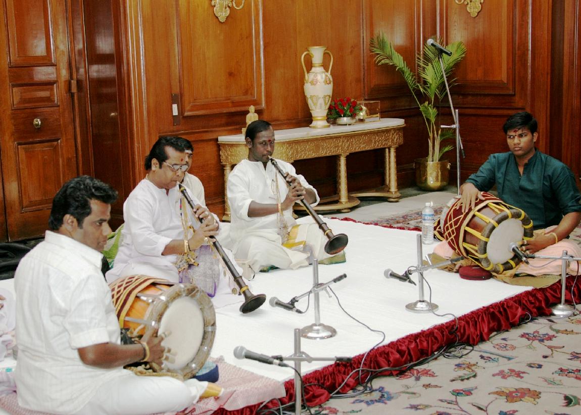 | Caption: | The President of India, Dr A P J Abdul Kalam at the Nadaswaram Recital by Kalaimamani Inchikkudi EP Ganesan and Party at the Committee Room of Rashtrapati Bhavan in New Delhi on April 02, 2007 |