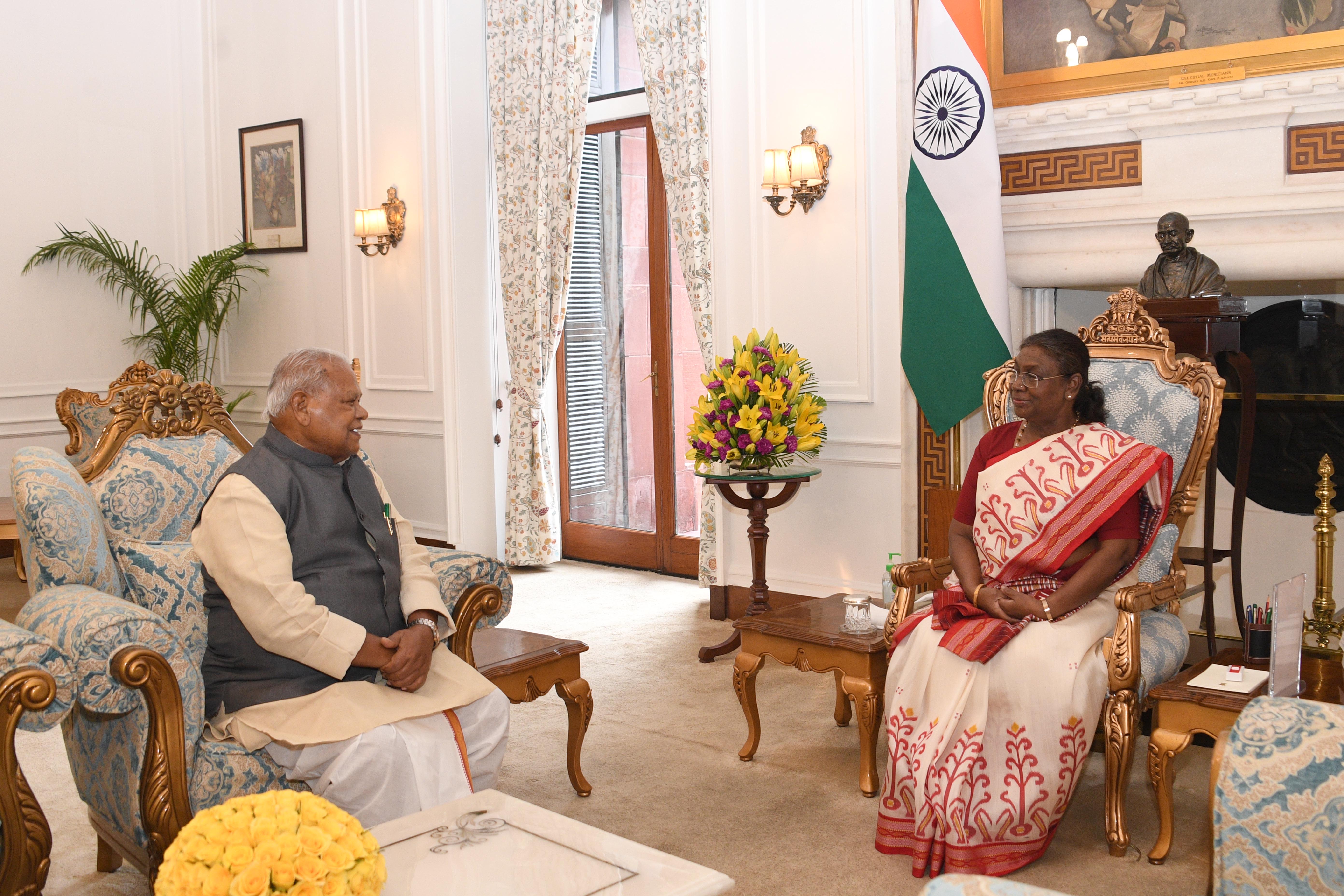 | Caption: | The Union Minister for Micro, Small and Medium Enterprises, Shri Jitan Ram Manjhi called on the President of India Smt. Droupadi Murmu at Rashtrapati Bhavan on June 21, 2024. |