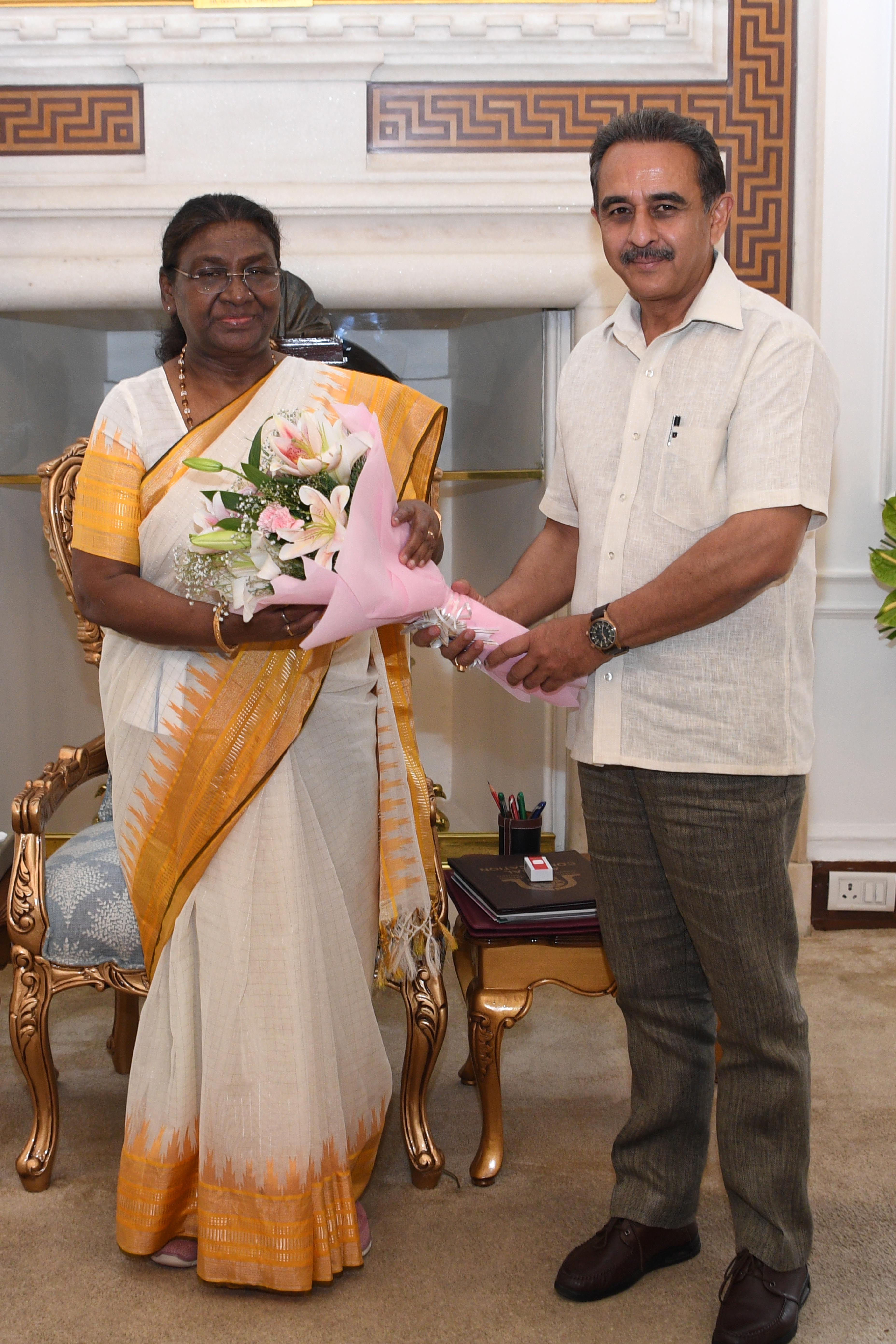 | Caption: | The Union Minister for Environment, Forest and Climate Change, Shri Bhupender Yadav along with Minister of State for Environment, Forest and Climate Change, Shri Kirtivardhan Singh called on the President of India Smt. Droupadi Murmu at Rashtrapati Bhavan on Jun 25, 2024. |