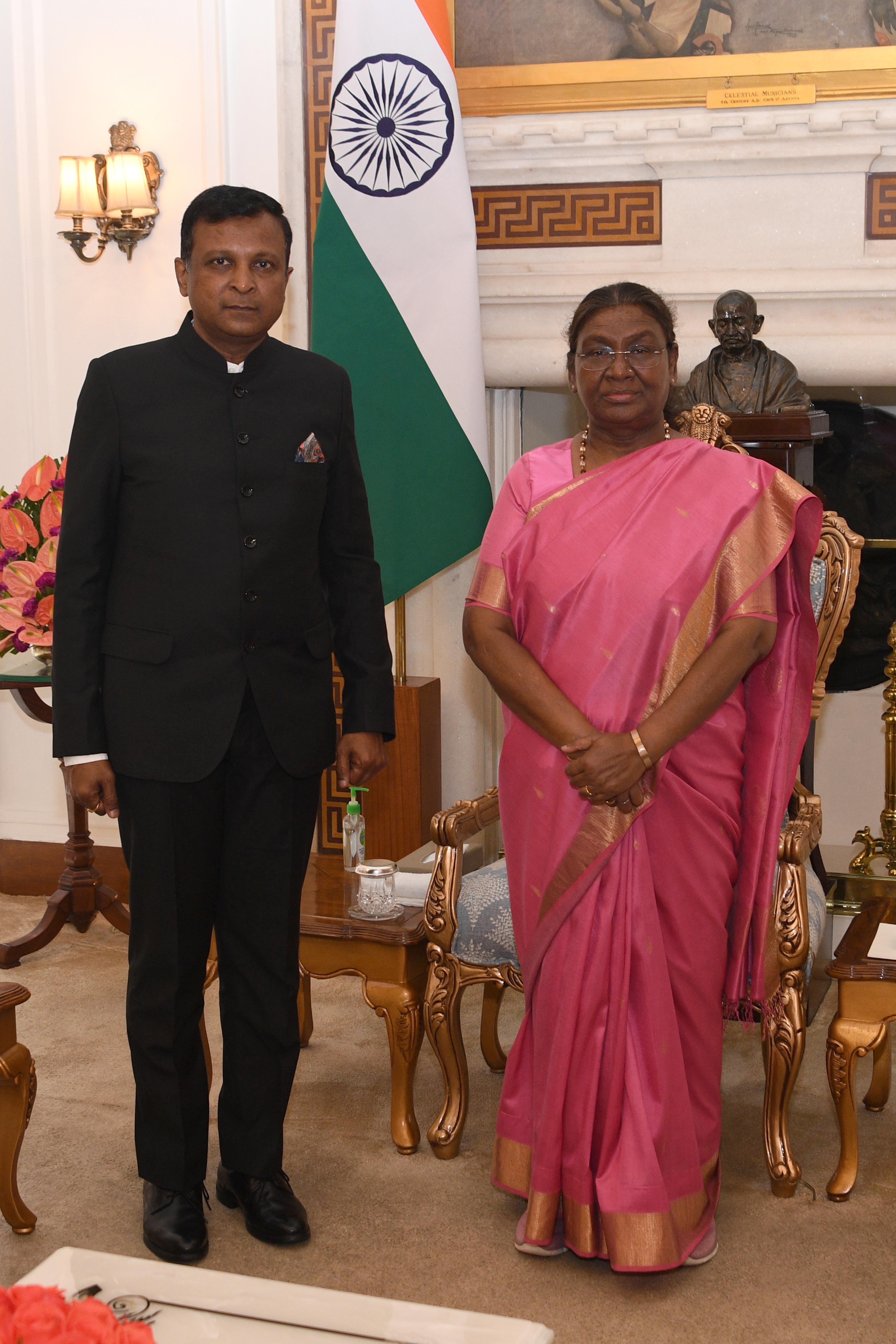| Caption: | The Ambassador-designate of India to finland, Shri Hemant H Kotalwar meeting with the President of India, Smt Droupadi Murmu at Rashtrapati Bhavan on July 1, 2024. |