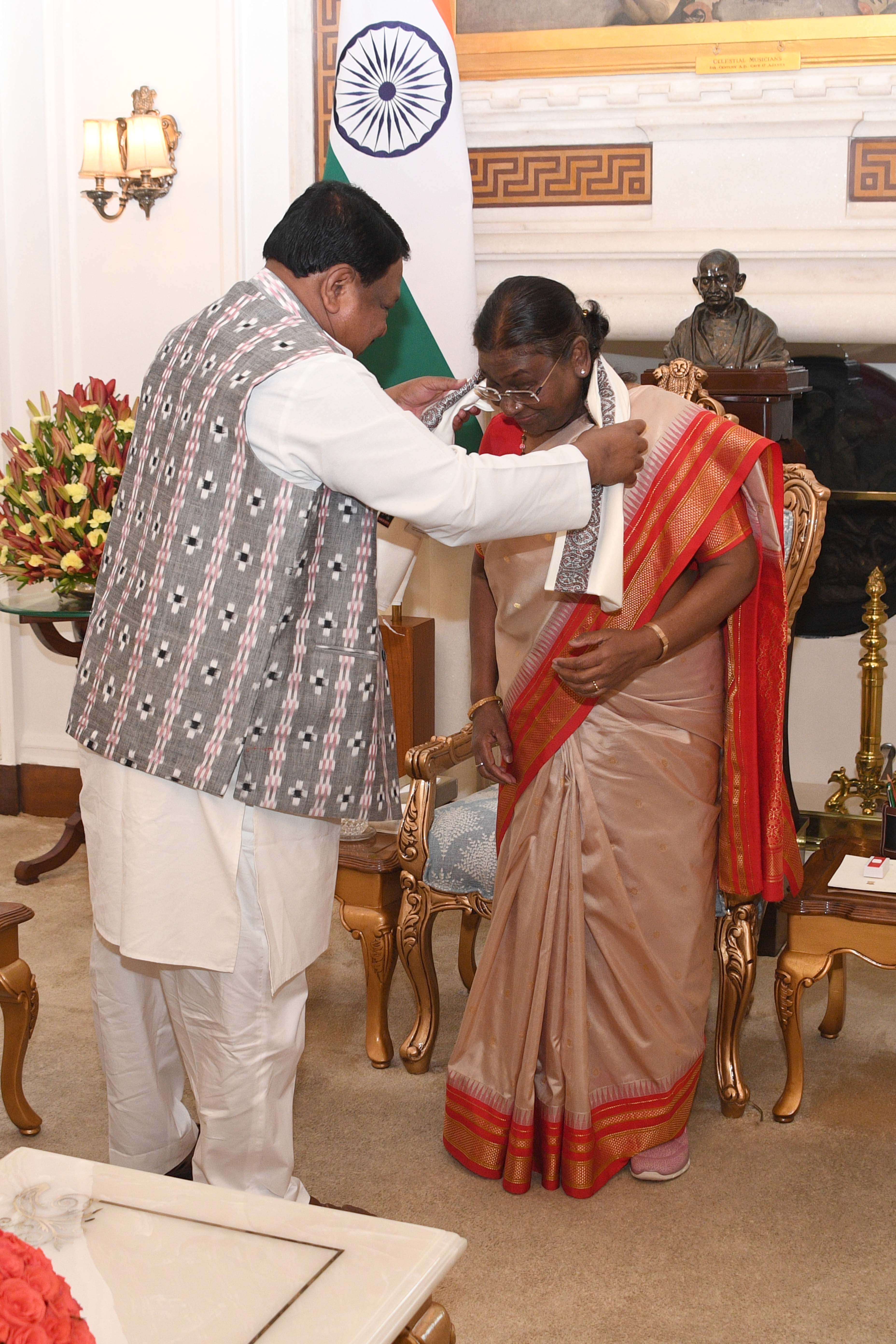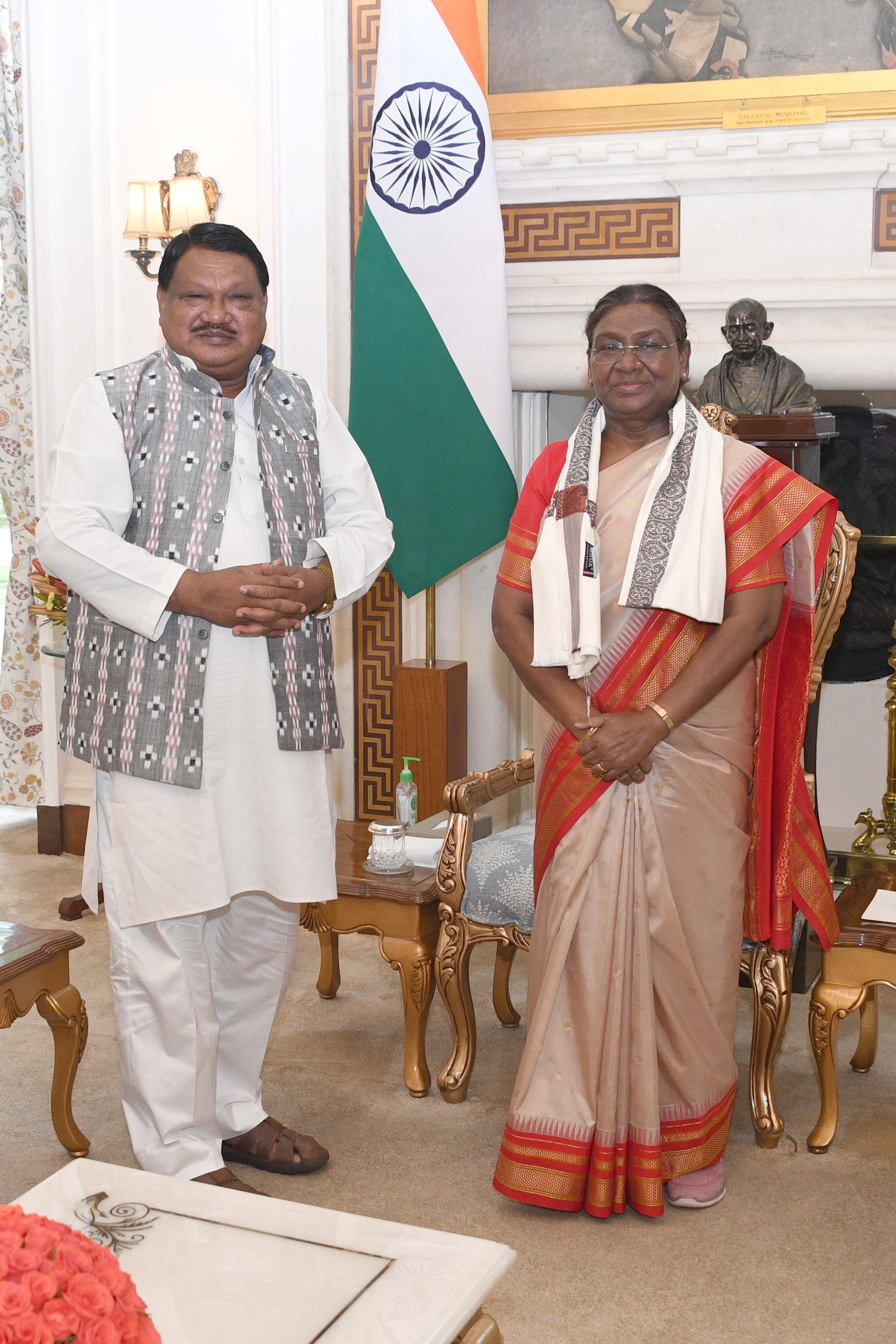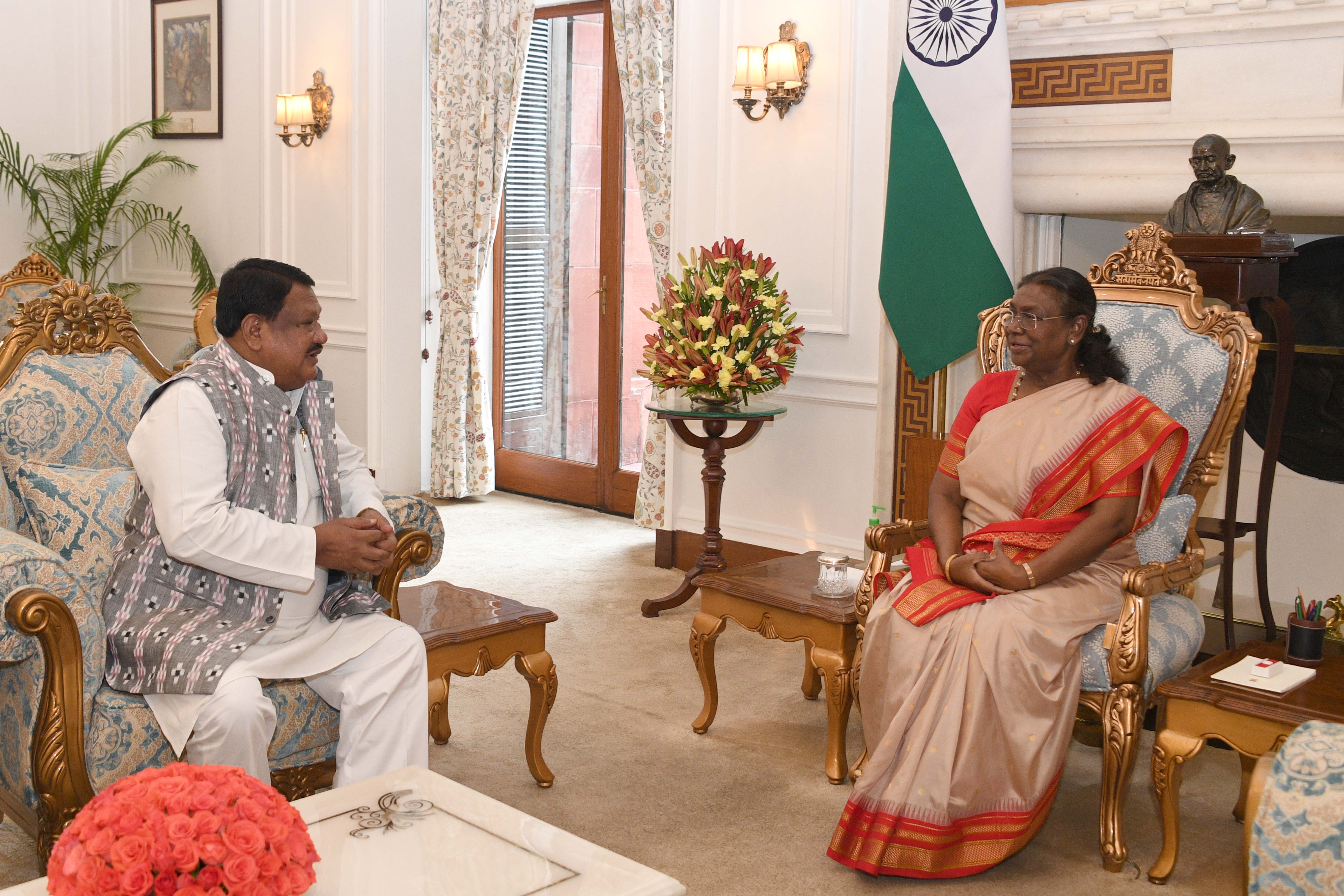 | Caption: | The Union Minister for Tribal Affairs, Shri Jual Oram called on the President of India Smt. Droupadi Murmu at Rashtrapati Bhavan on July 4, 2024. |