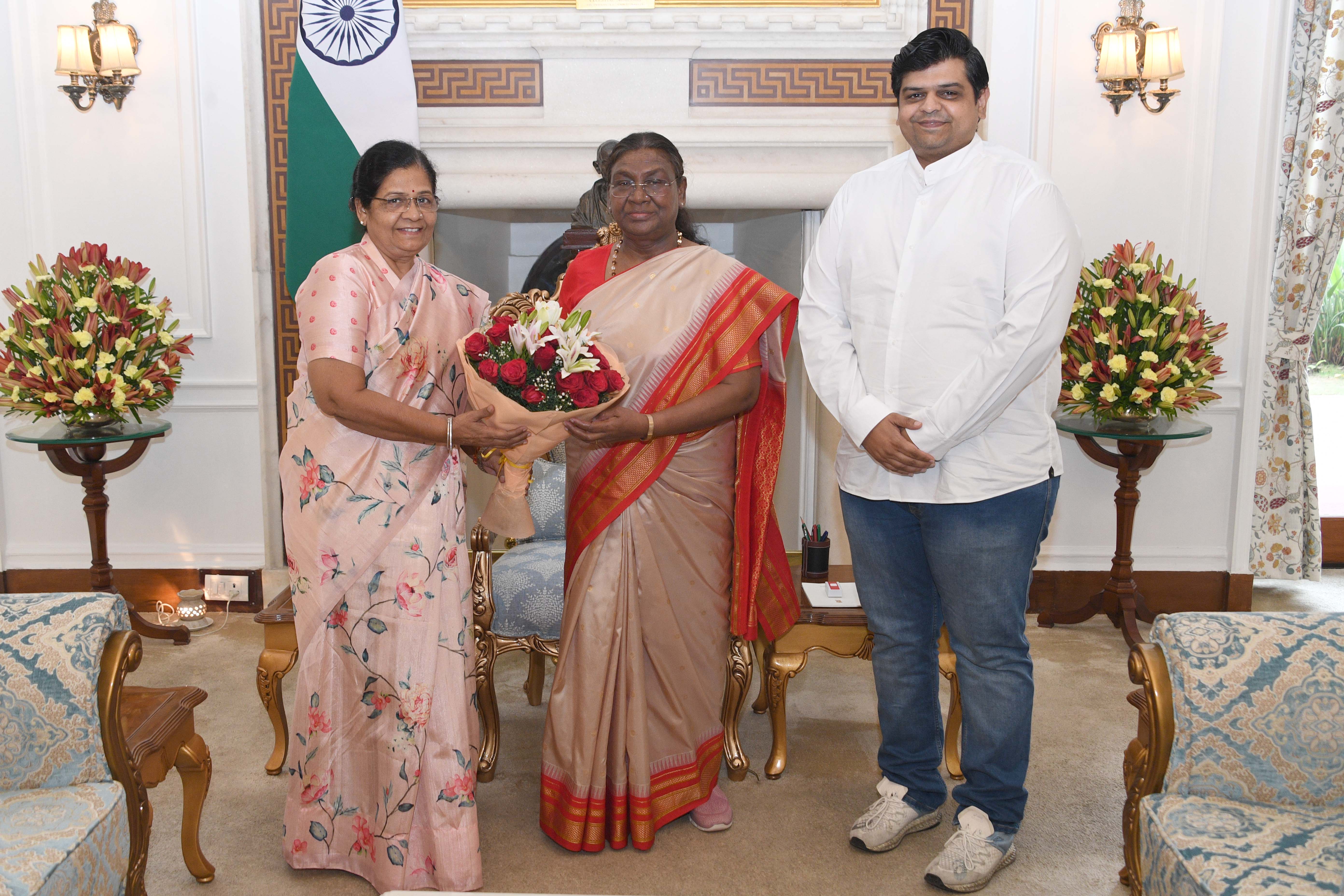 | Caption: | Smt. Manju Sharma, MP (LS), Jaipur, Rajasthan along with others meeting with the President of India Smt. Droupadi Murmu at Rashtrapati Bhavan on July 4, 2024. |