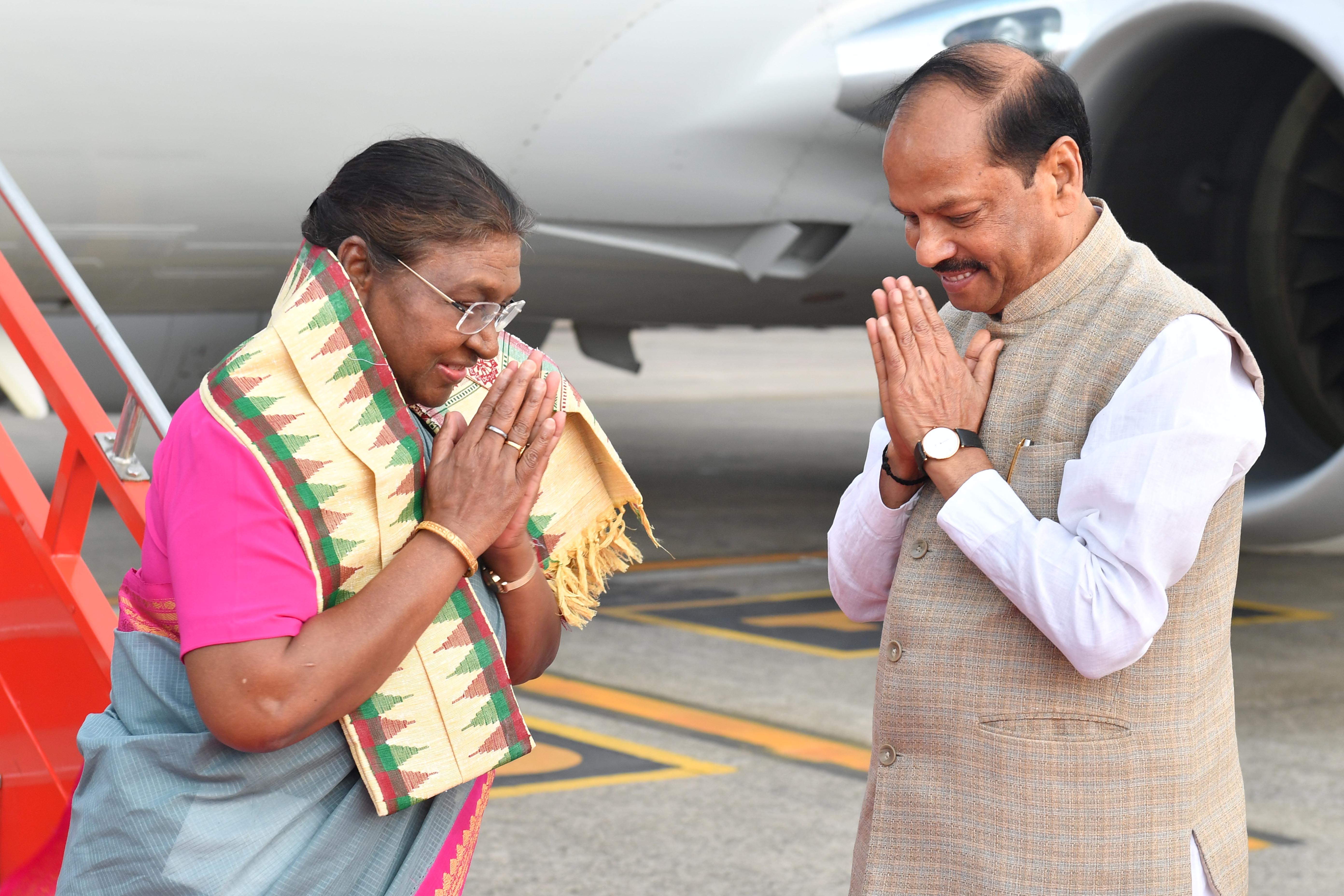 | Caption: | The Governor of Odisha Shri Raghubar Das and Chief Minister Shri Mohan Charan Majhi received the President of India Smt. Droupadi Murmu on her arrival at Bhubaneswar in Odisha on July 6, 2024. |