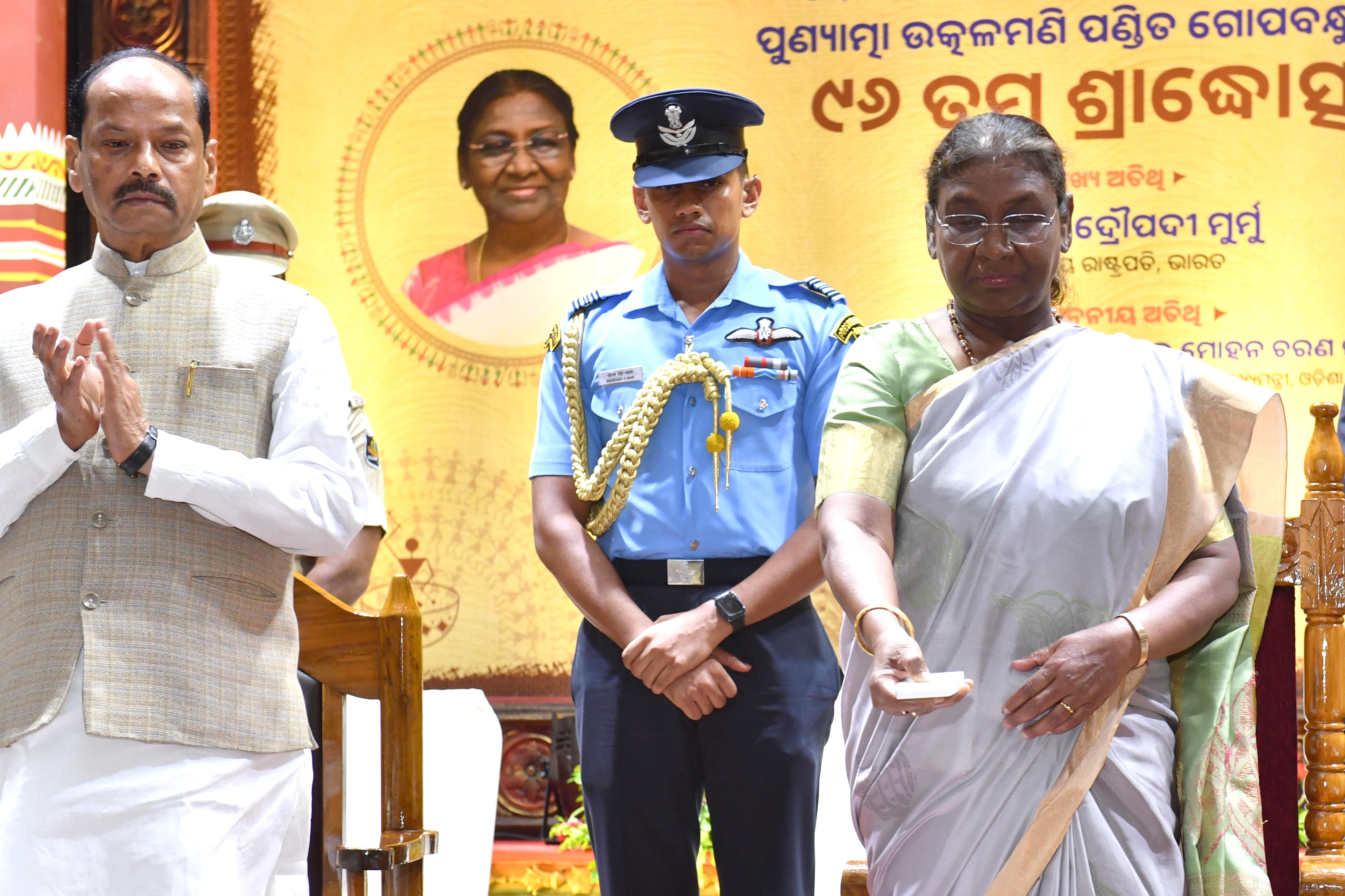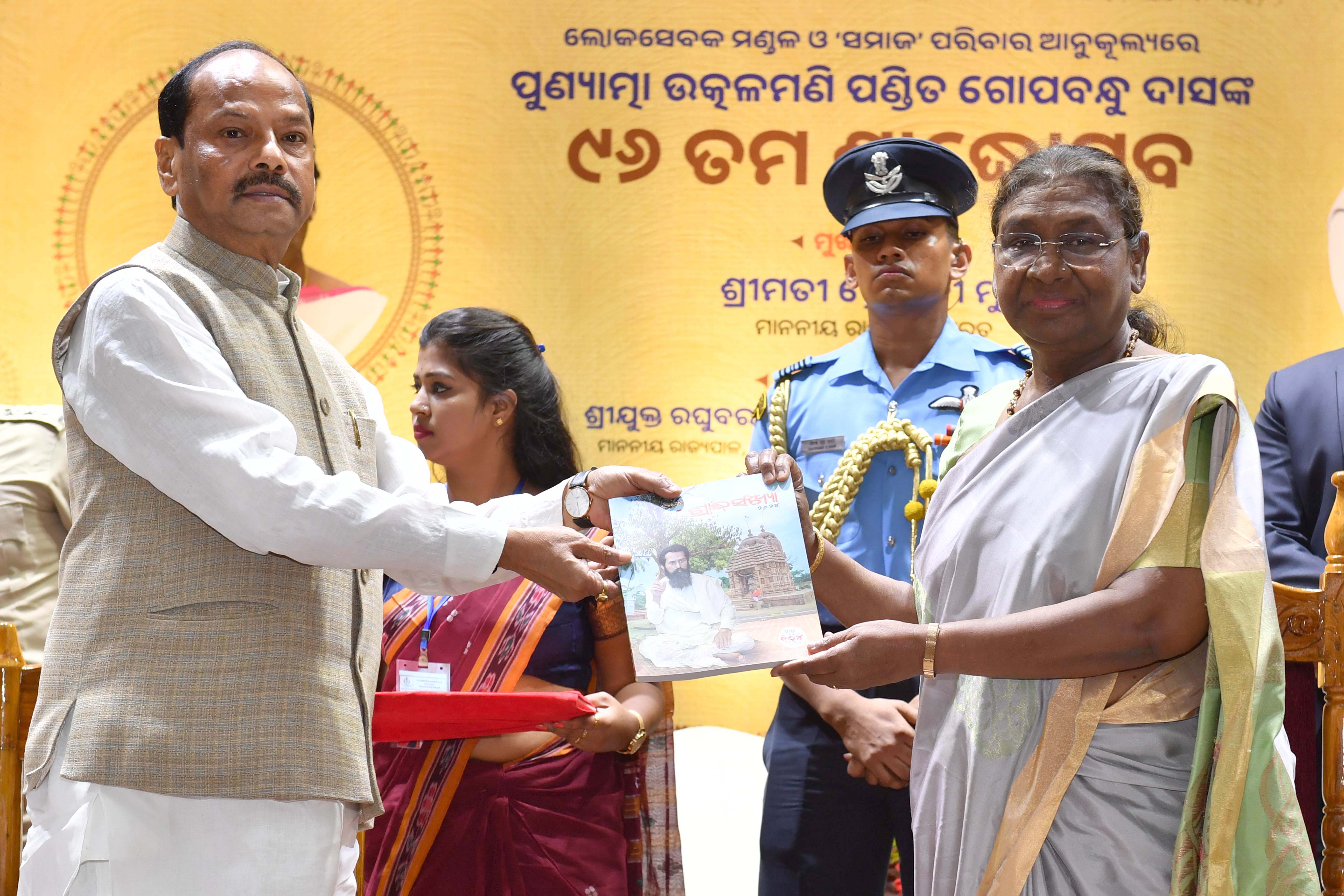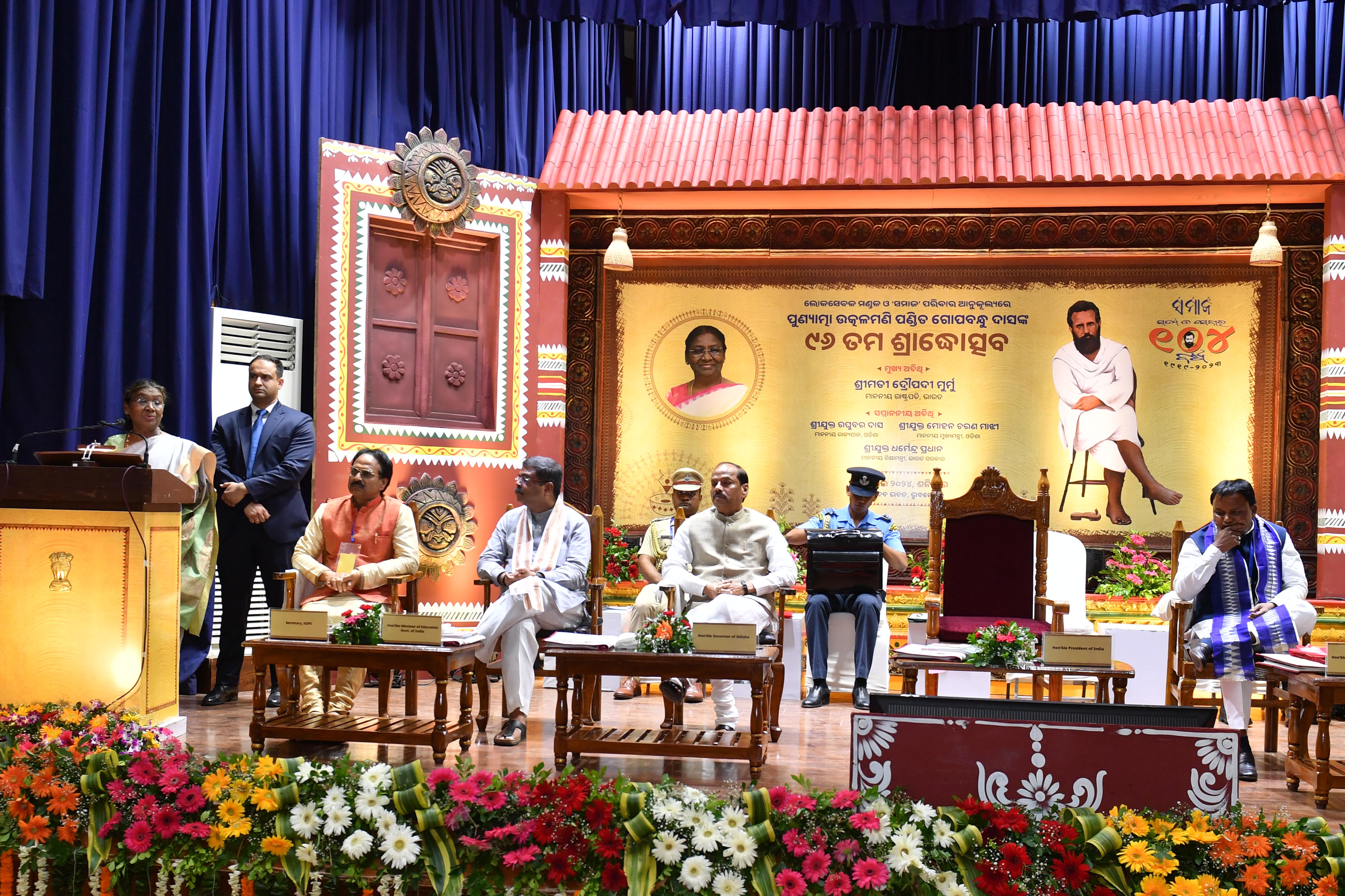 | Caption: | The President of India, Smt Droupadi Murmu graced the 96th Death Anniversary of Utkalamani Pandit Gopabandhu Das at Bhubaneswar, Odisha on July 6, 2024. |