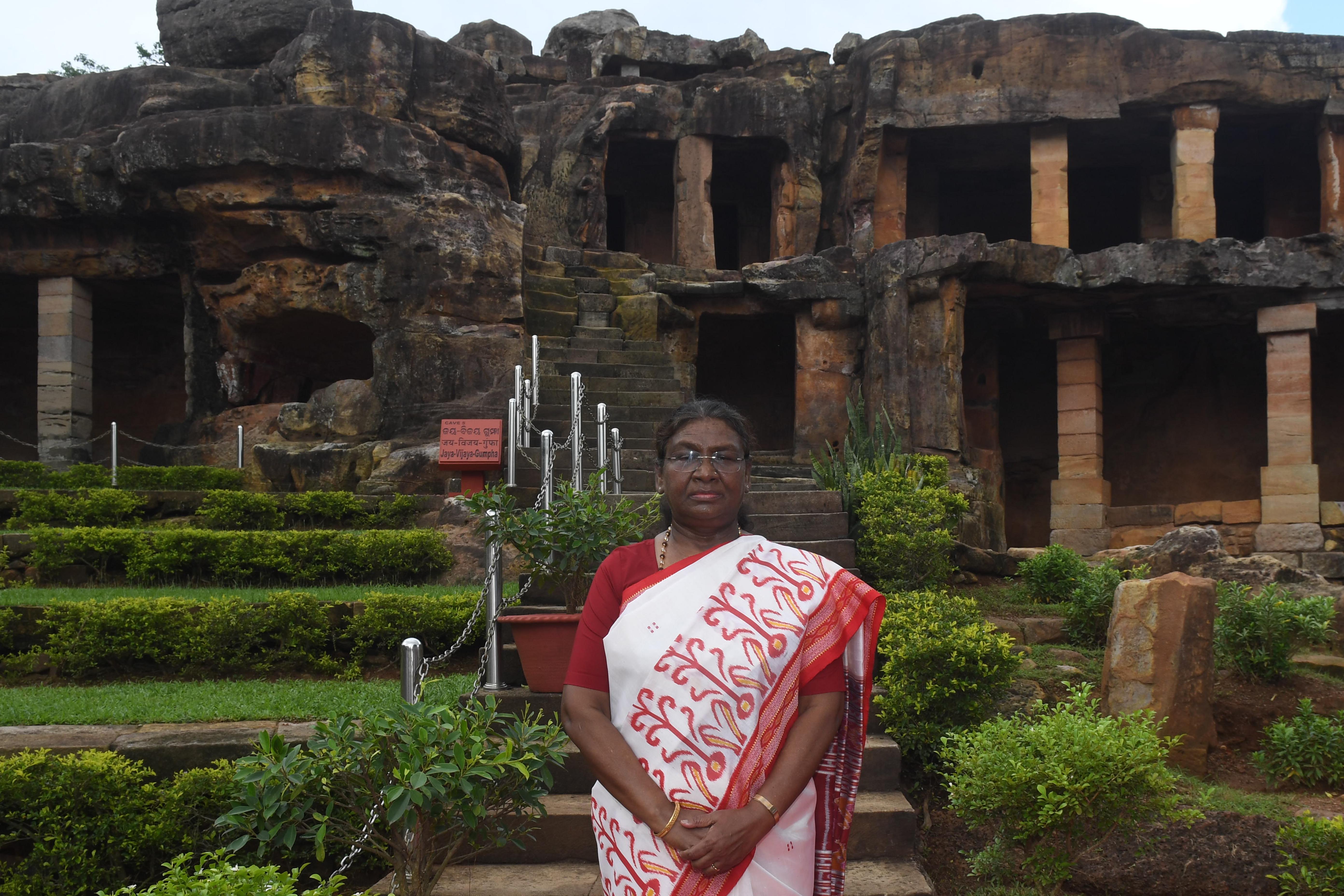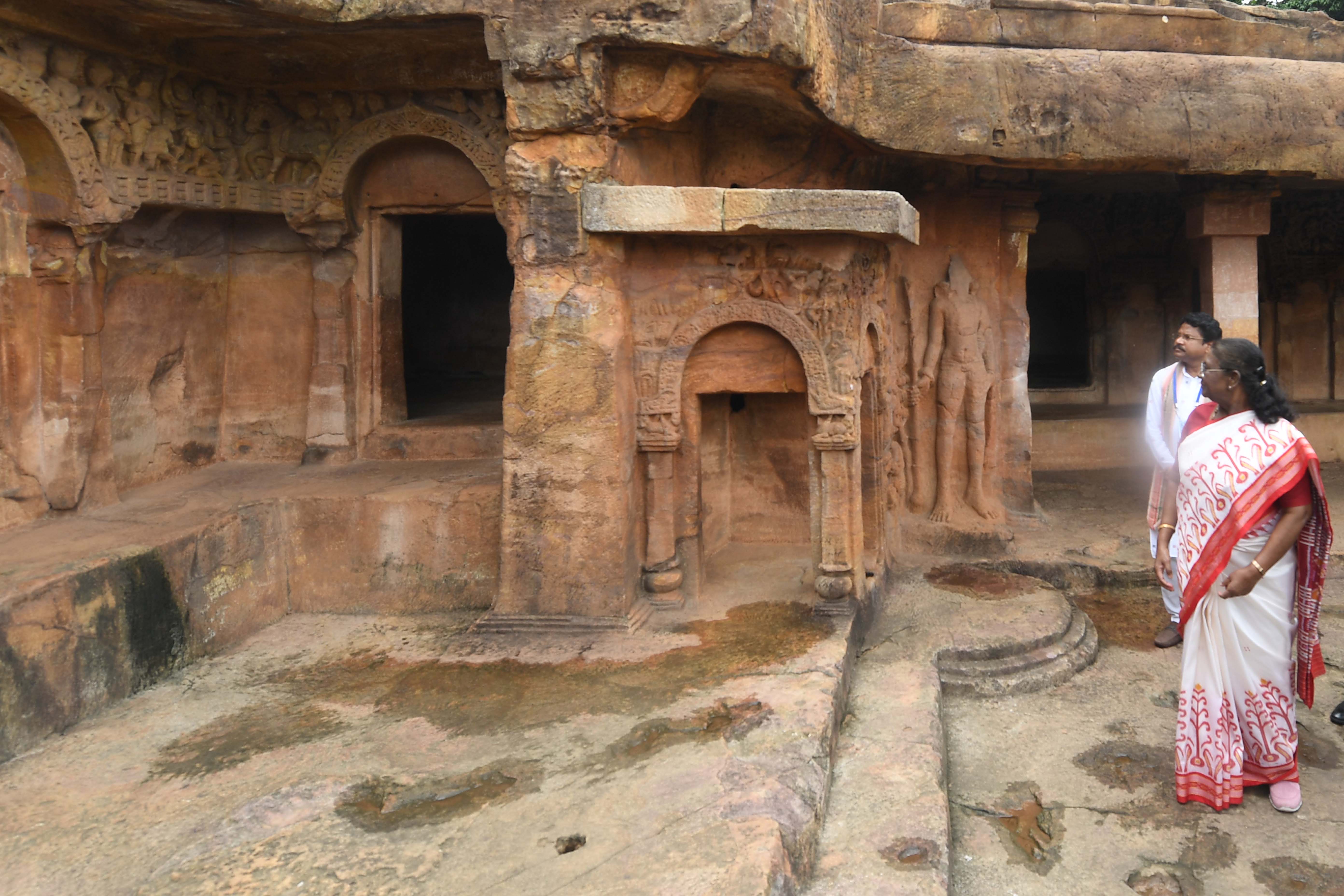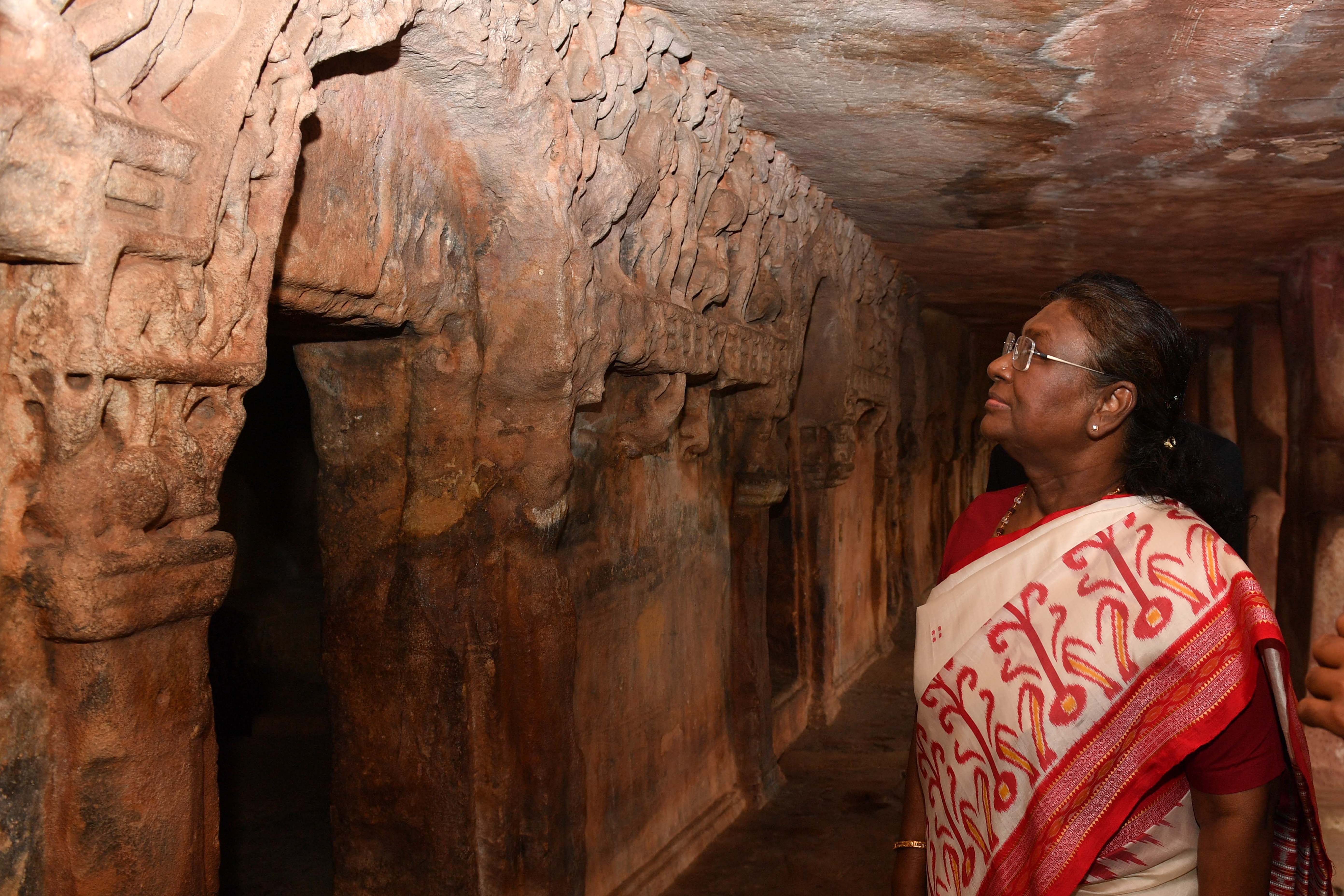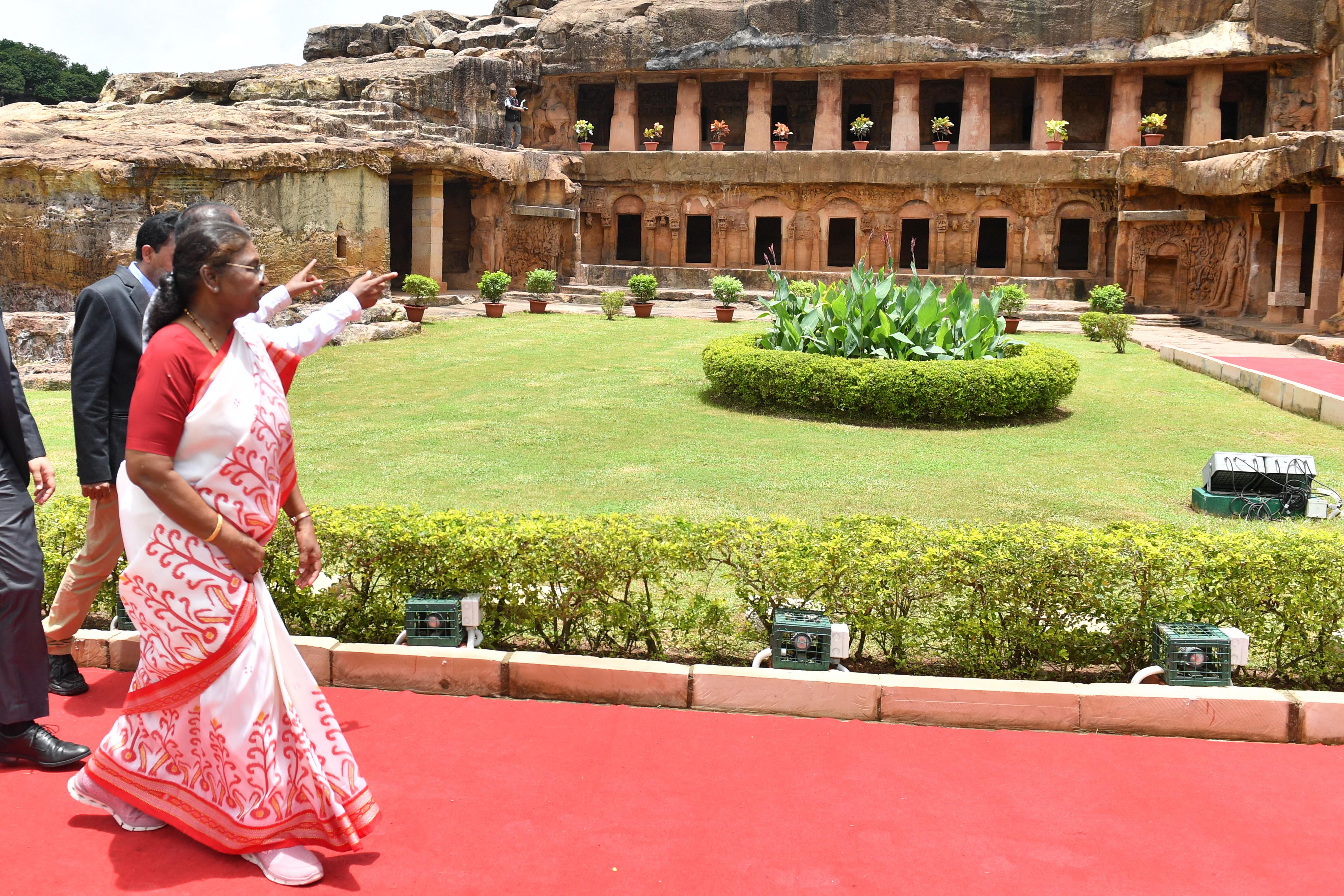 | Caption: | The President of India, Smt Droupadi Murmu visited the Udayagiri caves at Bhubaneswar, Odisha on July 8, 2024. |