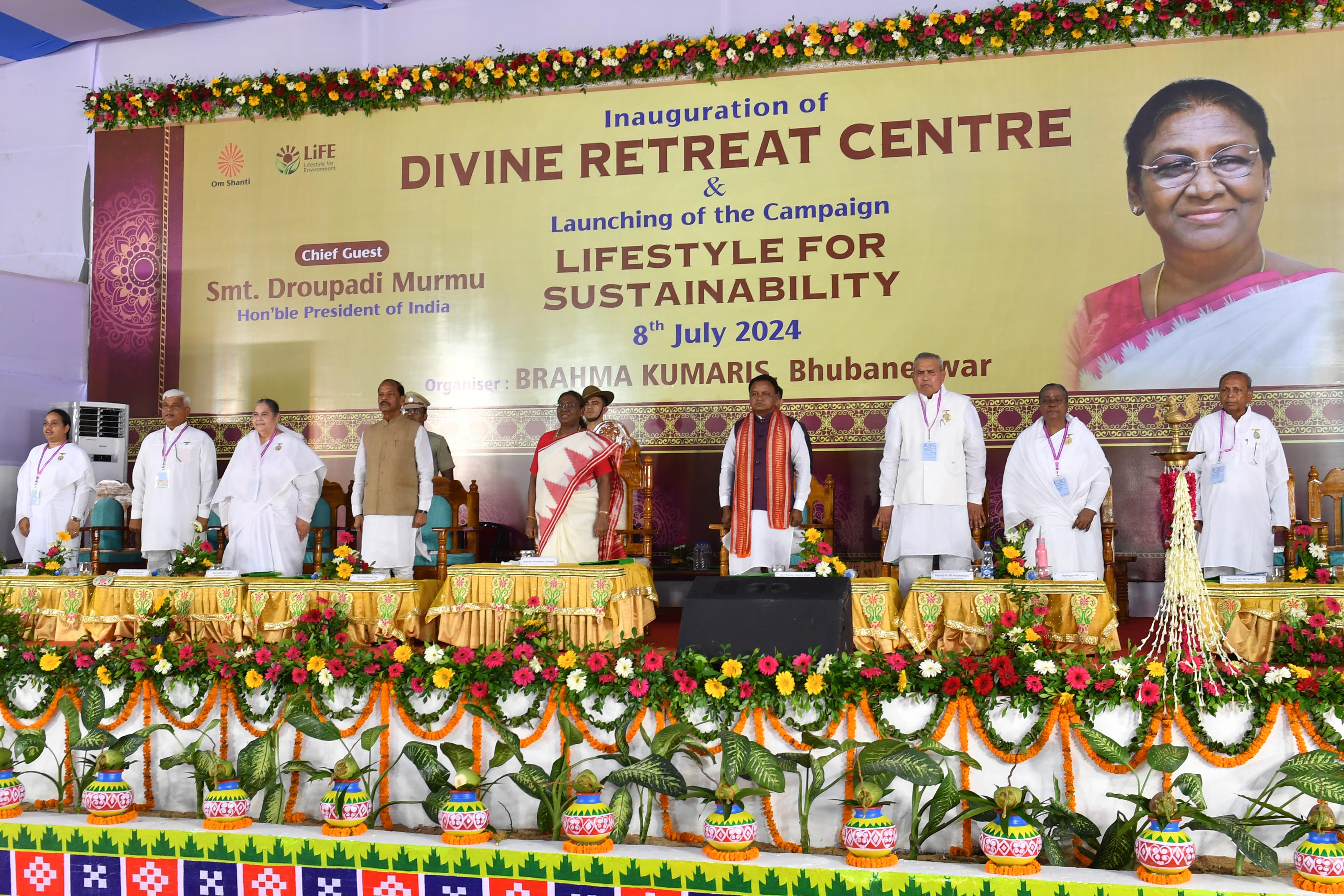 | Caption: | The President of India, Smt Droupadi Murmu inaugurated the Divine Retreat Centre of Brahma Kumaris at Haridamada village near Bhubaneswar, Odisha on July 8, 2024. |