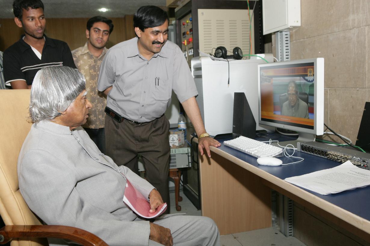 | Caption: | The President of India, Dr A P J Abdul Kalam watching the E-Government Portal at the Multi Media Studio of Rashtrapati Bhavan in New Delhi on May 04, 2007 |