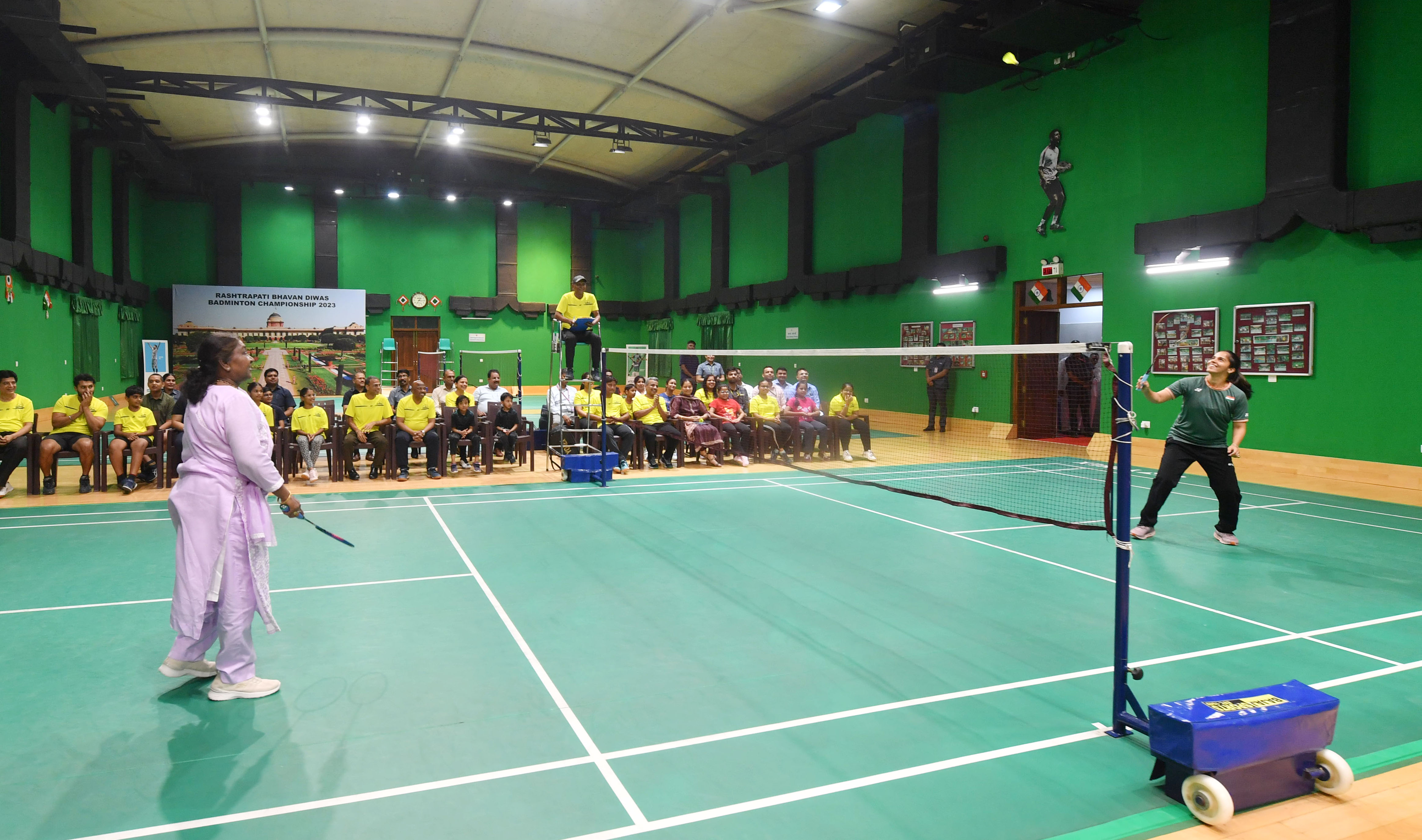 | Caption: | The President of India Smt. Droupadi Murmu visit the Badminton Hall at Rashtrapati Bhavan on July 10, 2024. |