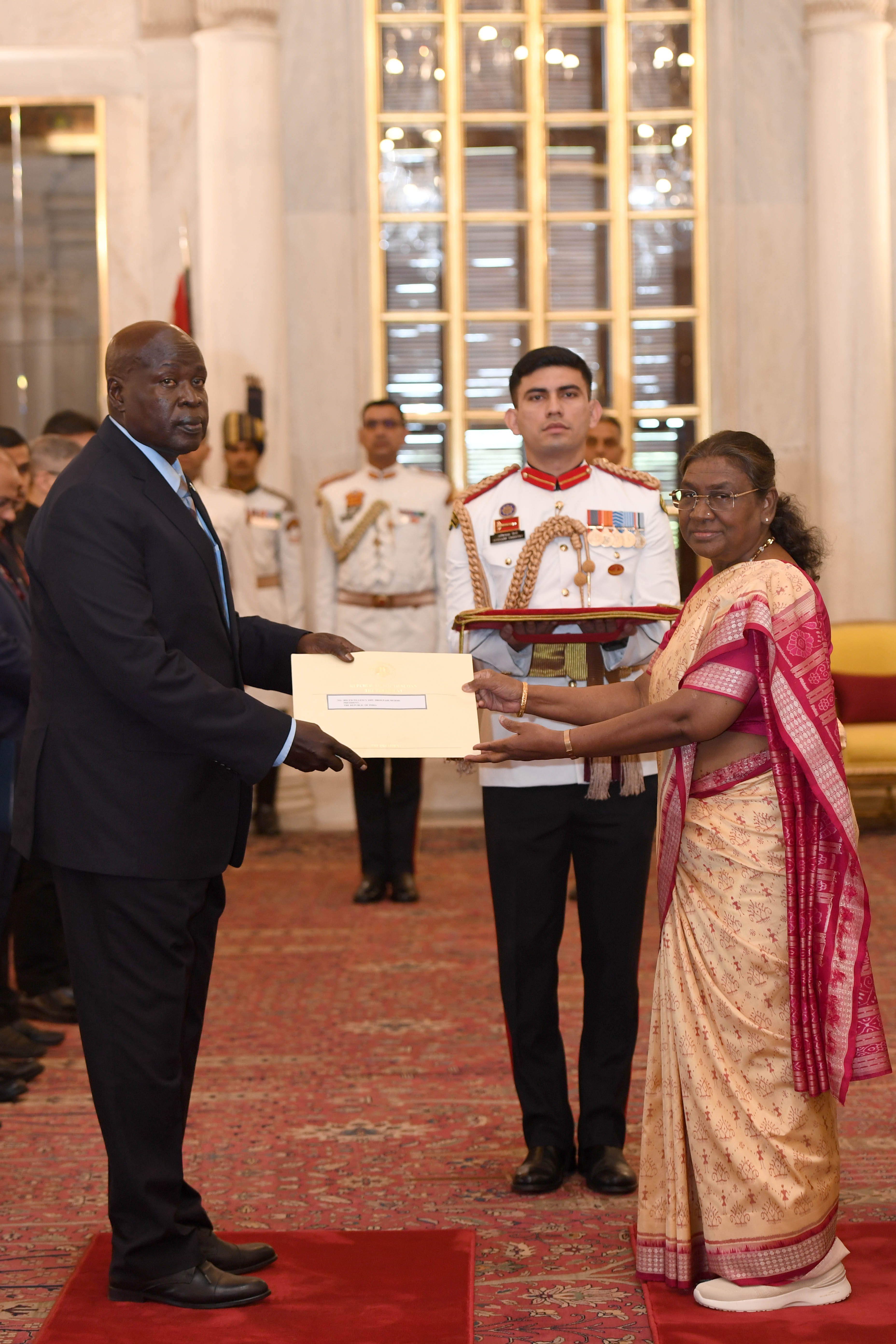 | Caption: | The Ambassador-designate of Republic of South Sudan, H.E. Mr Lumumba Maklele Nyajok presenting his credentials to the President of India, Smt Droupadi Murmu at Rashtrapati Bhavan in New Delhi on July 11, 2024. |