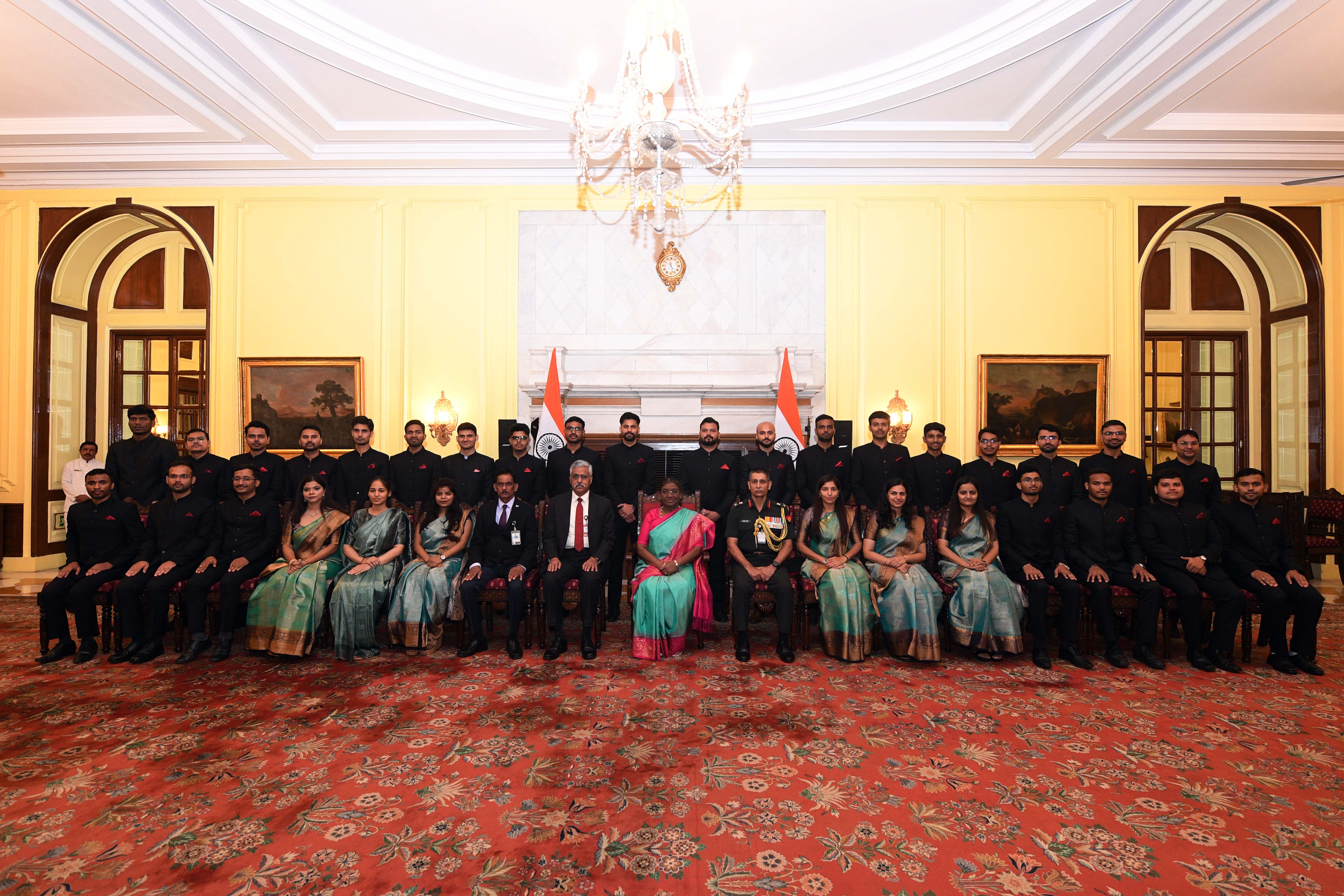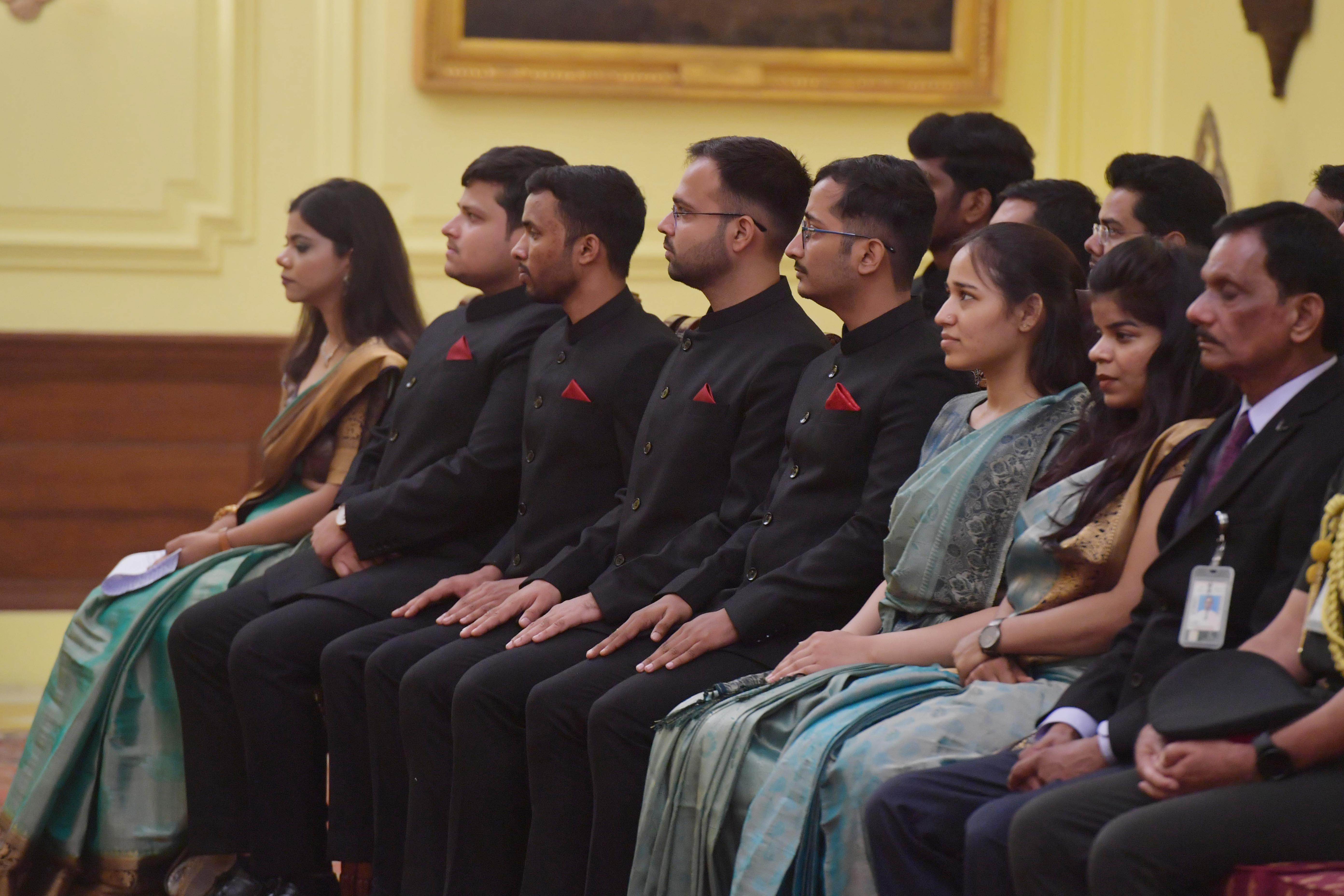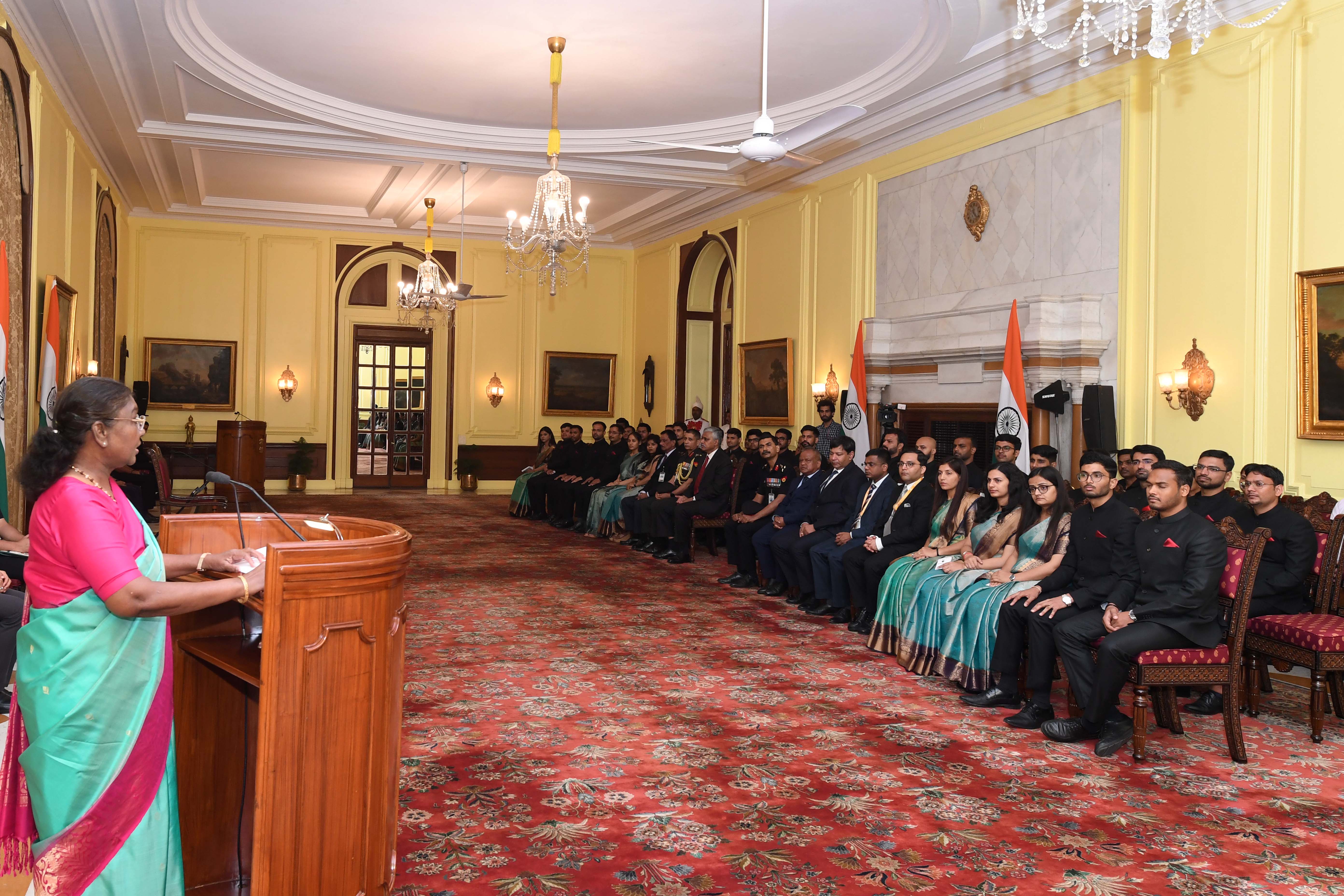 | Caption: | The Probationers of Military Engineer Services called on the President of India Smt. Droupadi Murmu at Rashtrapati Bhavan on July 12, 2024. |