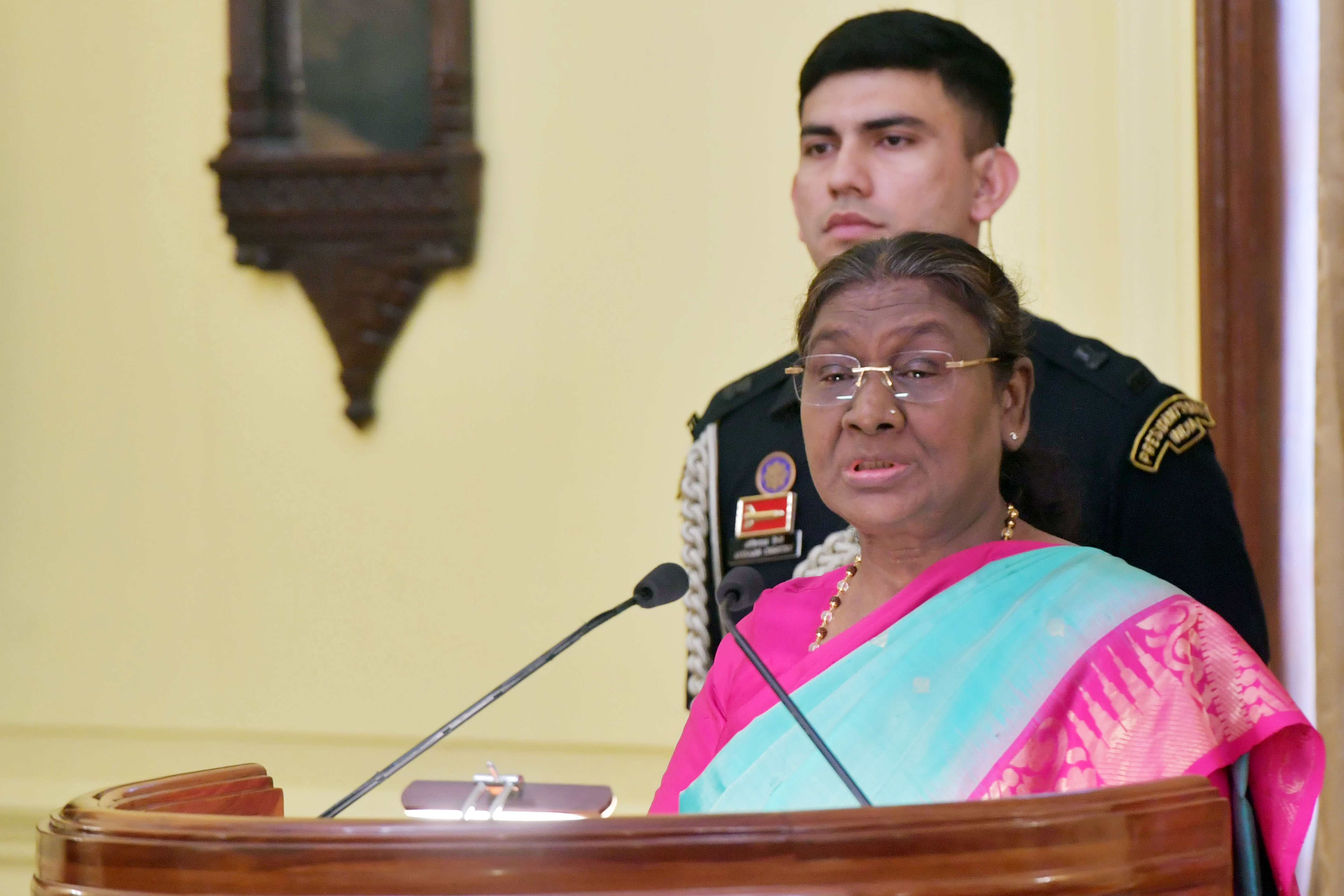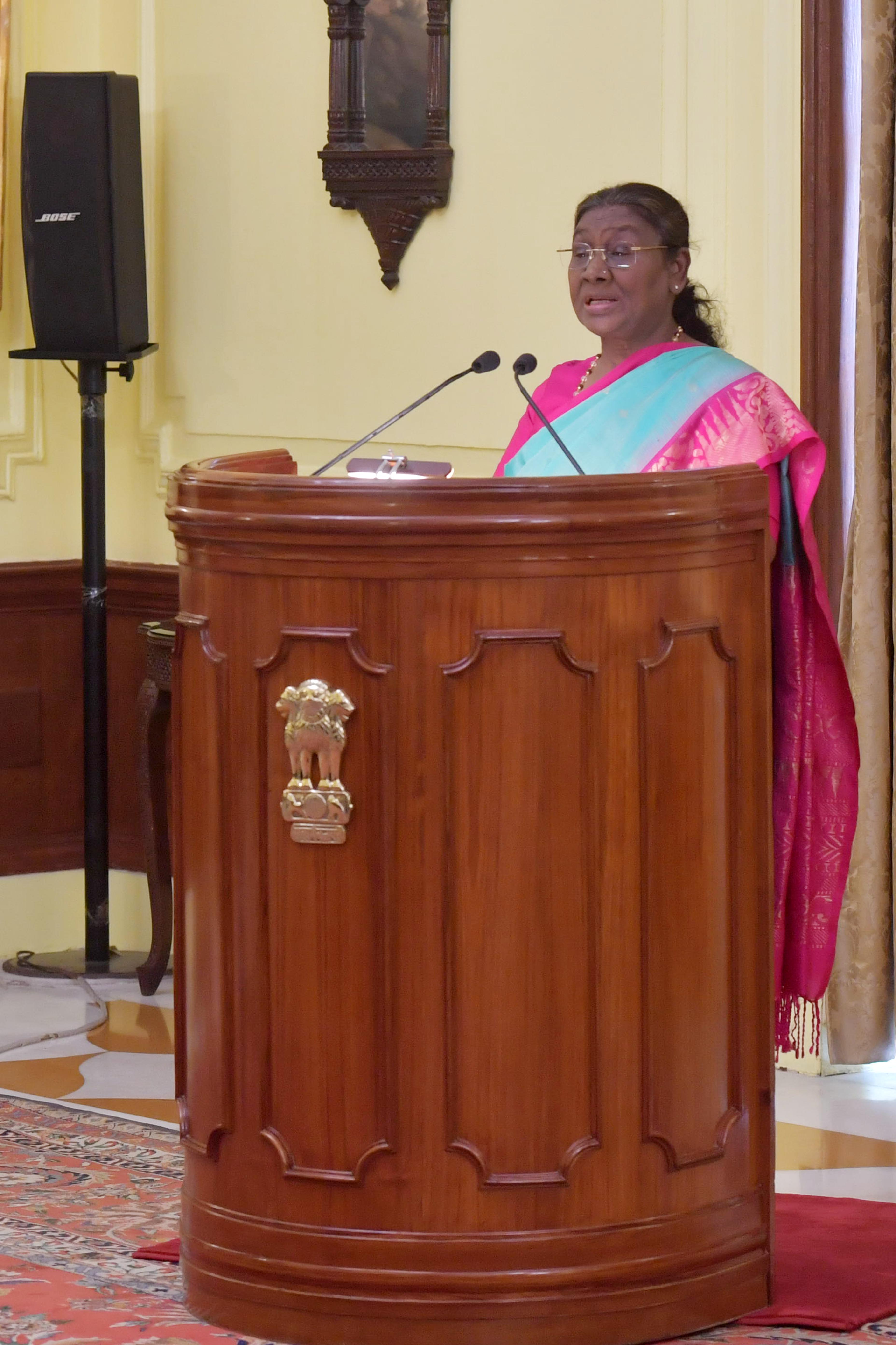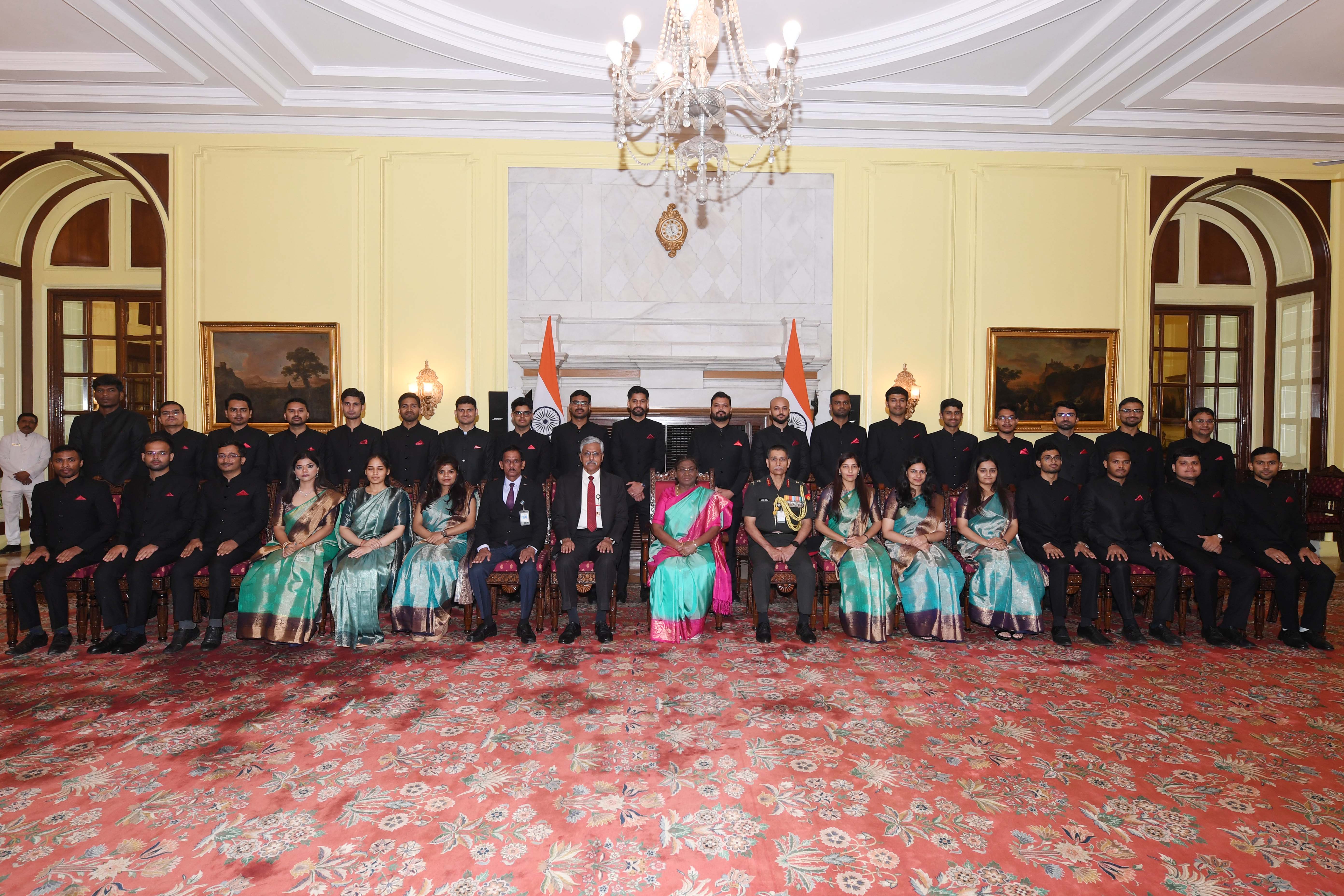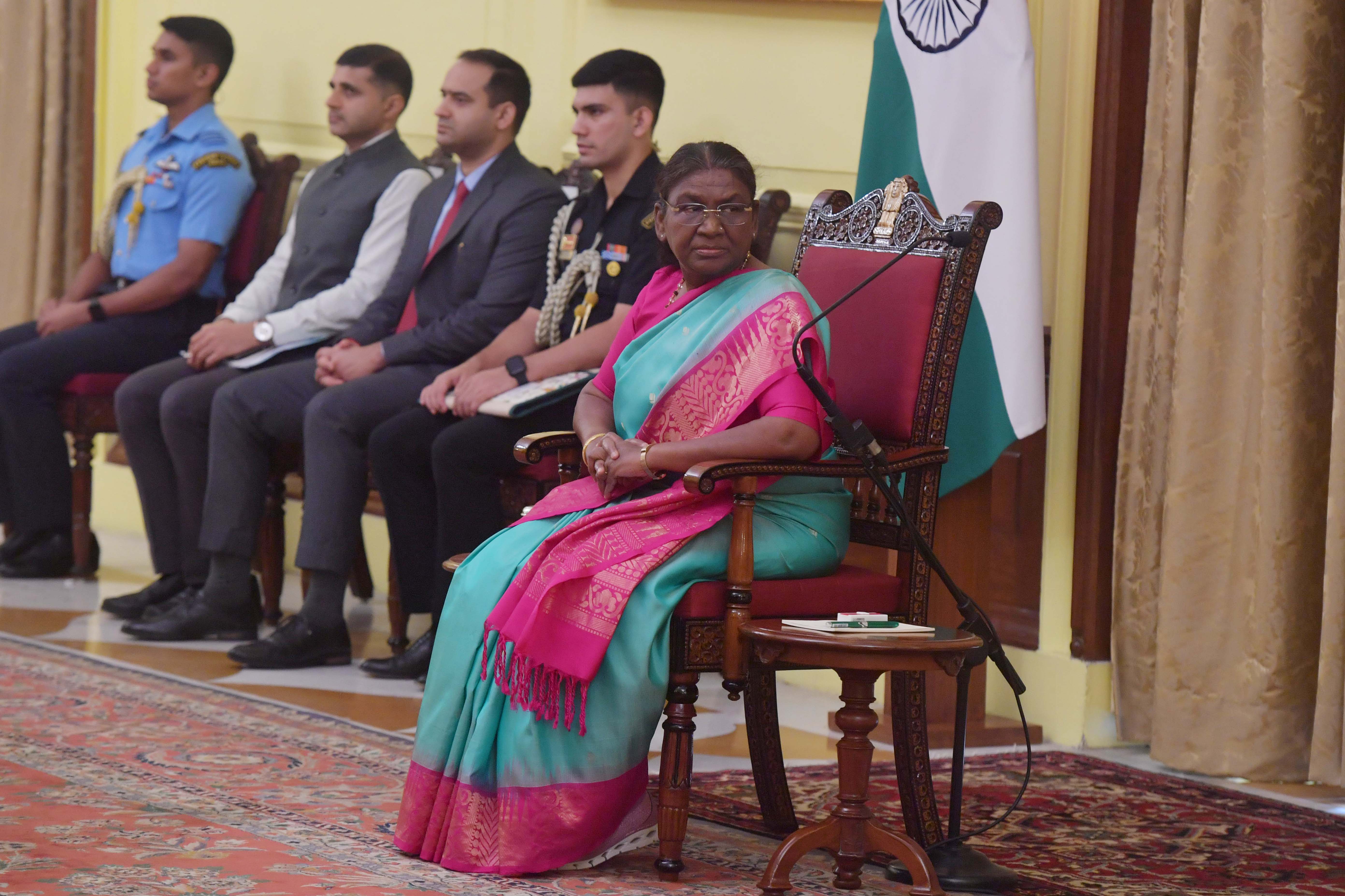| Caption: | The Probationers of Military Engineer Services called on the President of India Smt. Droupadi Murmu at Rashtrapati Bhavan on July 12, 2024. |
