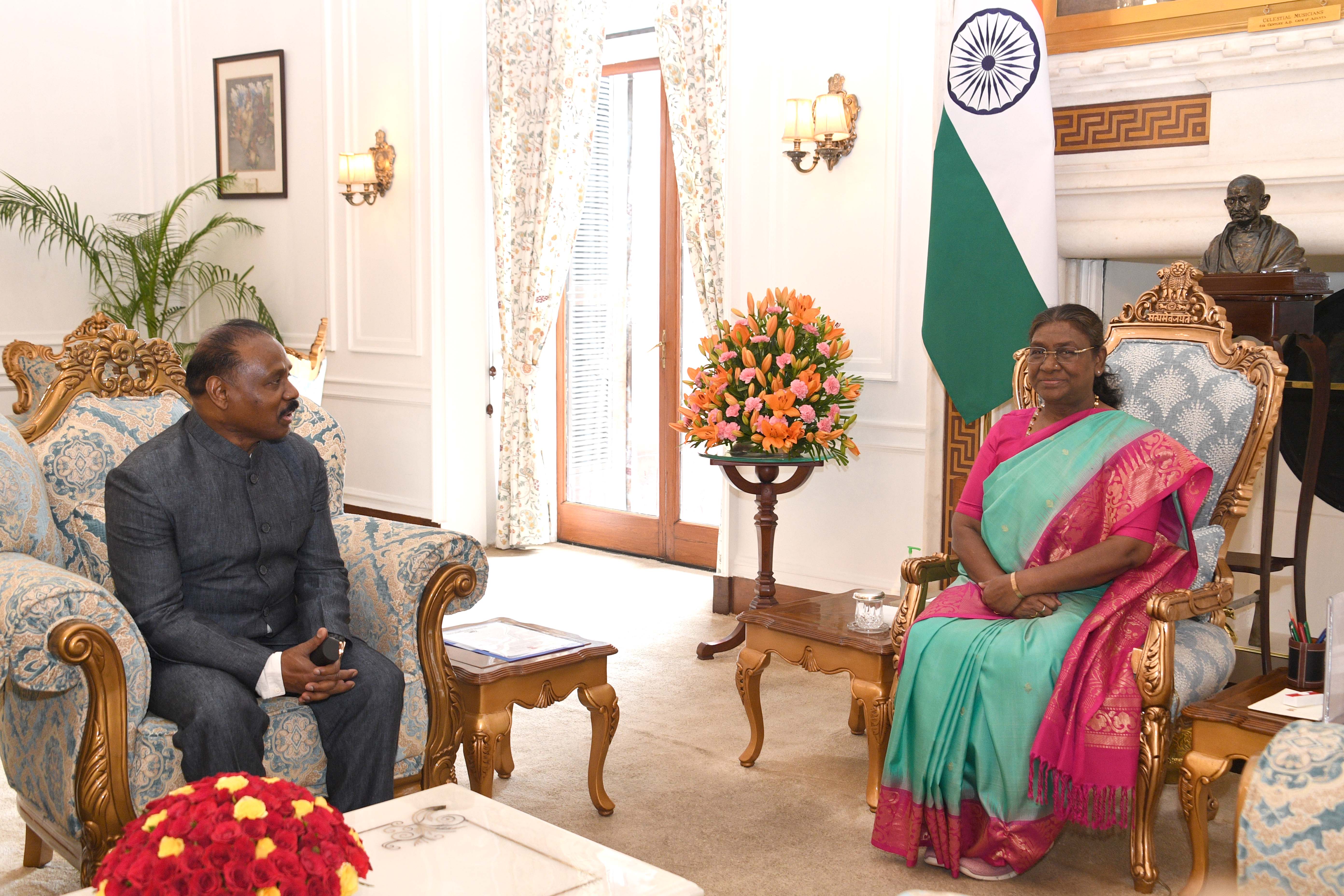| Caption: | Shri G. C. Murmu, Controller Auditor General of India meeting with President of India Smt. Droupadi Murmu at Rashtrapati Bhavan on July 12, 2024. |