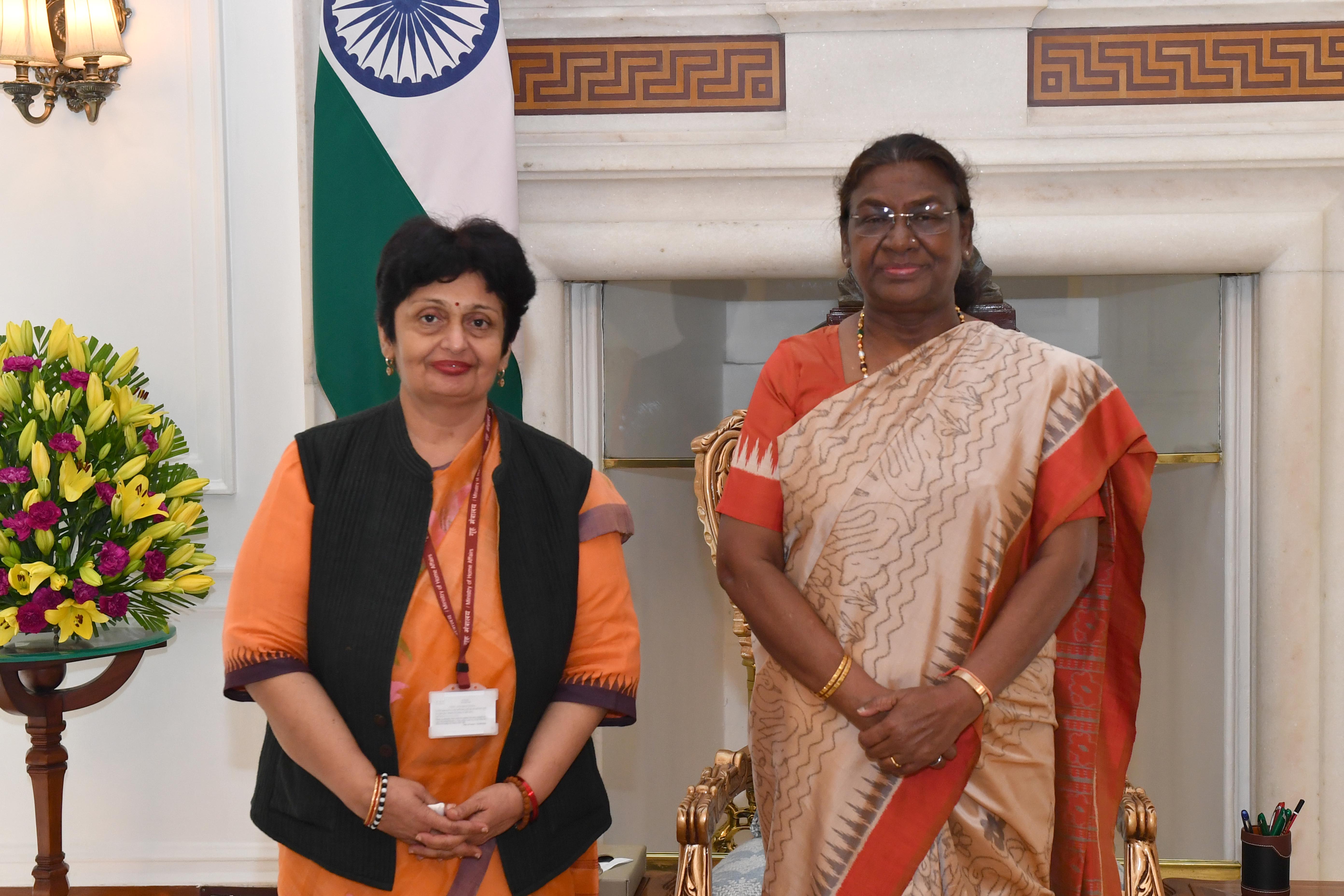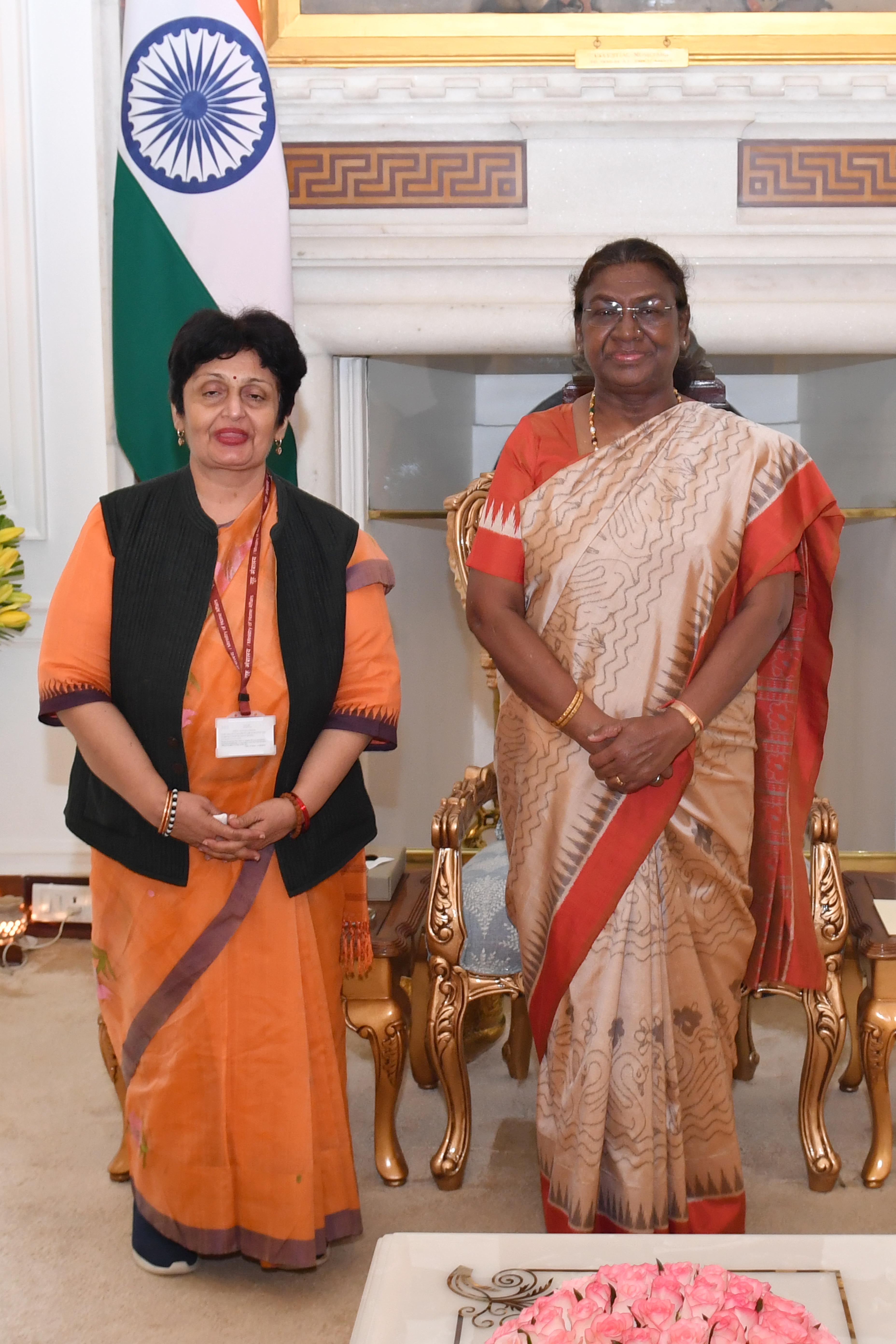 | Caption: | Smt. Preeti Sudan, Chairman, Union Public Service Commission meeting with the President of India Smt. Droupadi Murmu at Rashtrapati Bhavan on August 22, 2024. |
