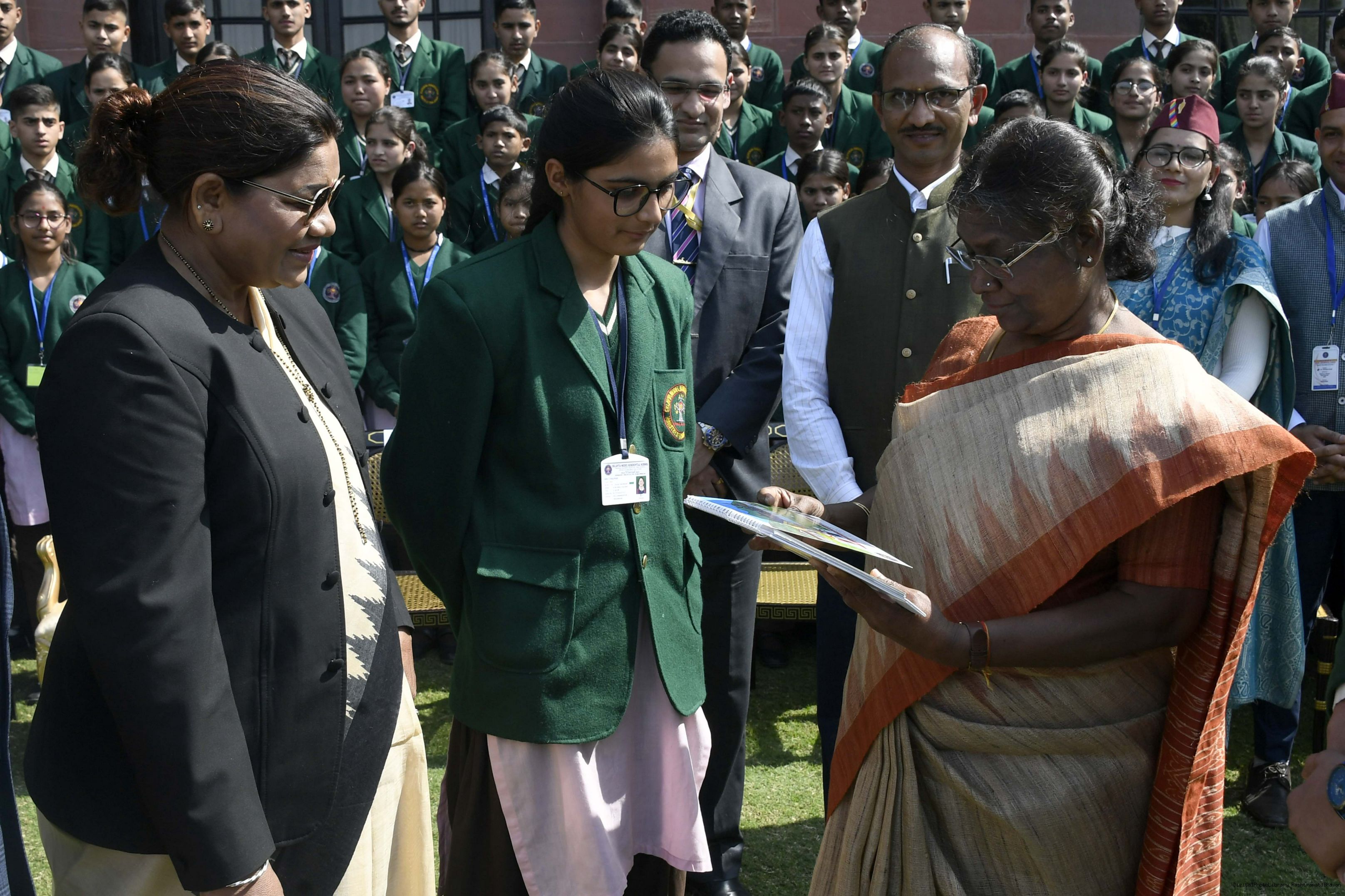 | Caption: | The President of India, Smt. Droupadi Murmu met tribal students from the schools of Nagaland, Rajasthan and Uttarakhand, at Rashtrapati Bhavan on February 15, 2023. |