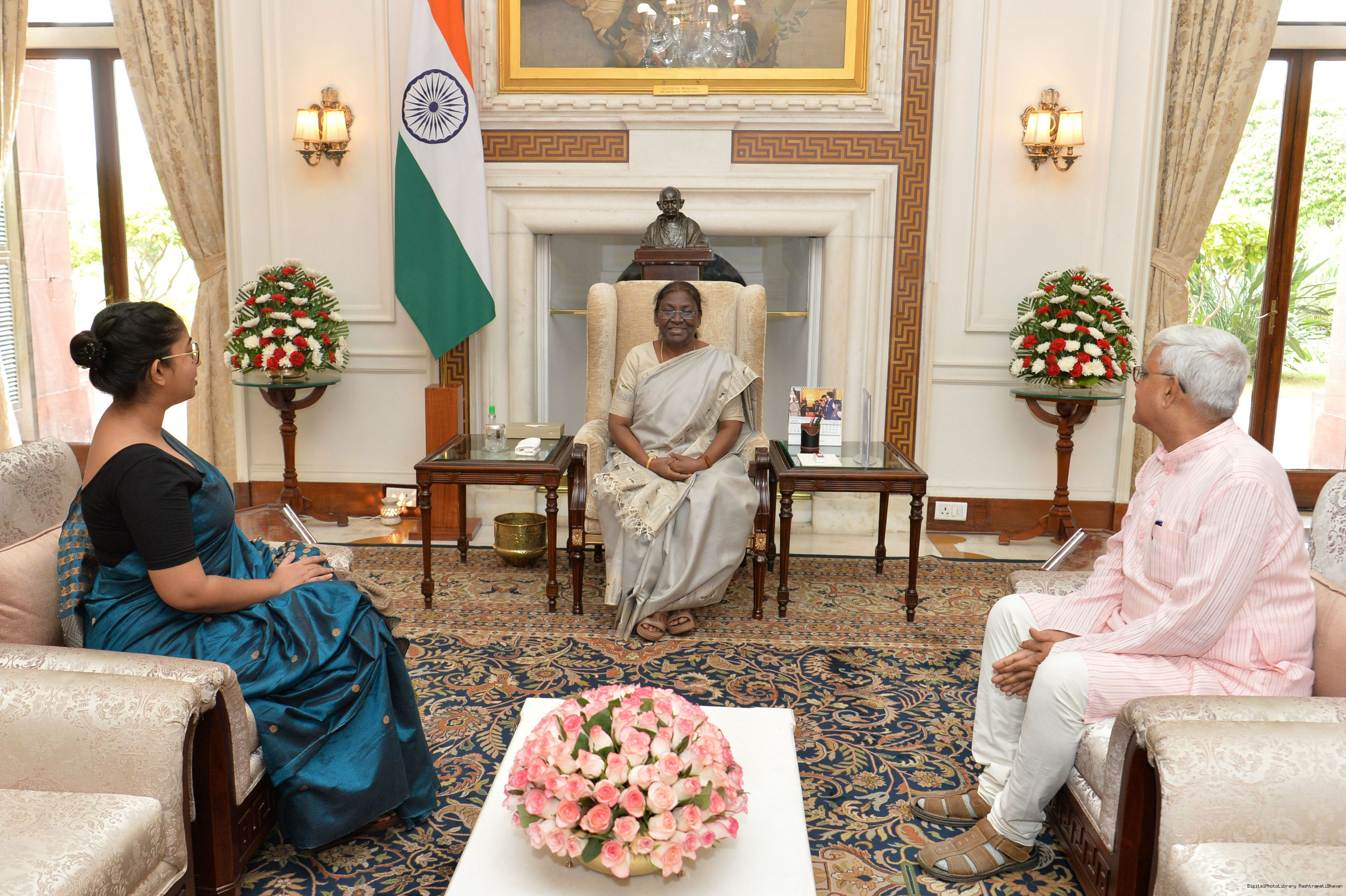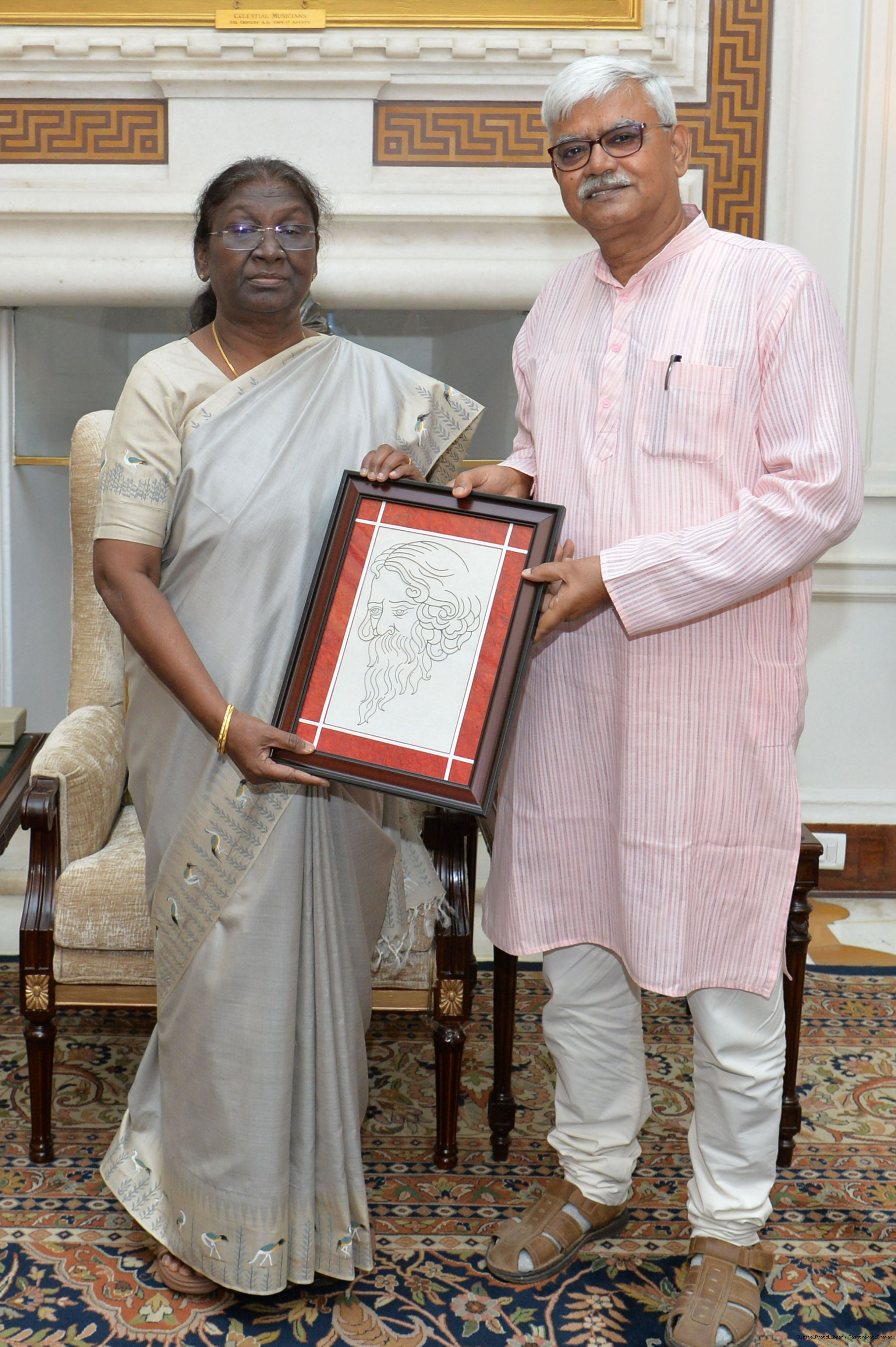 | Caption: | Prof. Bidyut Chakrabarty, Vice Chancellor, Visva Bharti University meeting with the President of India, Smt. Droupadi Murmu, at Rashtrapati Bhavan on Aug 22, 2022. |