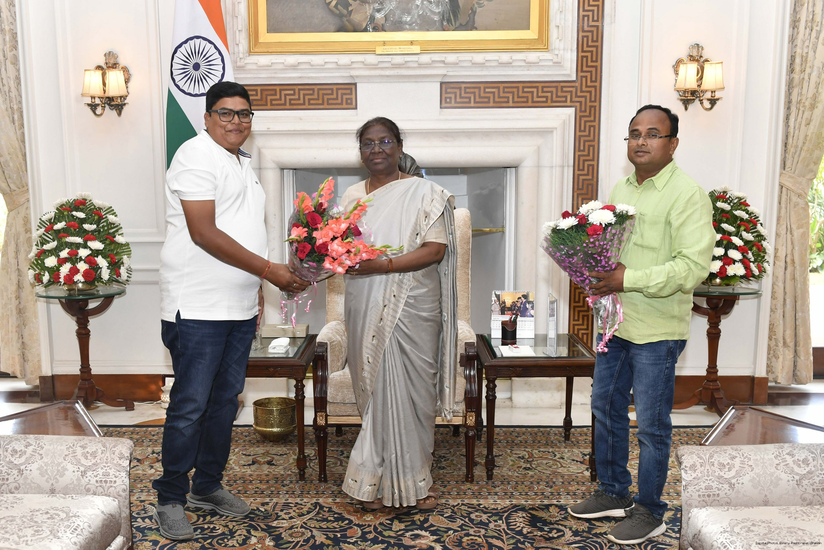 | Caption: | Shri Kishore Kumar Rajak along with Shri Deepak Kumar Sahu from Rairangpur meeting with the President of India, Smt. Droupadi Murmu, at Rashtrapati Bhavan on Aug 22, 2022. |