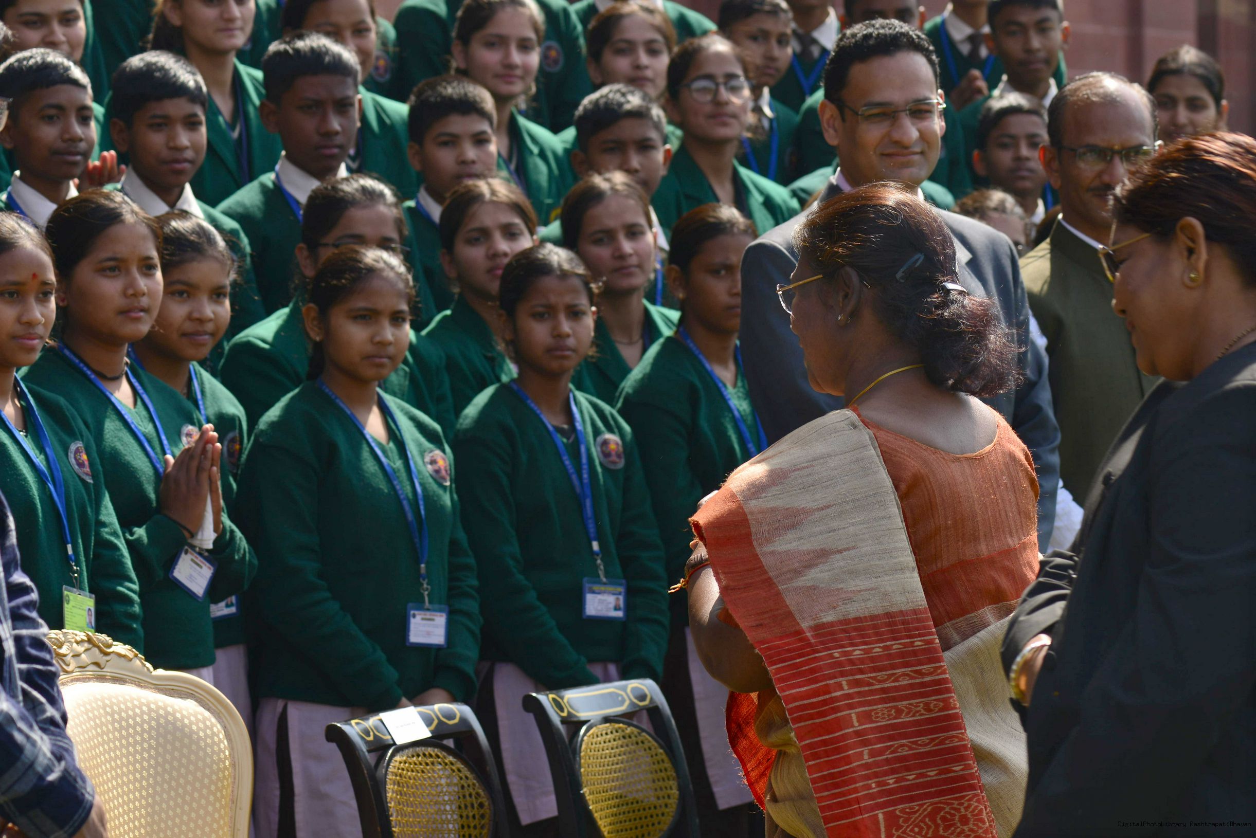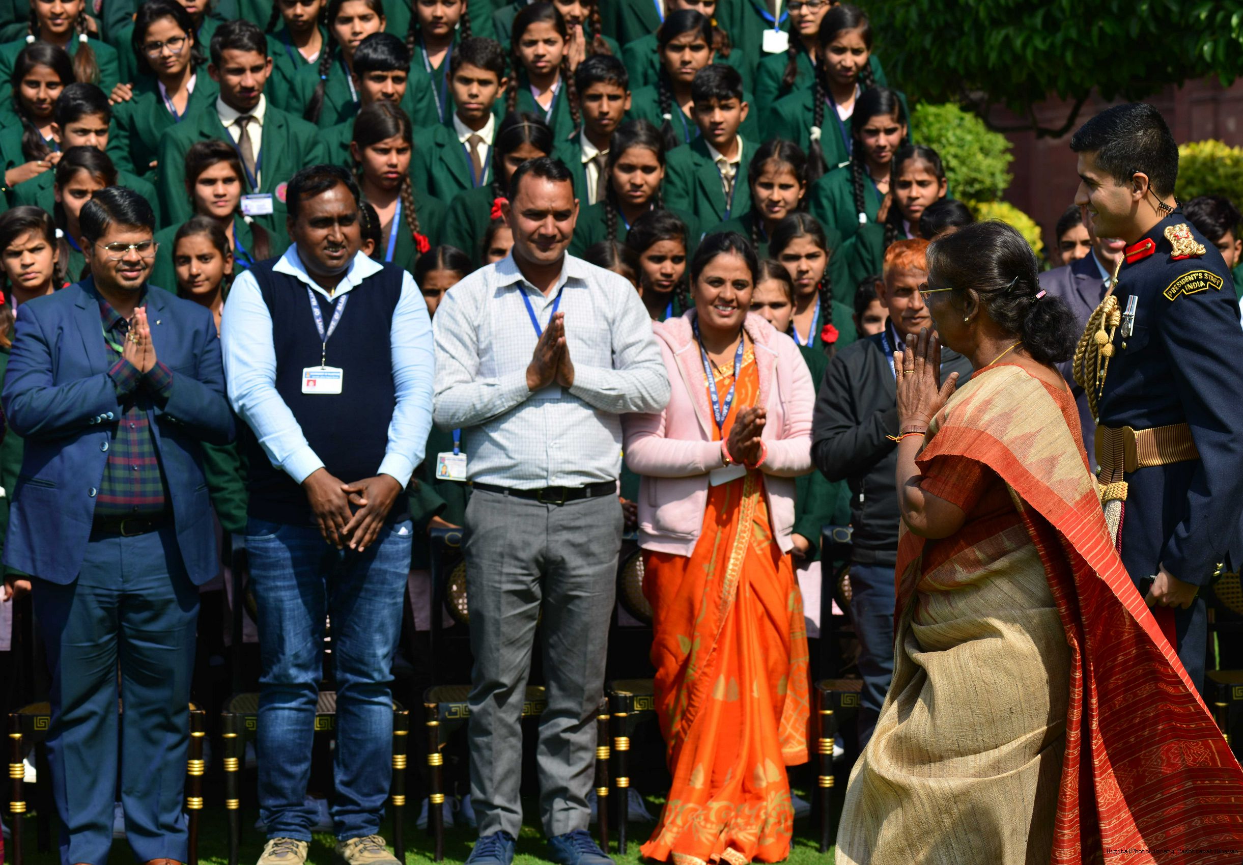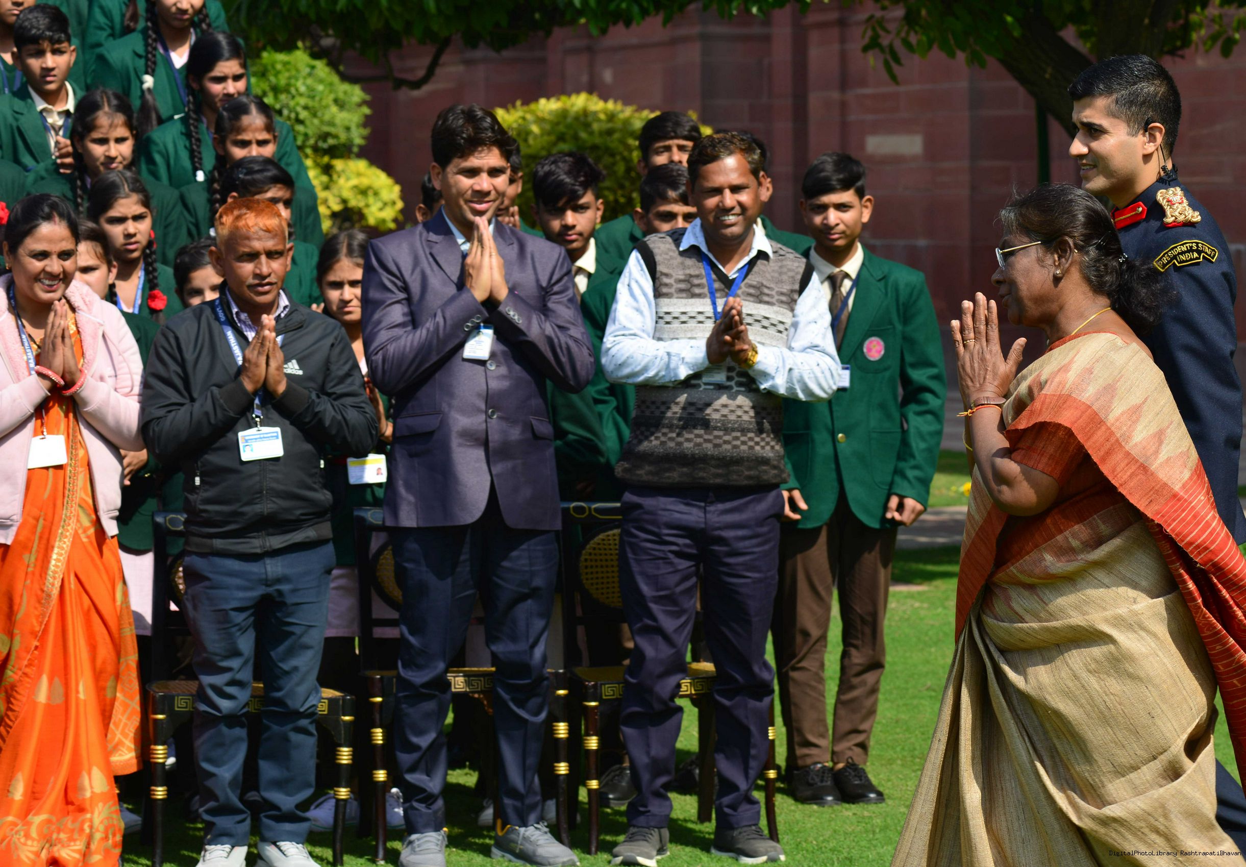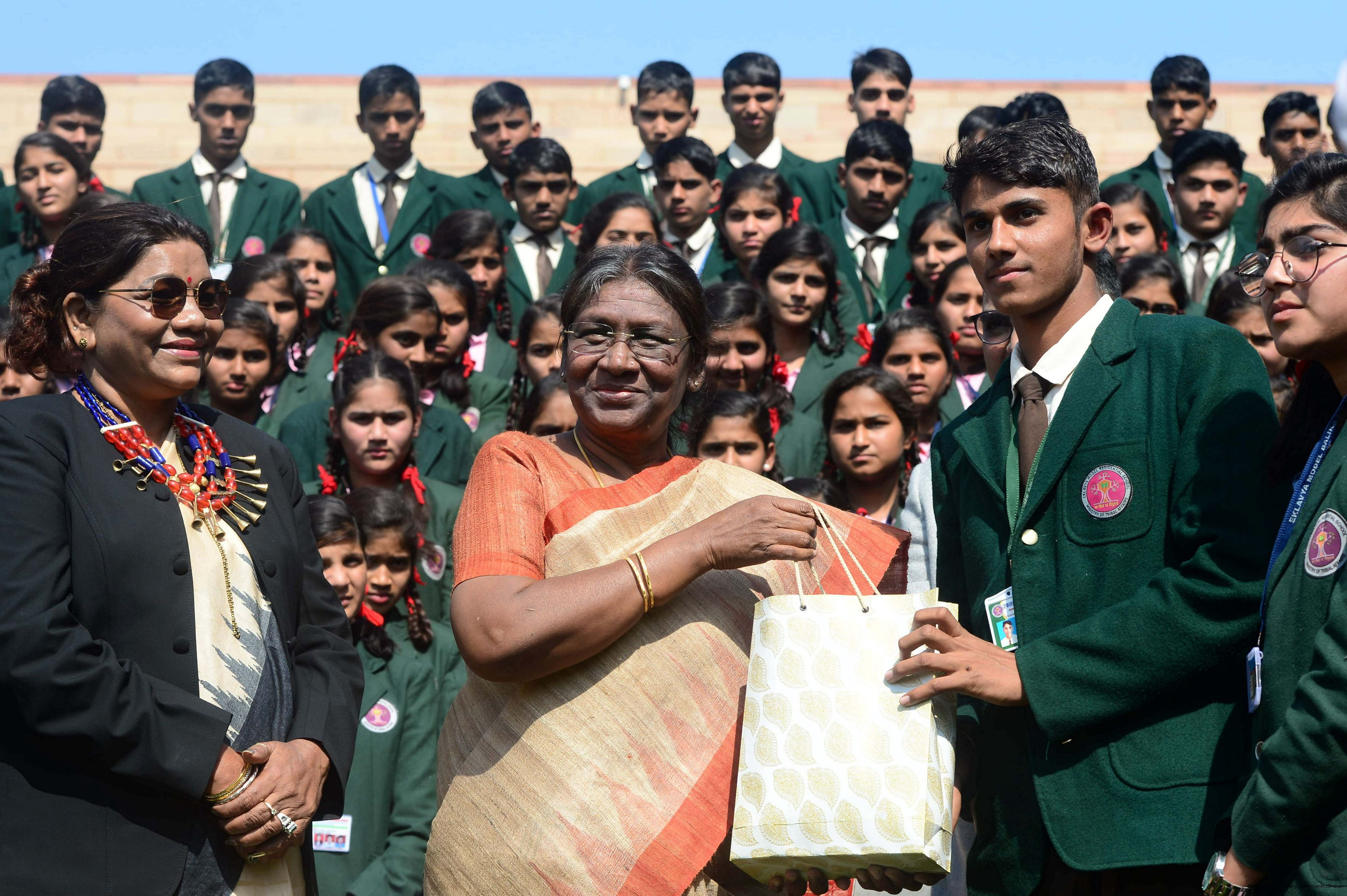 | Caption: | The President of India, Smt. Droupadi Murmu met tribal students from the schools of Nagaland, Rajasthan and Uttarakhand, at Rashtrapati Bhavan on February 15, 2023. |