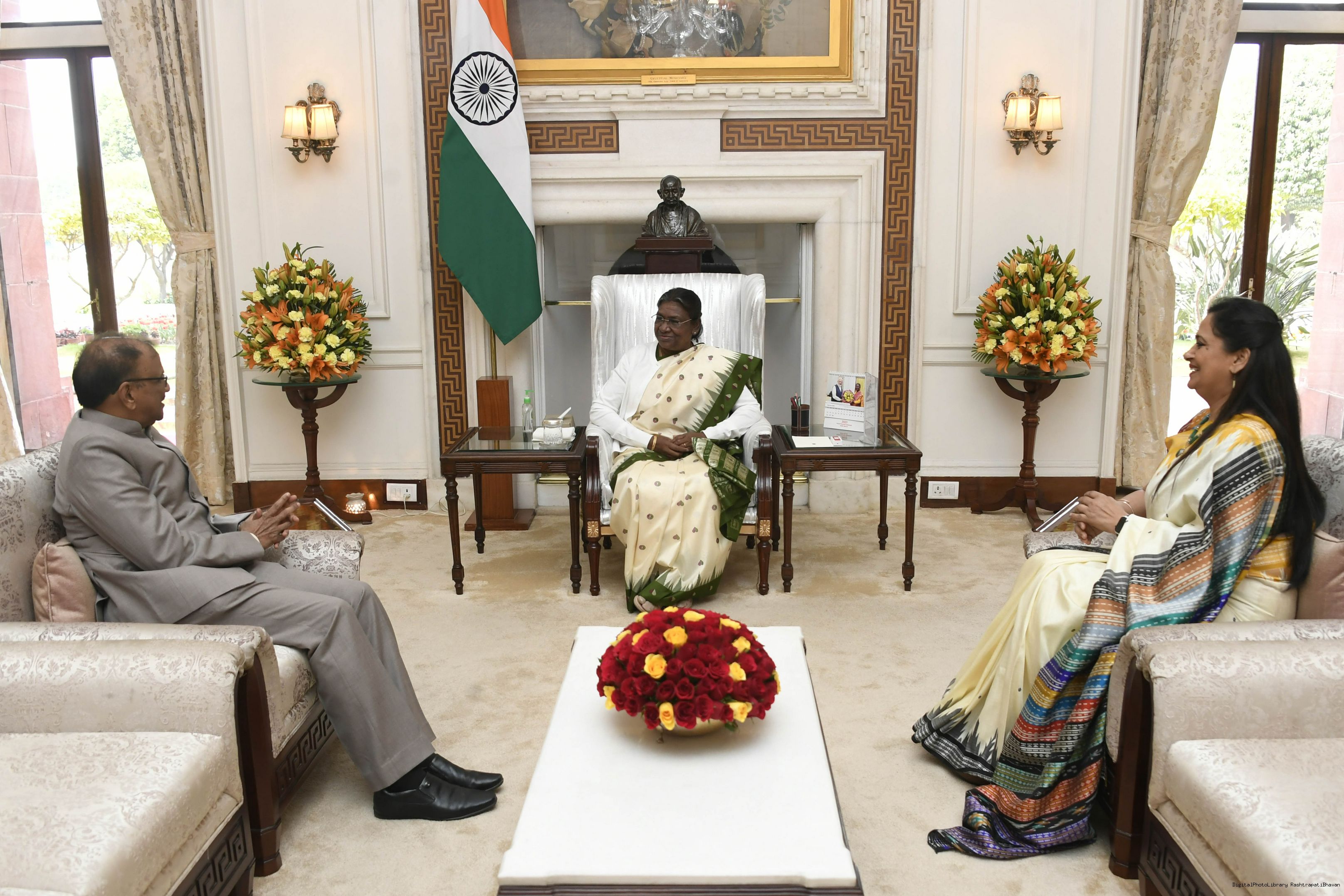 | Caption: | Shri Siddhanta Das, Chairperson, Odisha Real Estate Regulatory Authority, Bhubaneswar along with his wife meeting with the President of India Smt. Droupadi Murmu at Rashtrapati Bhavan on February 24, 2023. |