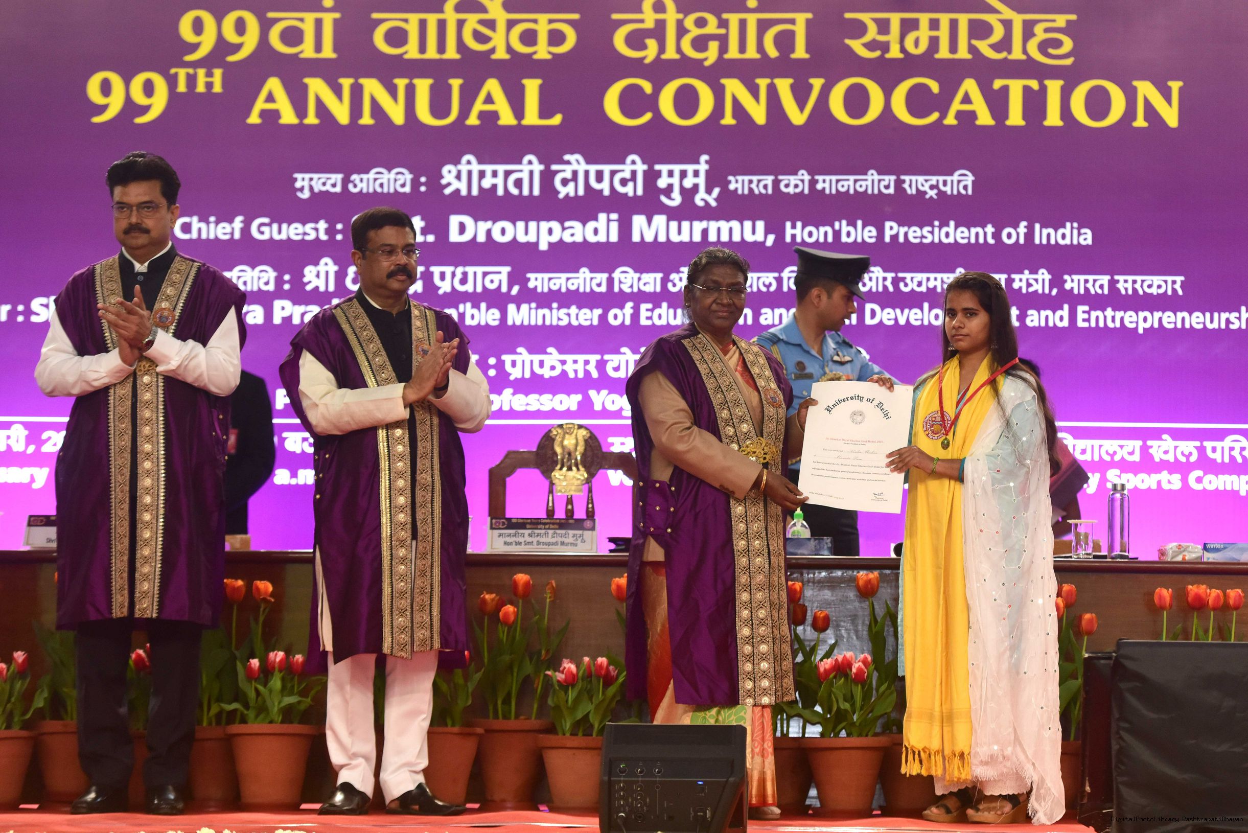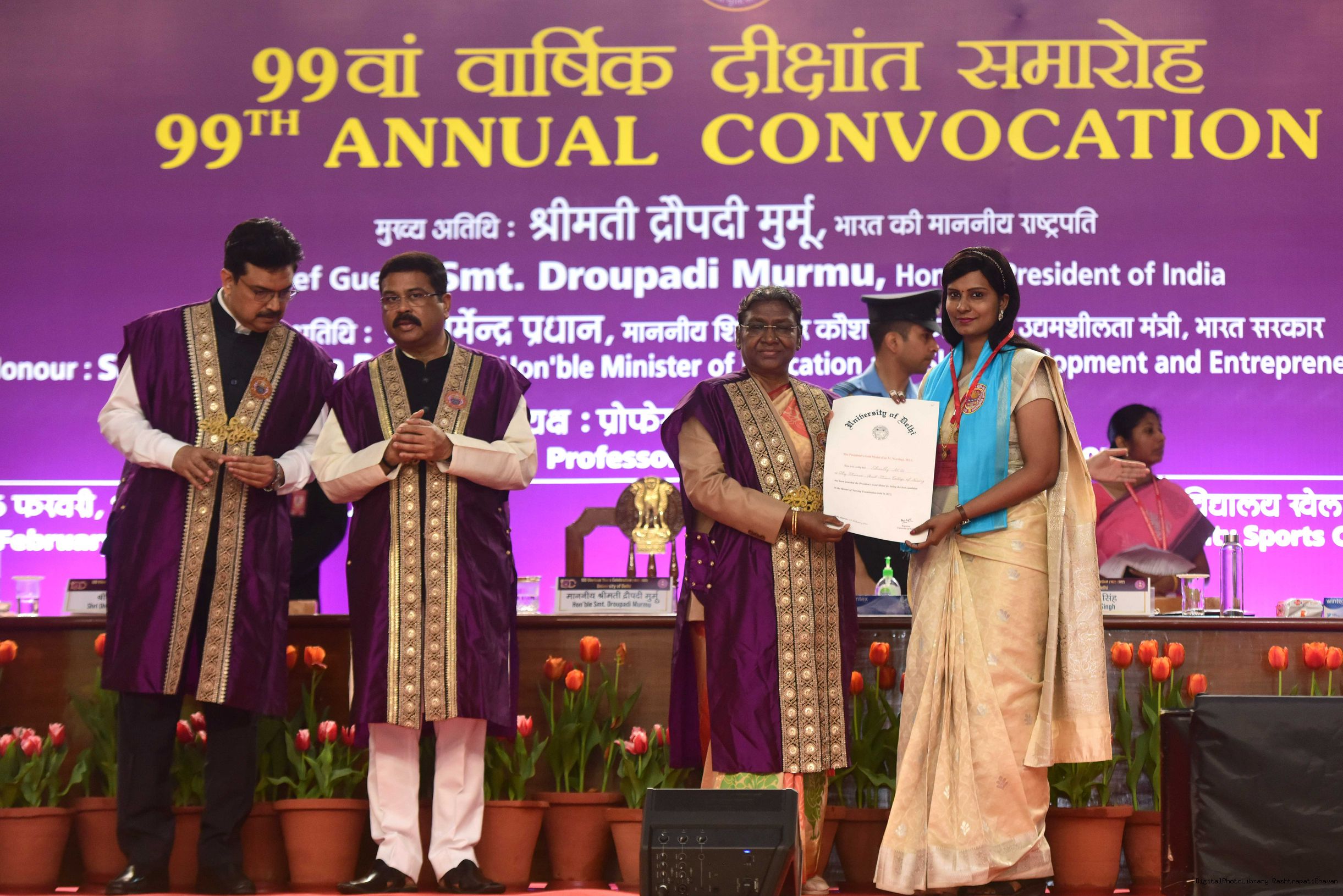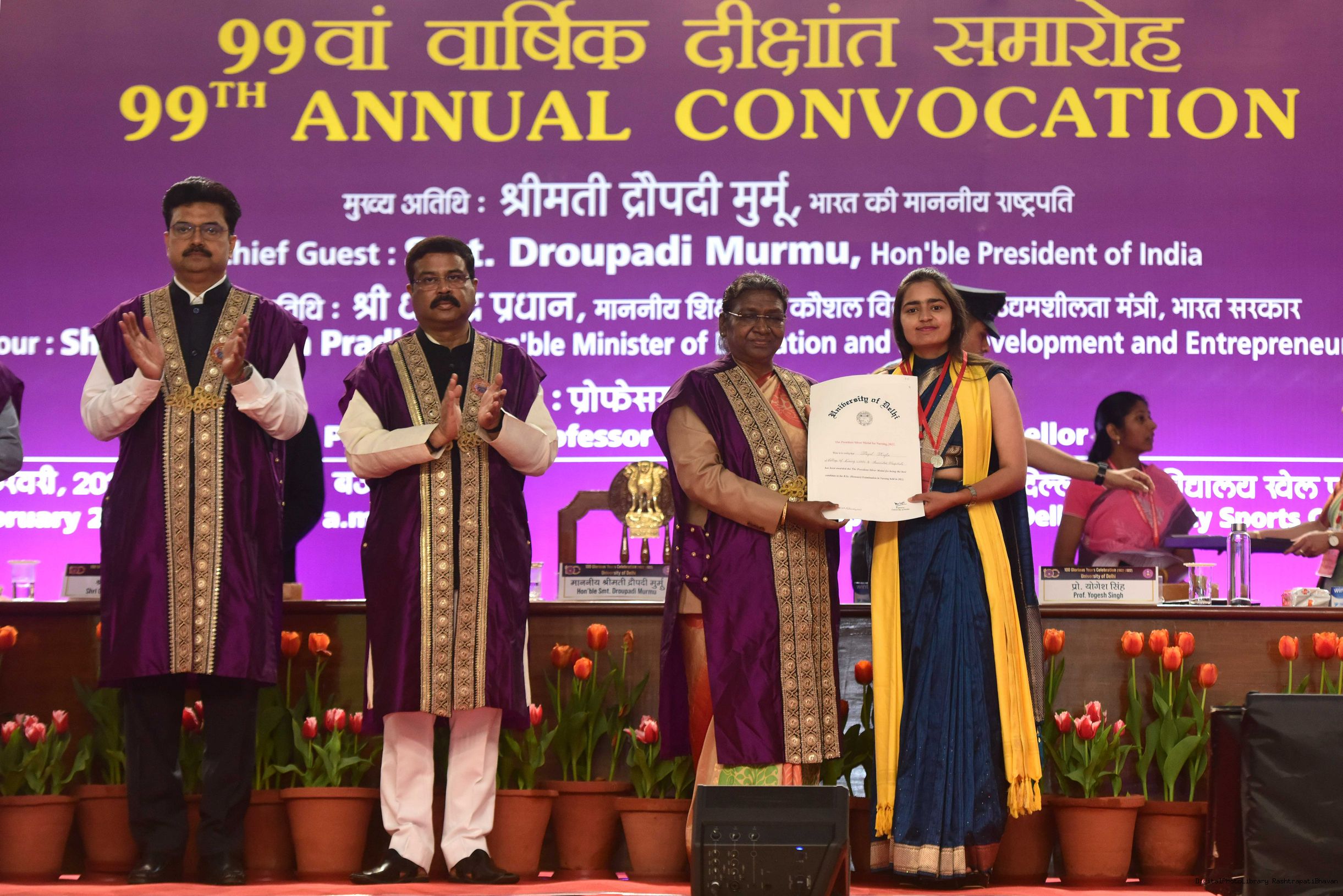 | Caption: | The President of India, Smt. Droupadi Murmu graced the 99th annual convocation of the University of Delhi, in New Delhi on February 25, 2023. |