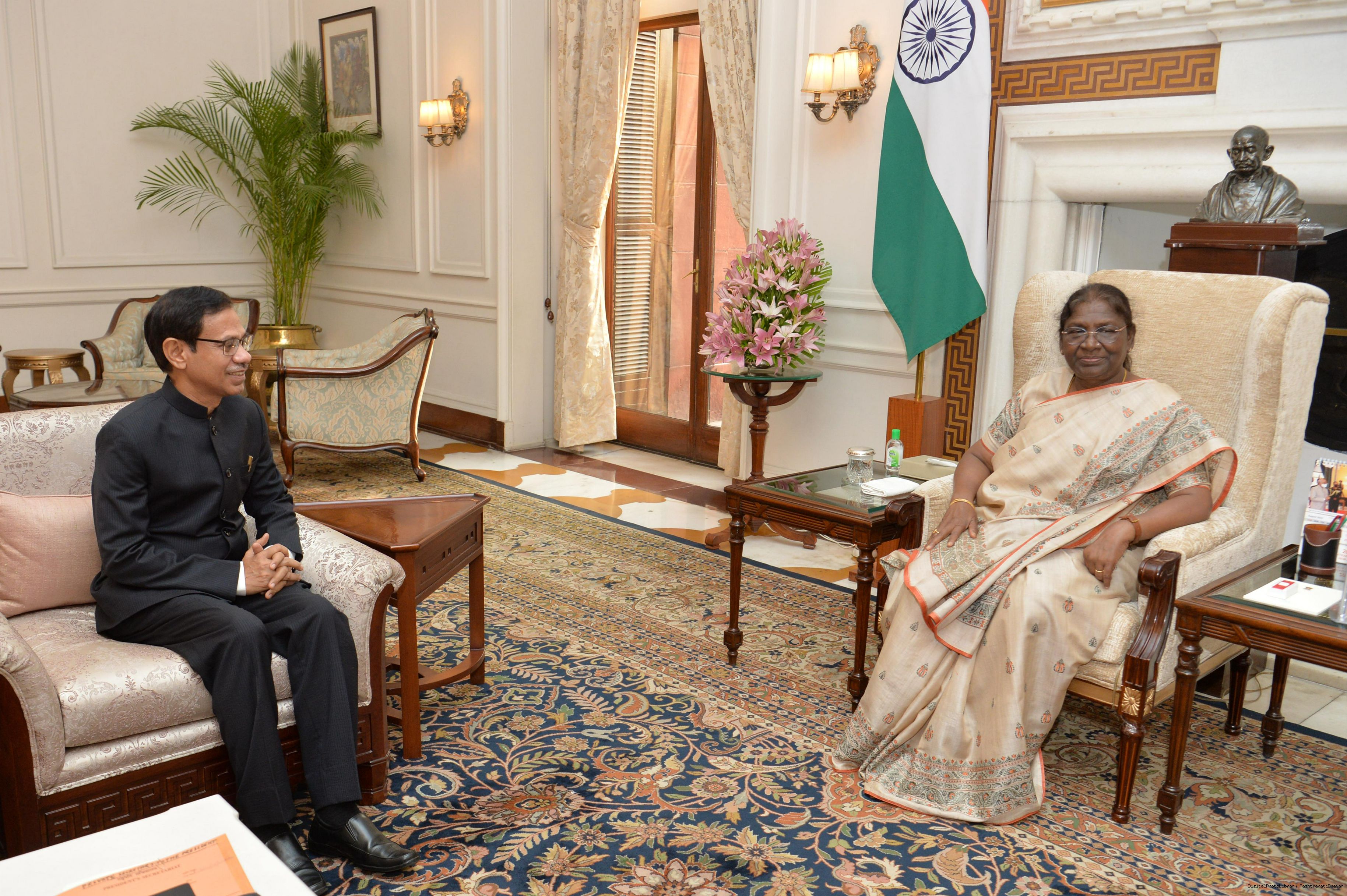| Caption: | Shri Sunil Kumar Gupta, Secretary to the Vice President of India with other meeting with the President of India, Smt. Droupadi Murmu, at Rashtrapati Bhavan on Aug 25, 2022. |