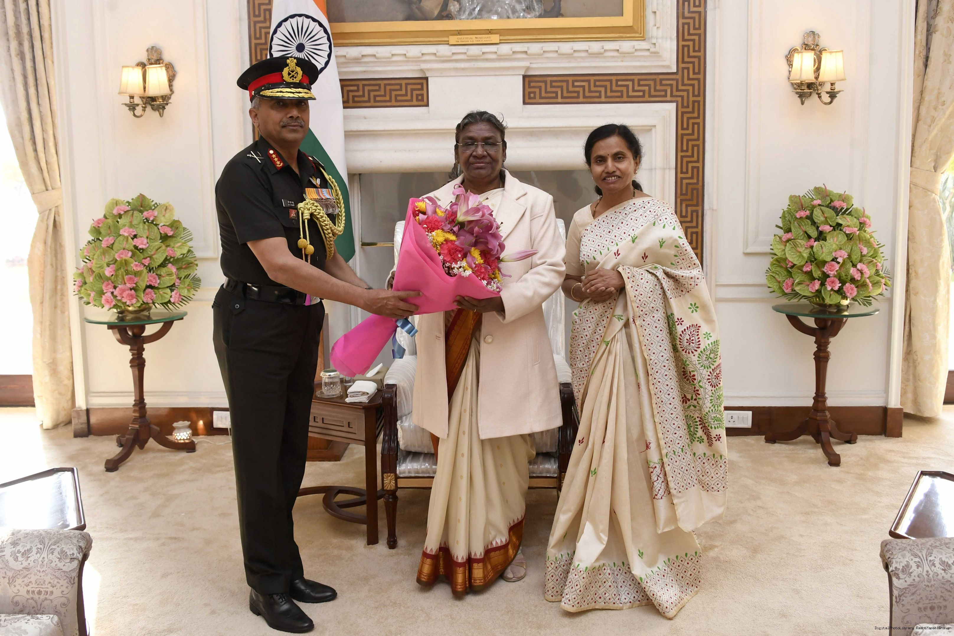 | Caption: | Lt. Gen BS Raju, Vice Cheif of Army Staff along with others meeting the President of India, Smt. Droupadi Murmu, at Rashtrapati Bhavan on February 25, 2023. |