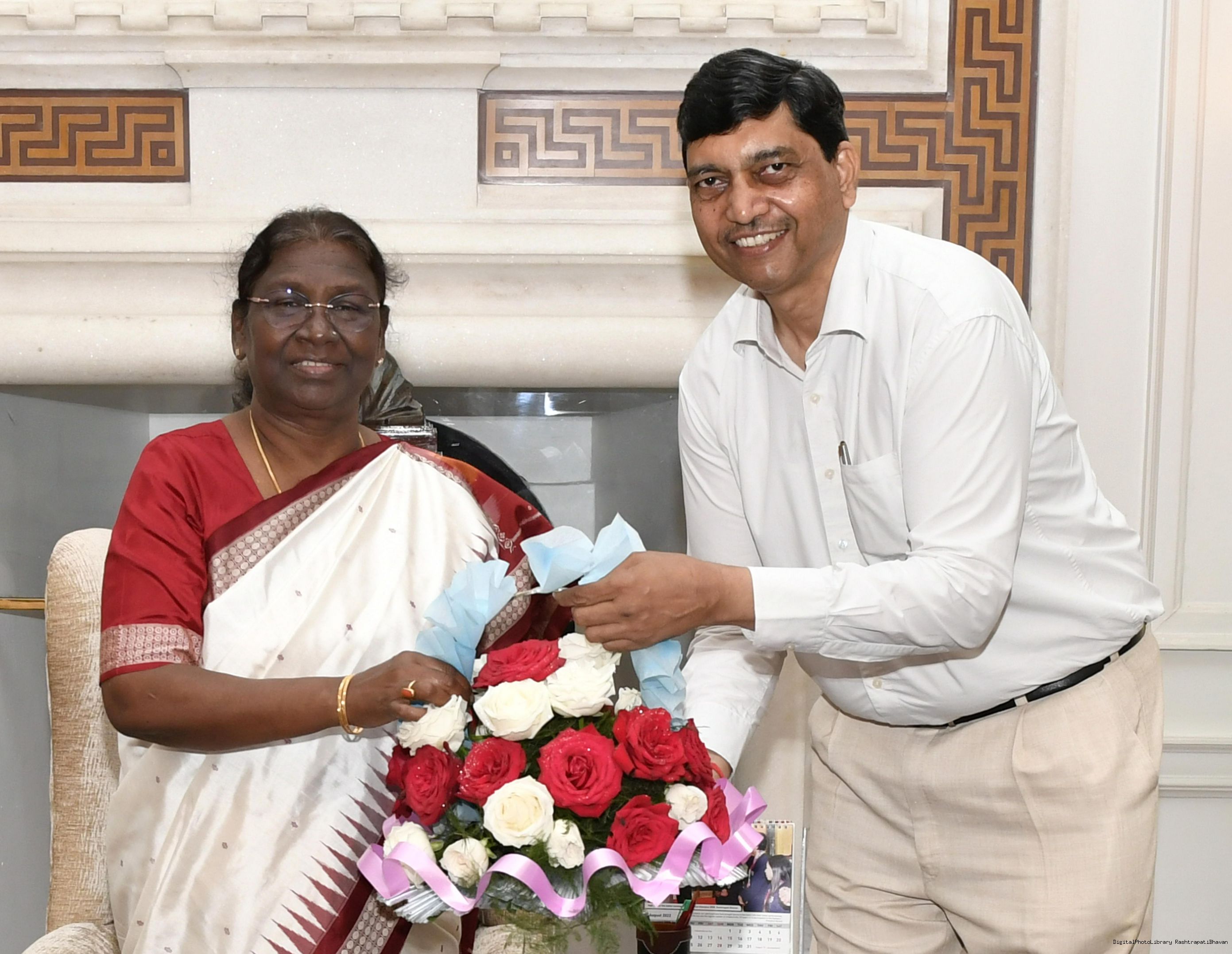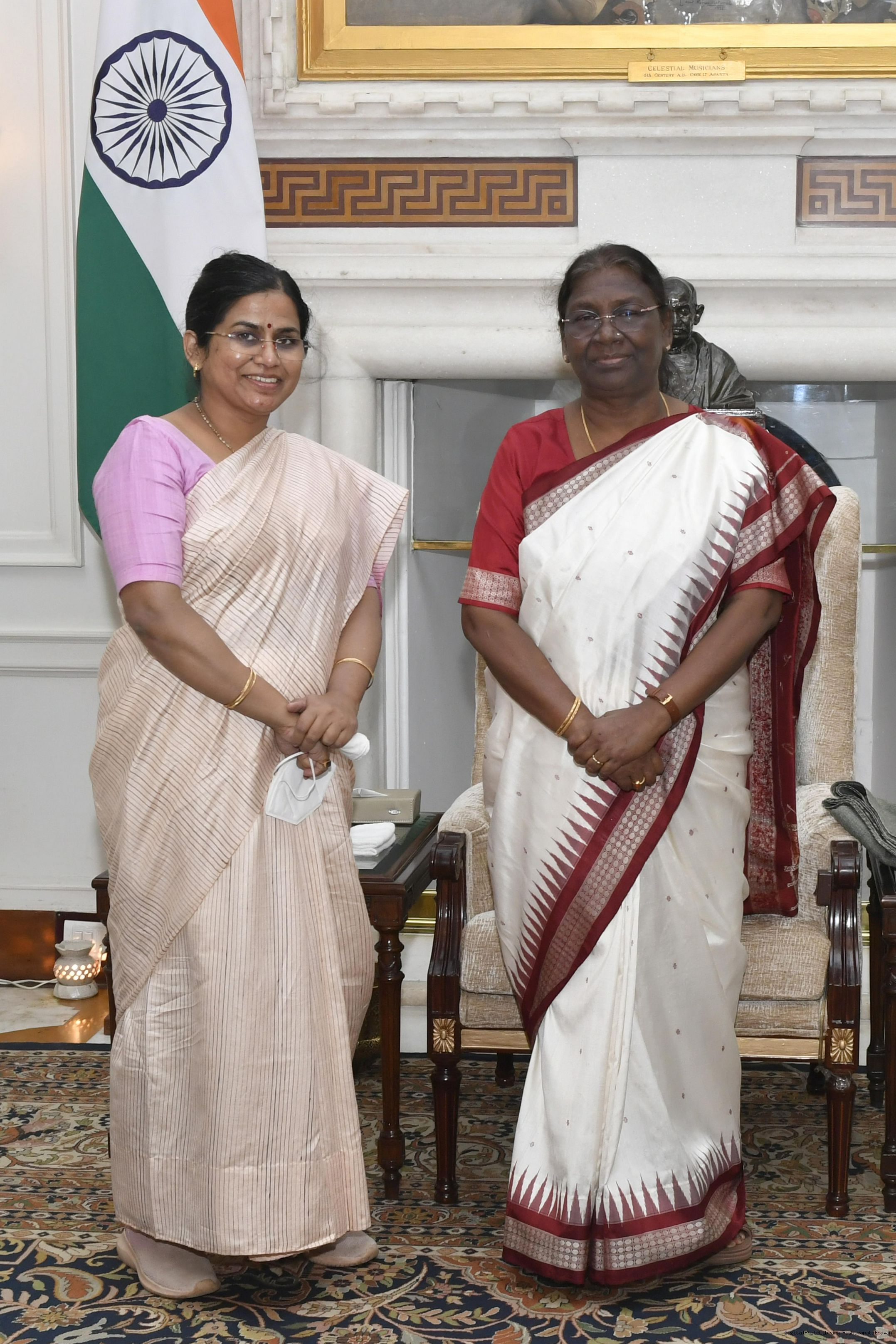 | Caption: | Dr. Vijaya Lakshmi Mohanty, Director HRDC, Sri Sri University, Cuttack along with others meeting with the President of India, Smt. Droupadi Murmu, at Rashtrapati Bhavan on Aug 27, 2022. |