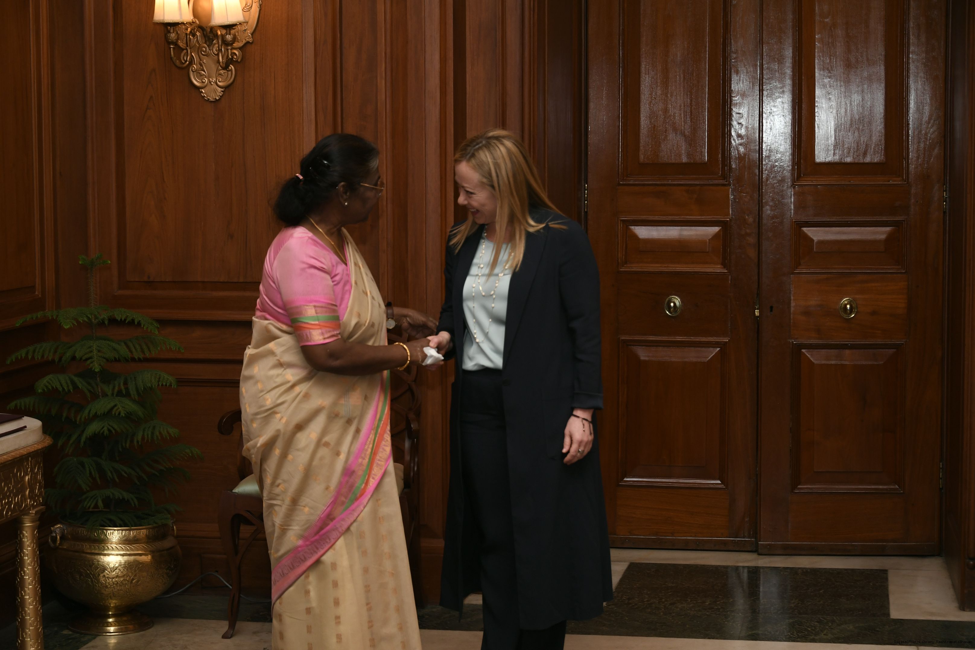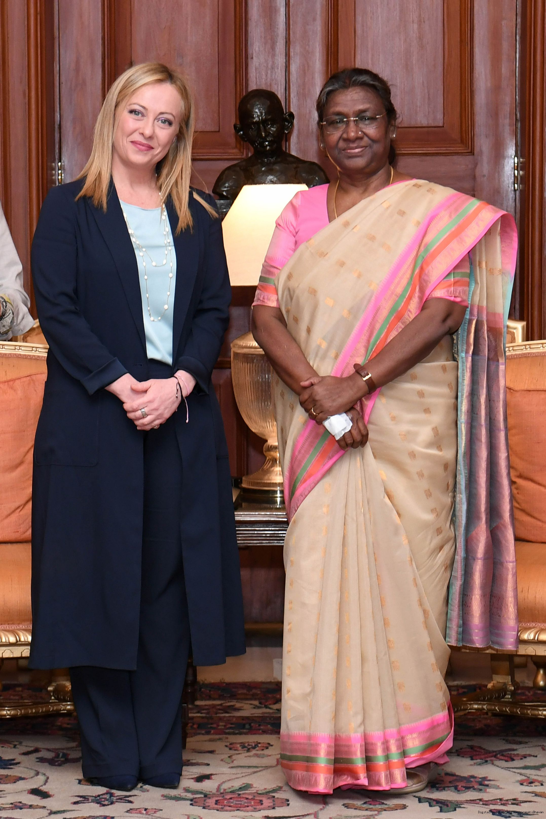 | Caption: | The Prime Minister of the Italian Republic, HE Ms. Giorgia Meloni called on the President of India, Smt. Droupadi Murmu, at Rashtrapati Bhavan on March 2, 2023. |