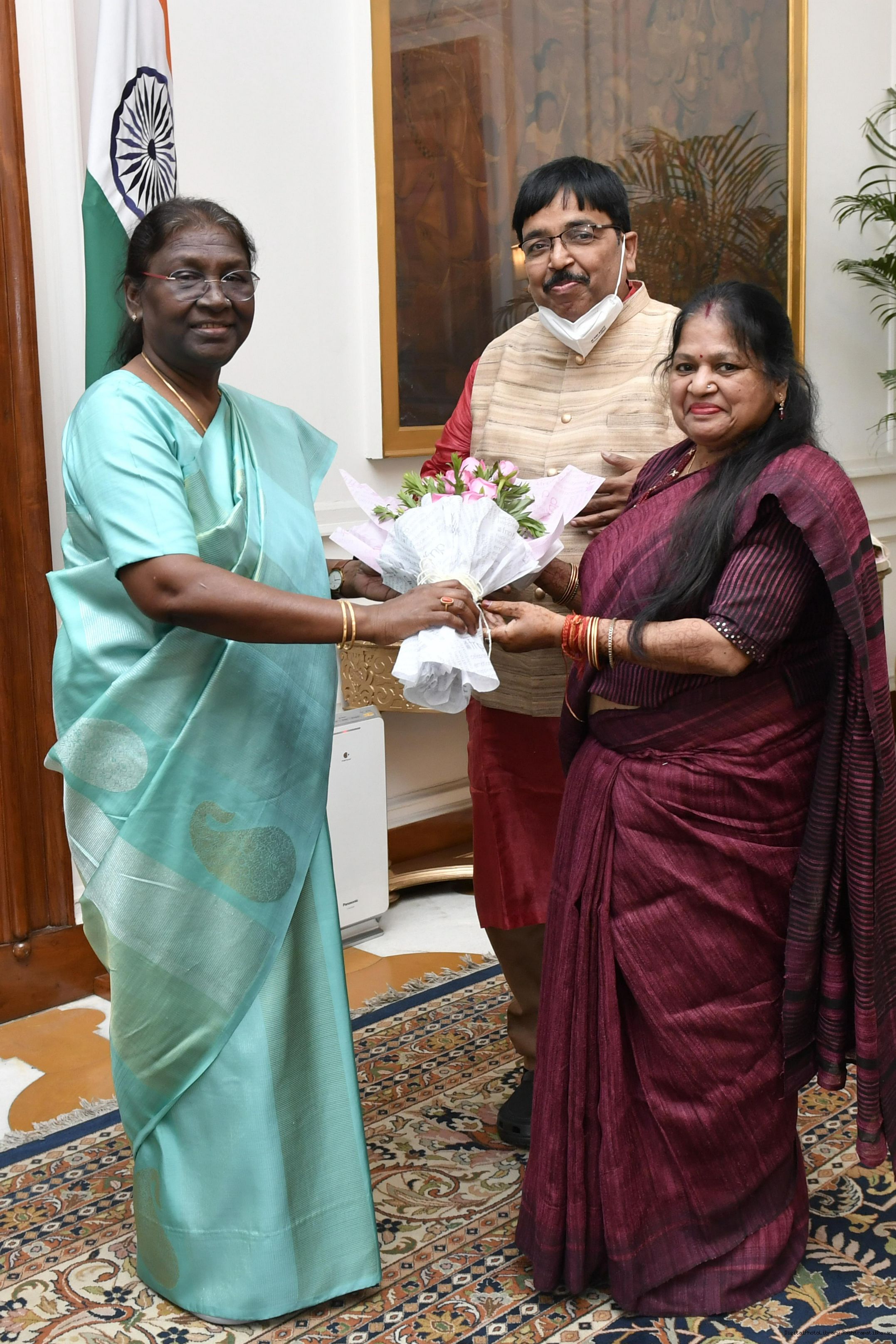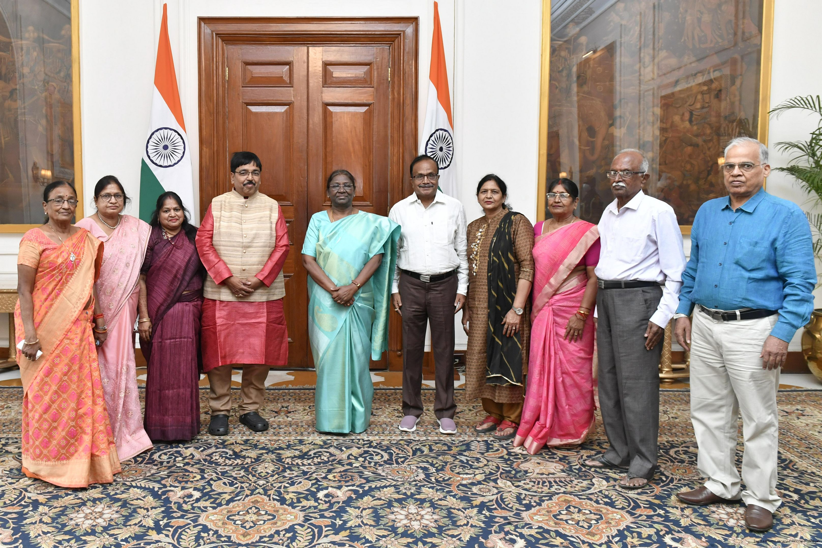 | Caption: | Shri Manoj Kumar Dhandhania along with others meeting with the President of India, Smt. Droupadi Murmu, at Rashtrapati Bhavan on Aug 29, 2022. |