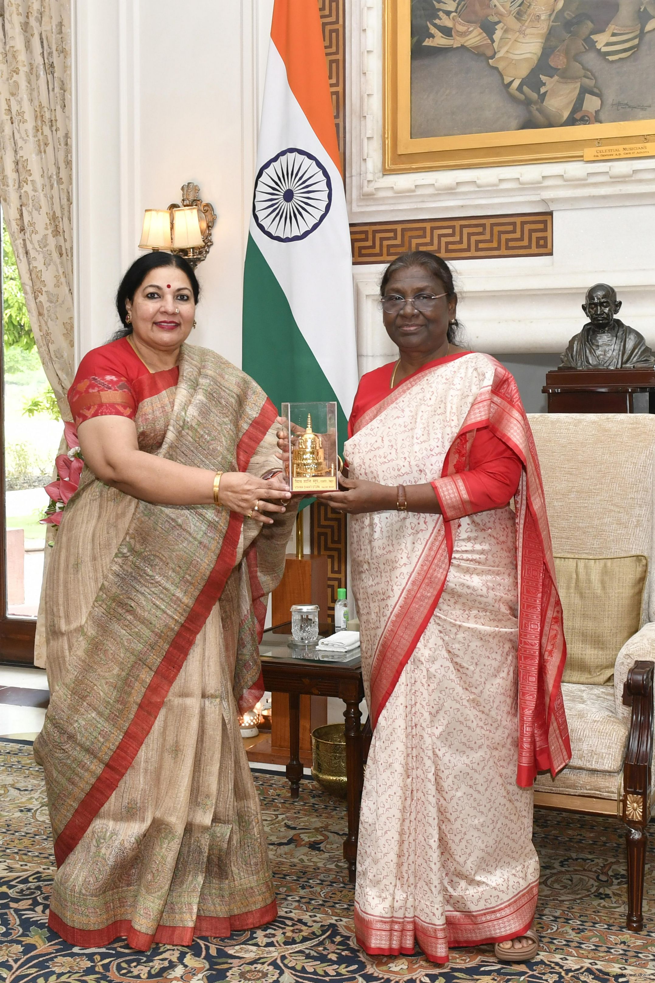 | Caption: | Prof. Sunaina Singh, Vice Chancellor, Nalanda University meeting with the President of India, Smt. Droupadi Murmu, at Rashtrapati Bhavan on Sep 01, 2022. |