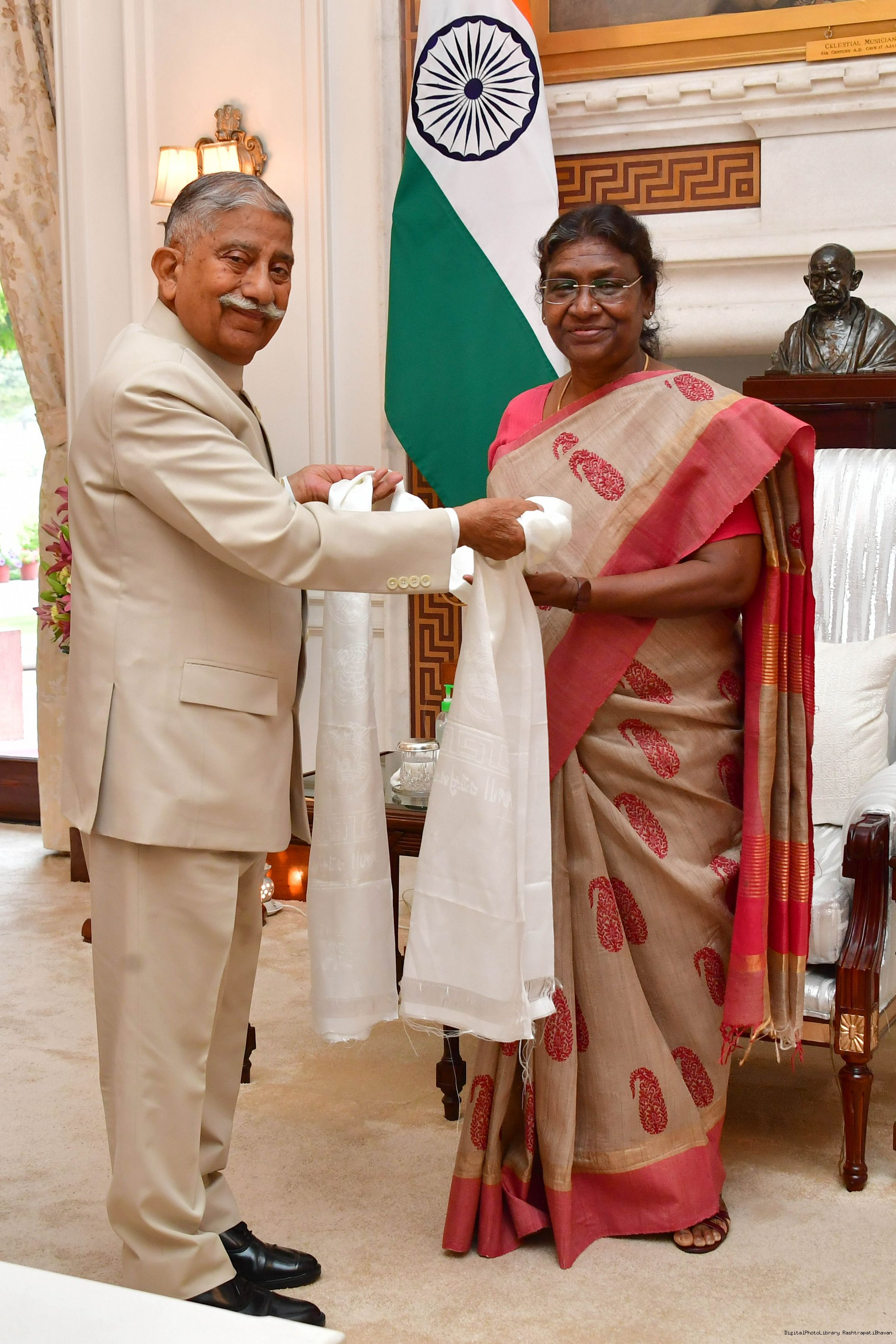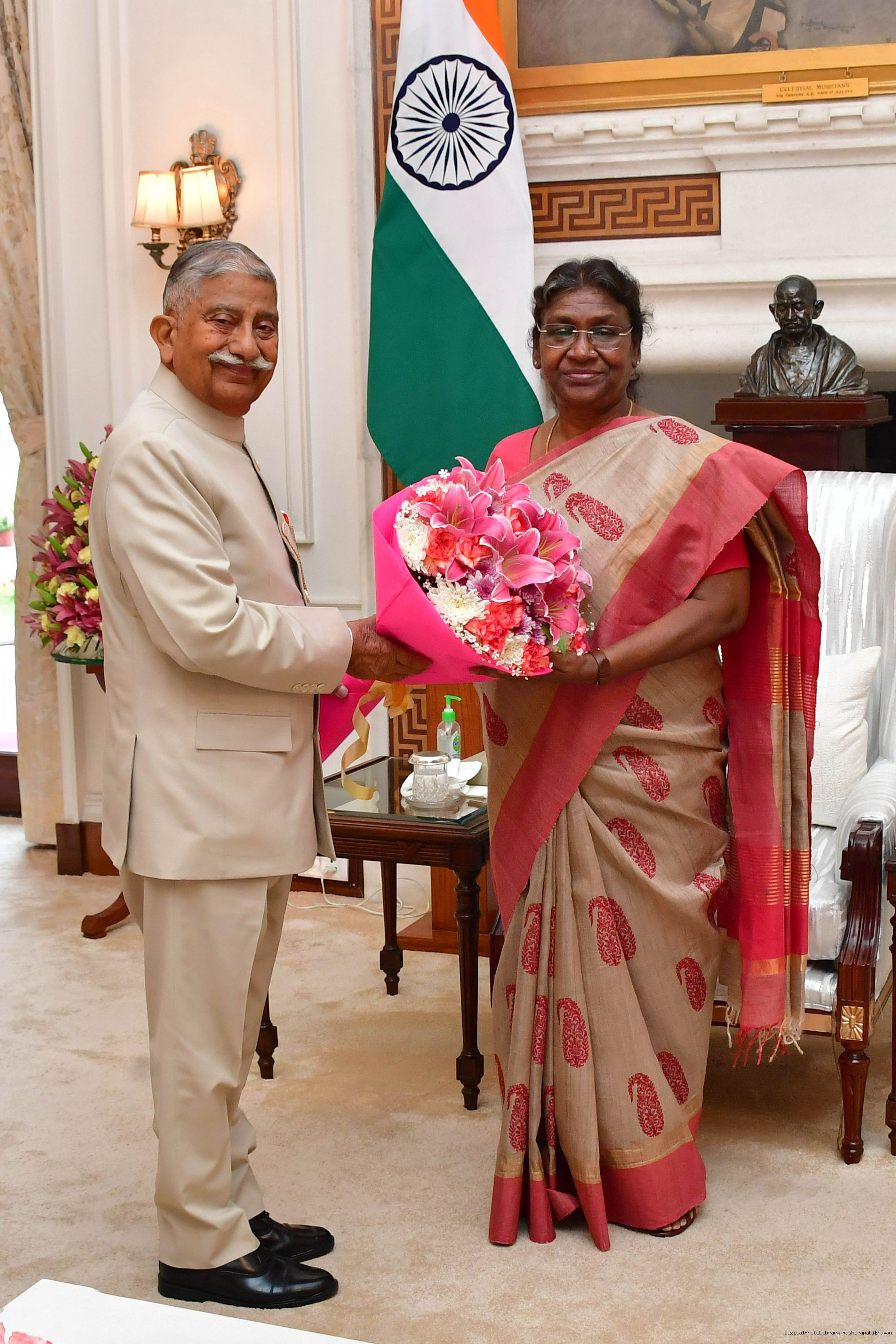 | Caption: | The Lieutenant Governor of Union Territory Ladakh, Brig. Dr. B.D. Mishra (Retd) called on the President of India Smt Droupadi Murmu, at Rashtrapati Bhavan on March 11, 2023. |