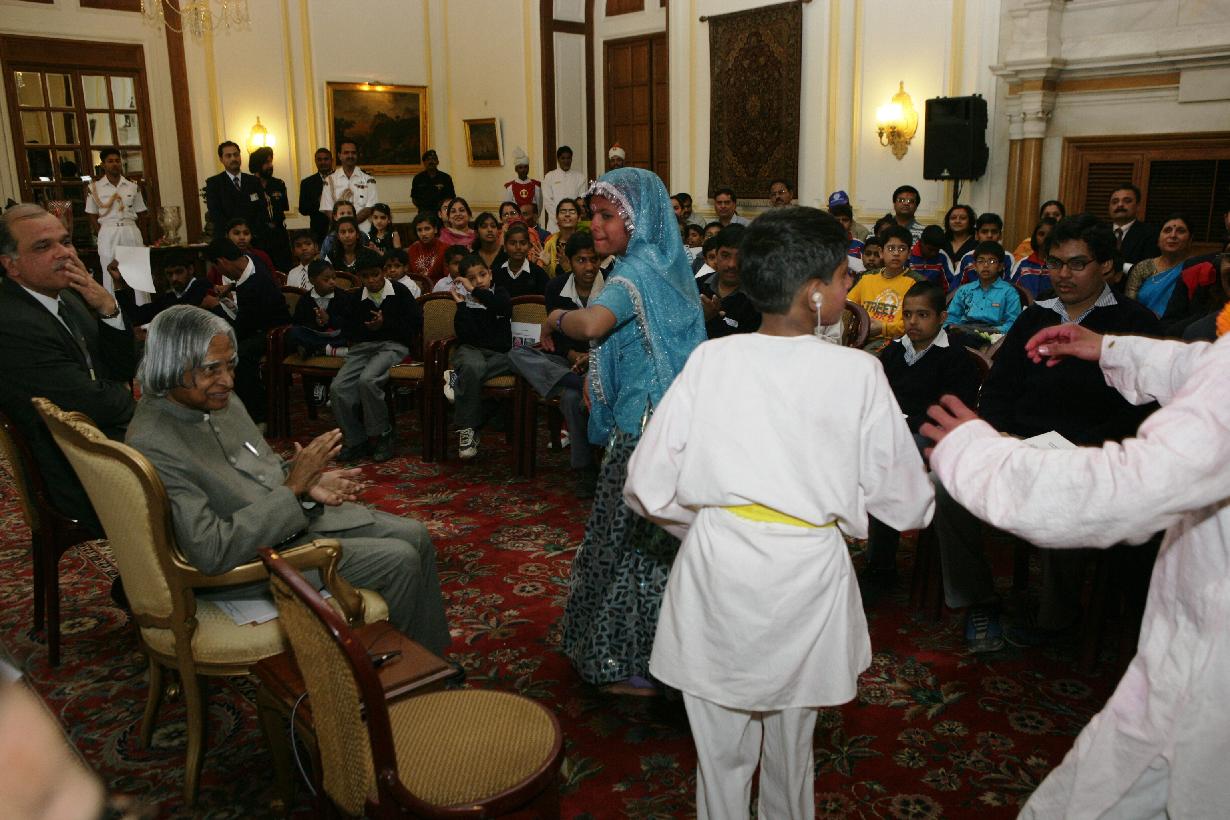 | Caption: | The President of India, Dr A P J Abdul Kalam receiving Holi Greetings from the School Children and others at the Yellow Drawing Room of Rashtrapati Bhavan in New Delhi on March 04, 2007 |