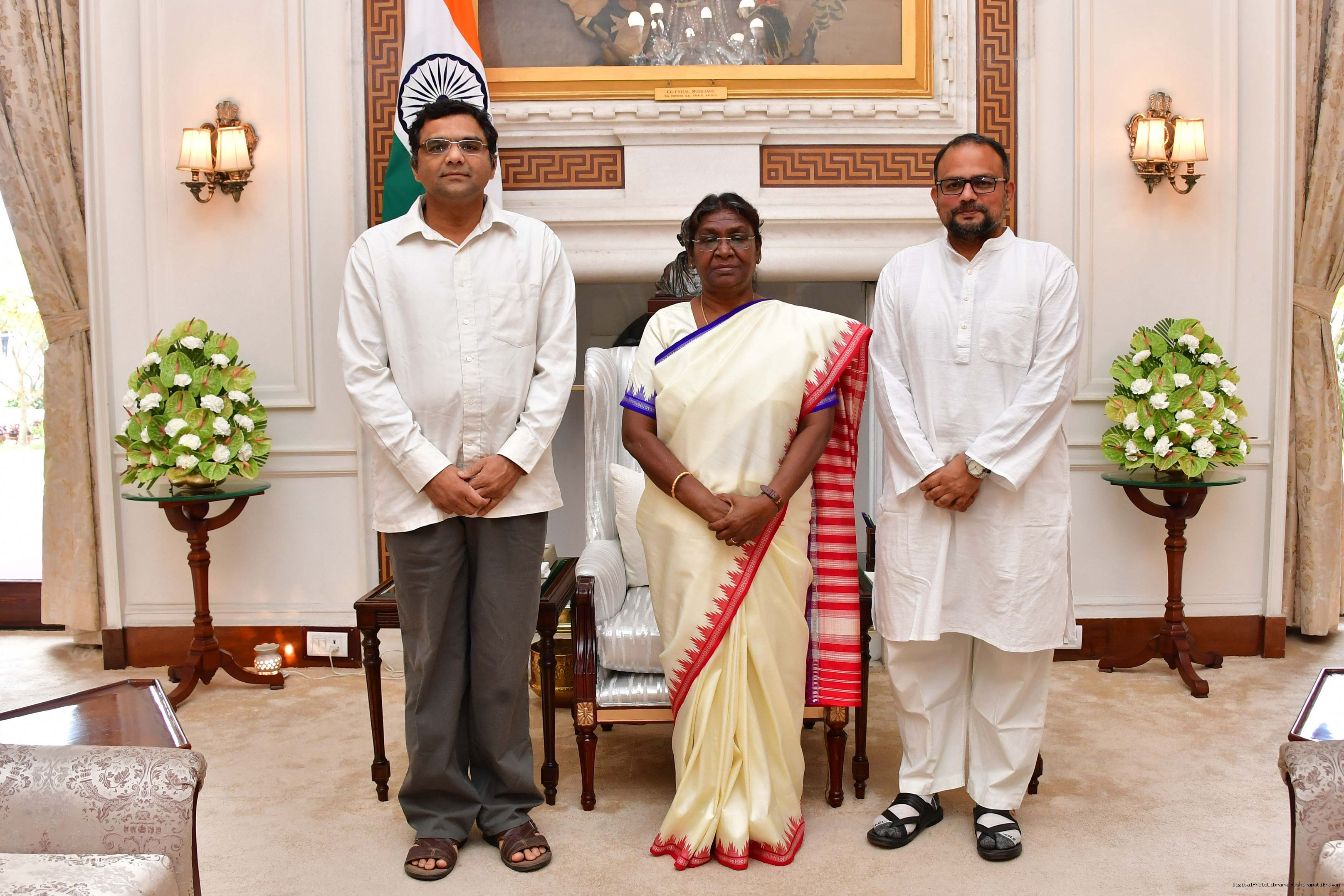 | Caption: | Dr. Digant Amte along with his brother Shri Aniket Amte from Lok Biradari Prakalp, Gadchiroli, Maharashtra meeting with the President of India, Smt. Droupadi Murmu, at Rashtrapati Bhavan on March 13, 2023. |