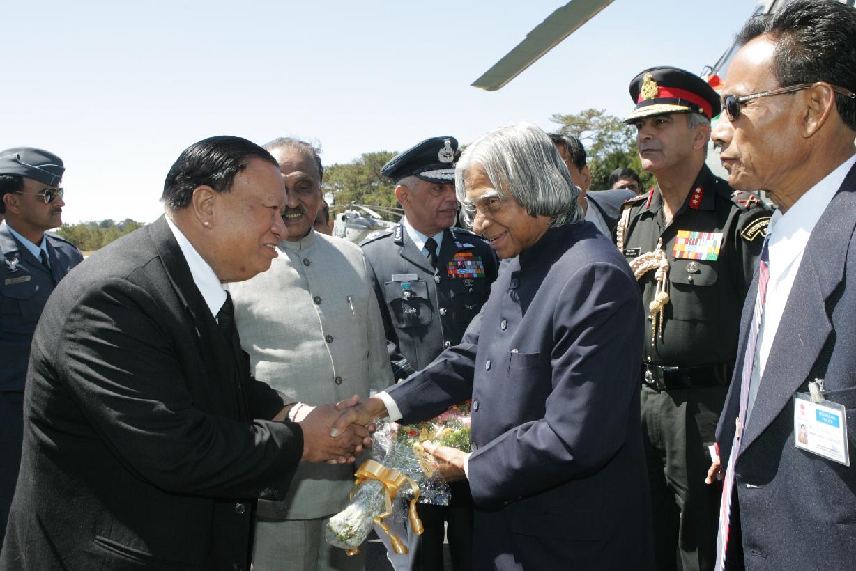 | Caption: | The President of India, Dr A P J Abdul Kalam being welcomed by the Governor of Meghalaya, Shri M M Jacob at Shillong Airport in Meghalaya on March 16, 2007 |
