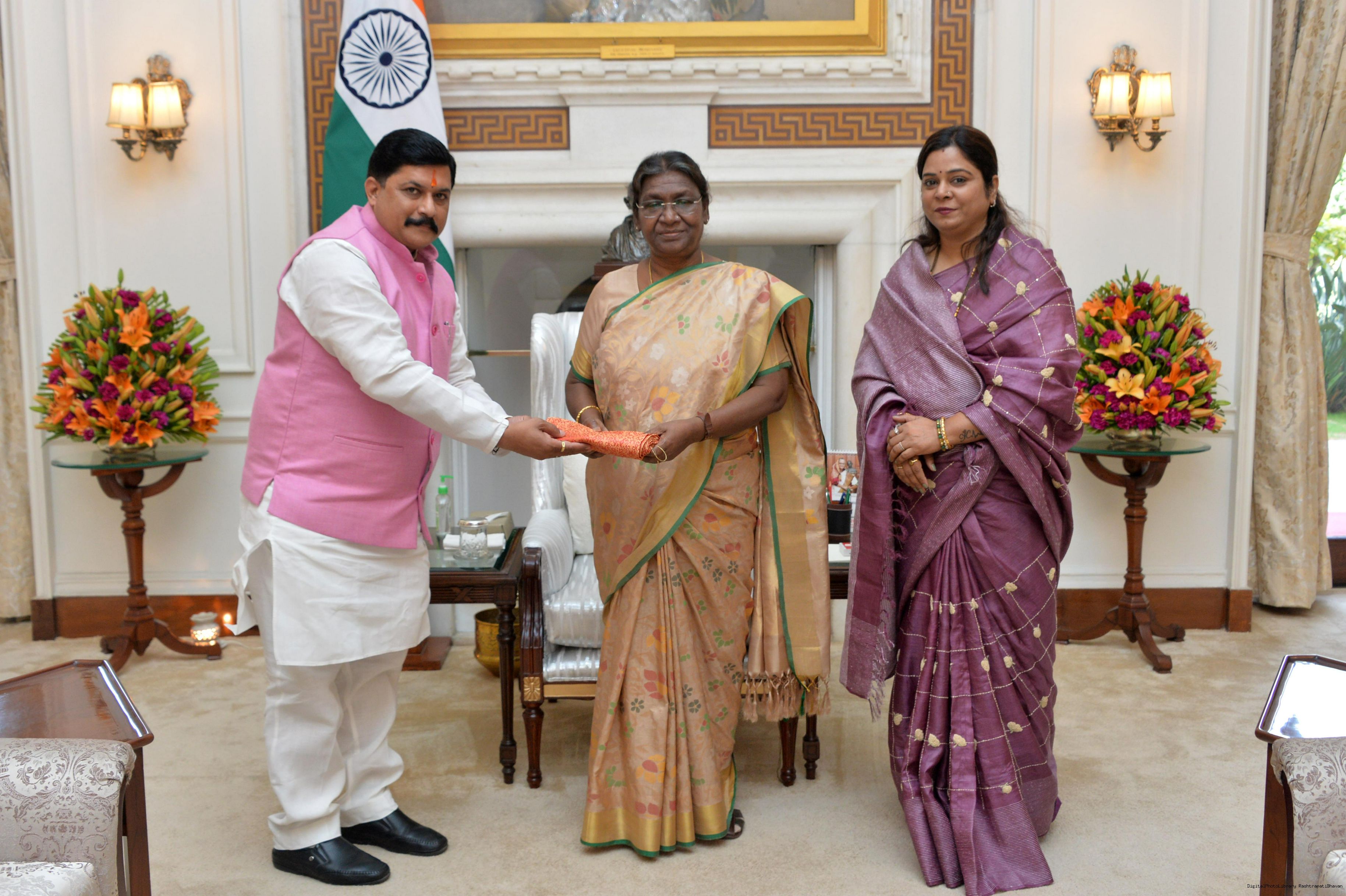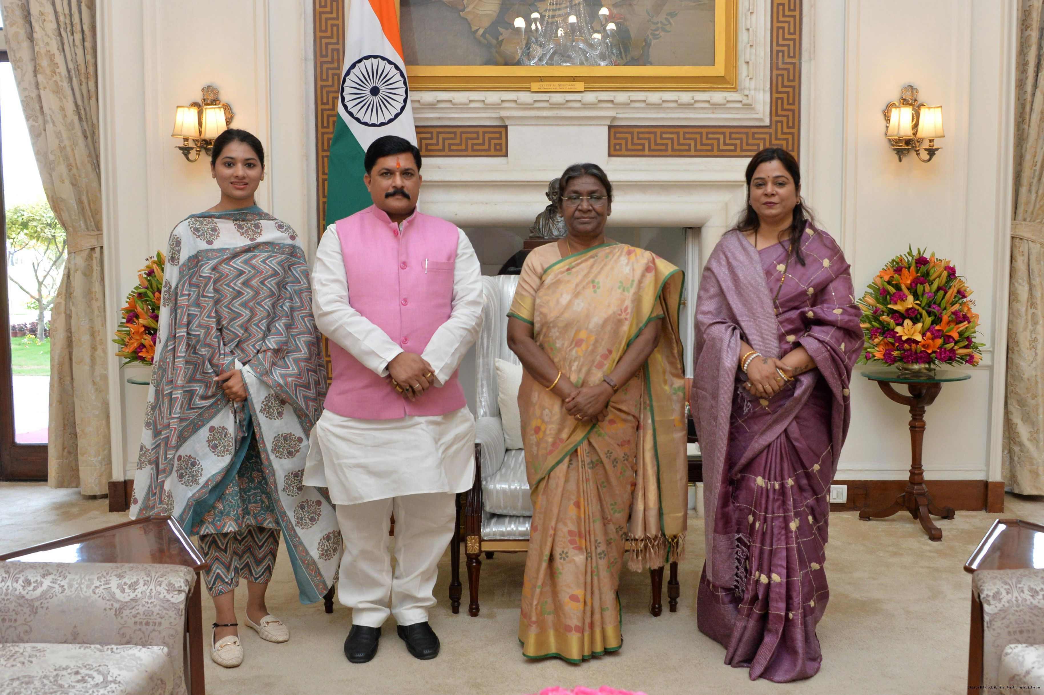 | Caption: | Dr. Krishna Pal Singh Yadav, MP (LS) along with his wife Dr. Anuradha Yadav and Ms. muskan Raghuvanshi from Ashoknagar, Madhya Pradesh meeting with the President of India, Smt. Droupadi Murmu, at Rashtrapati Bhavan on March 14, 2023. |
