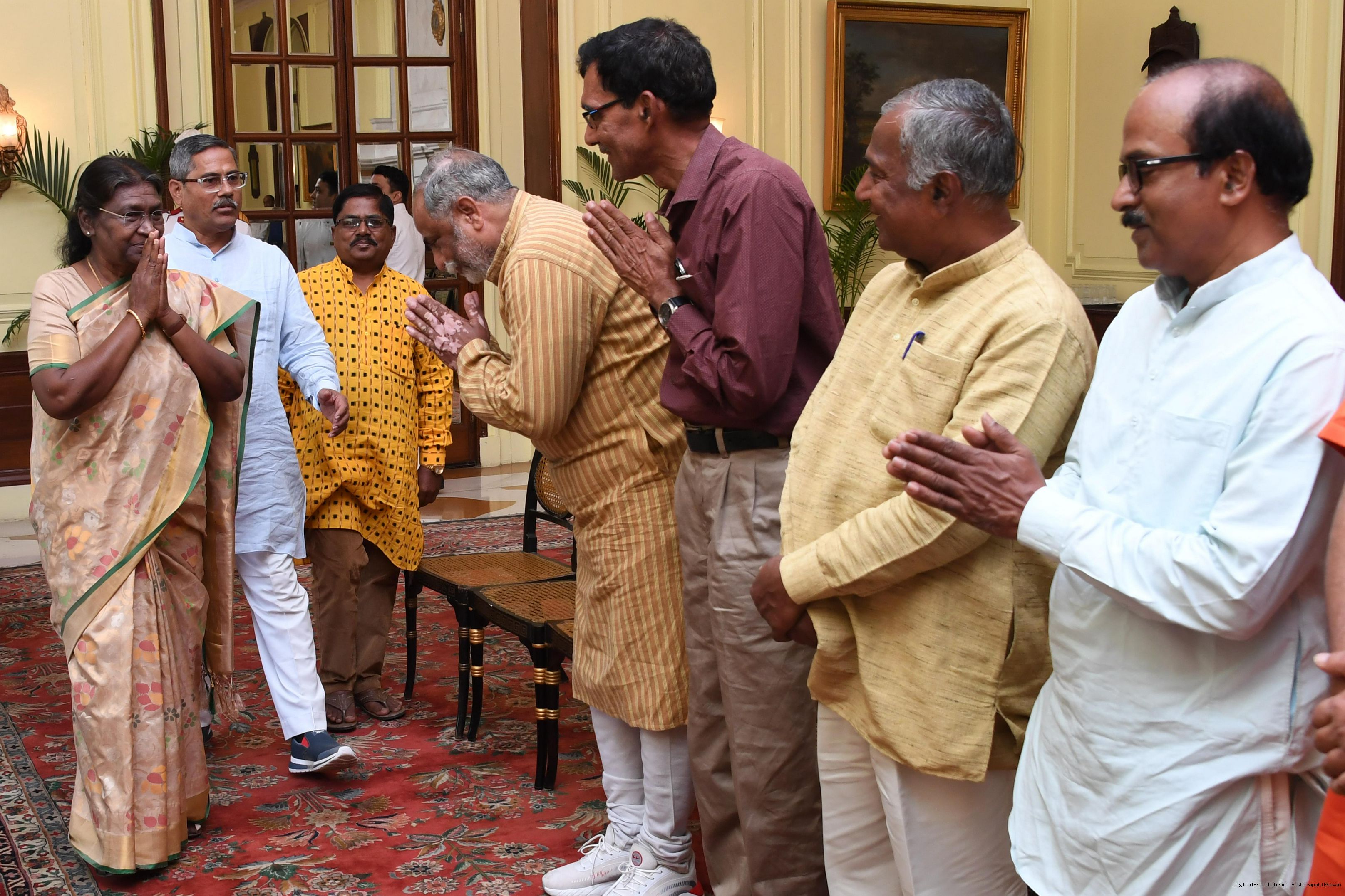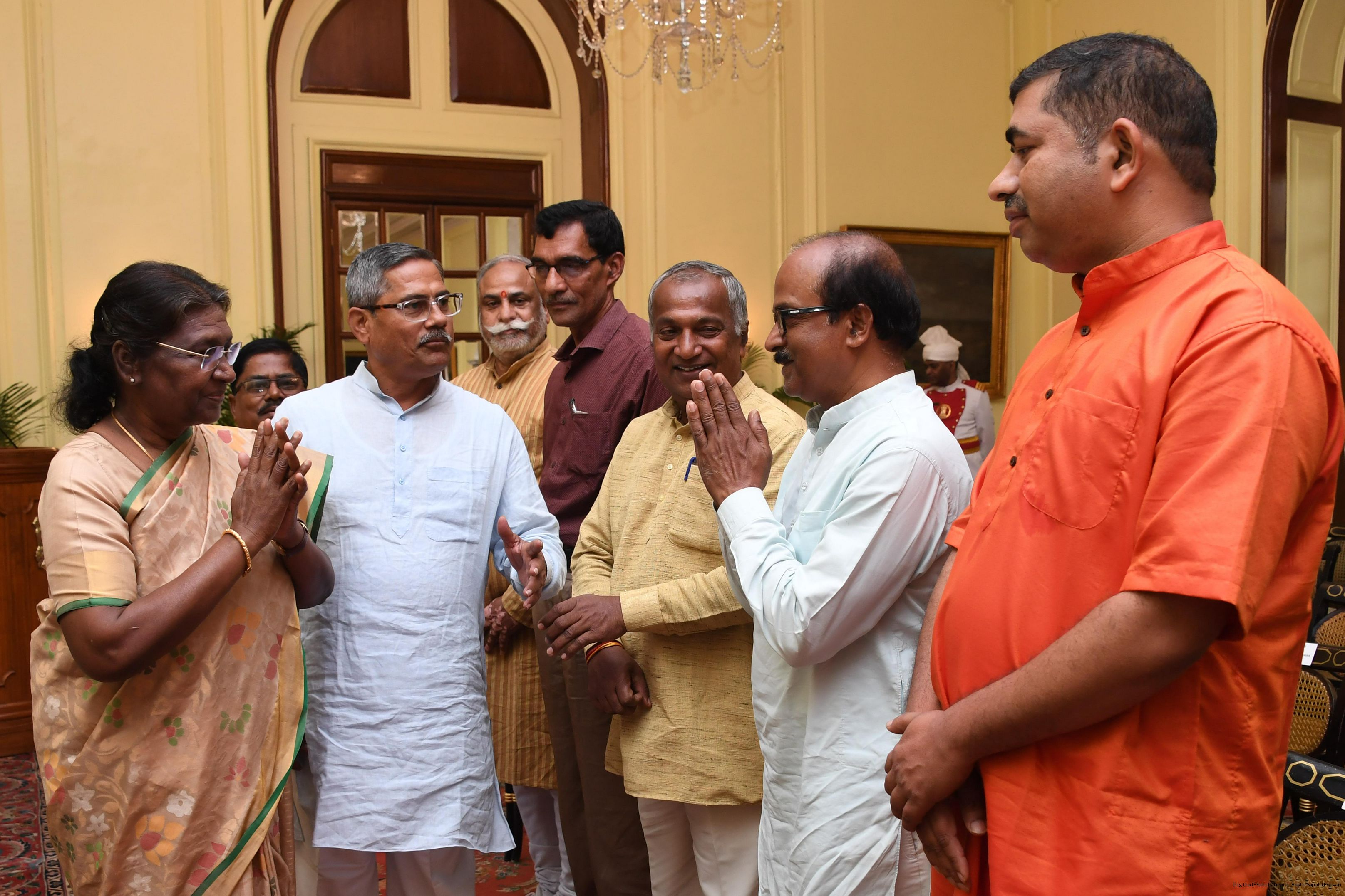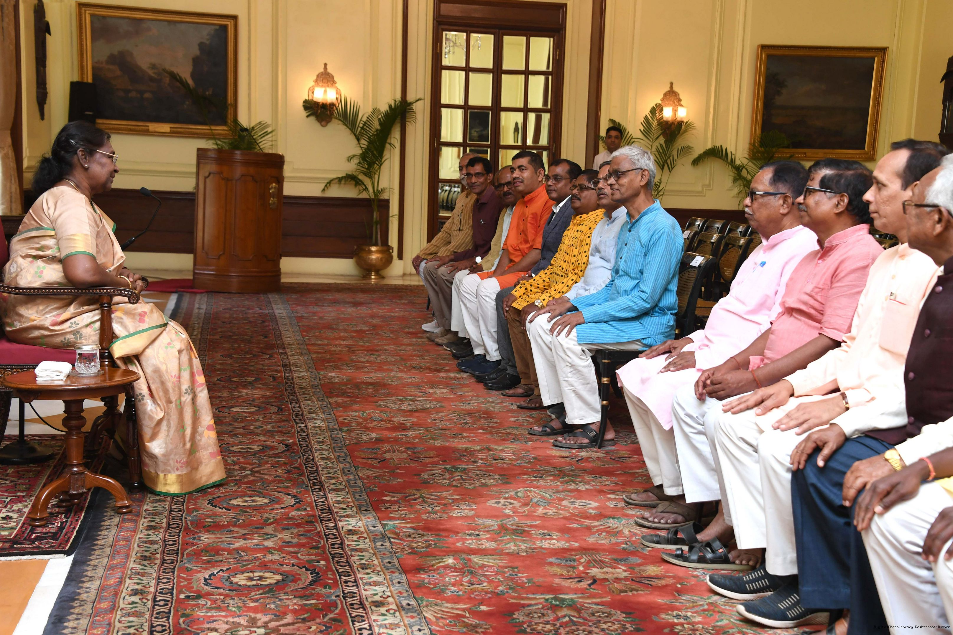 | Caption: | Shri Jagadish Prasada Khadanga along with others meeting with the President of India, Smt. Droupadi Murmu, at Rashtrapati Bhavan on March 15, 2023. |
