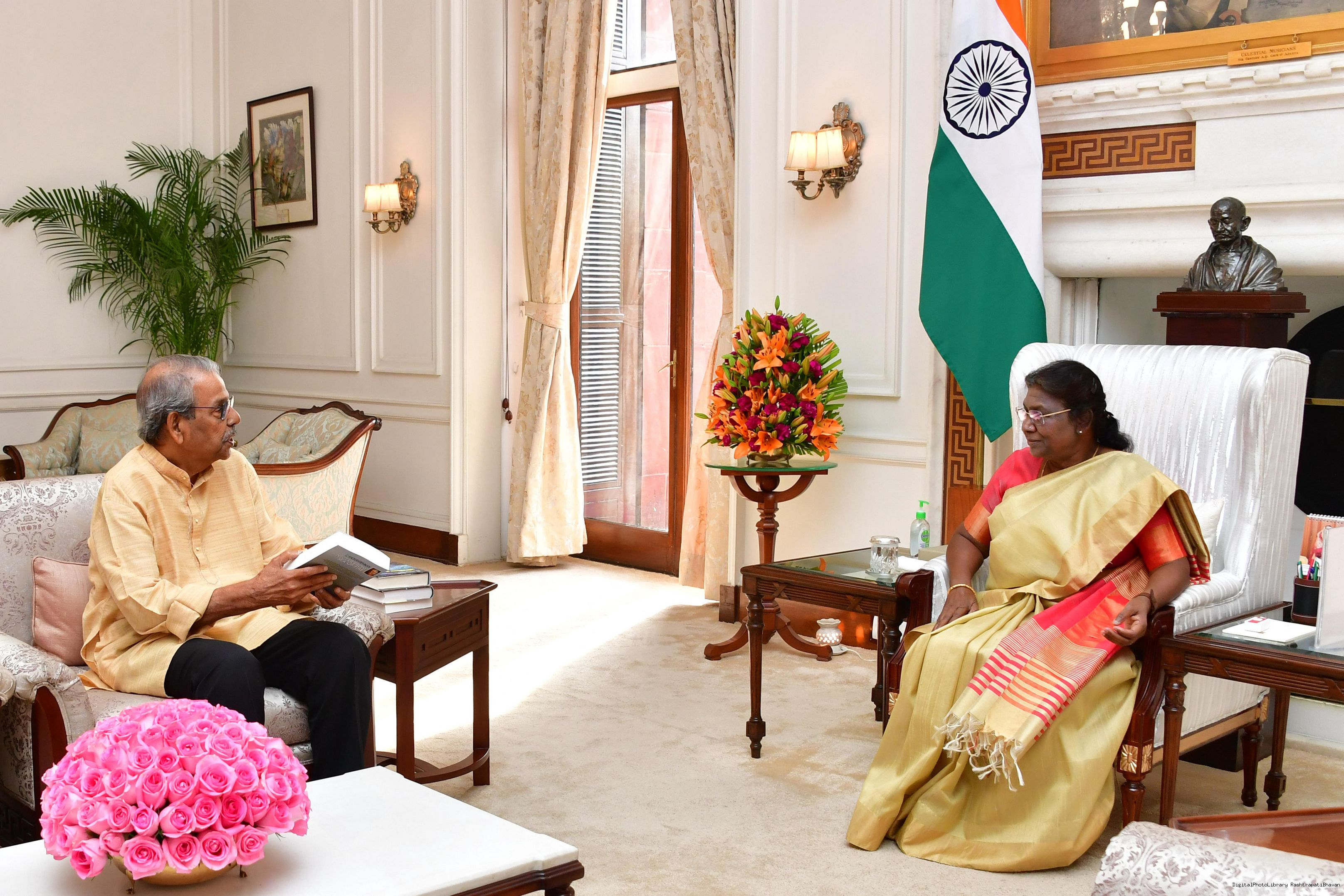 | Caption: | Dr. C. Radhakrishnan, Writer, Researcher Mediaperson from Kochi meeting with the President of India, Smt. Droupadi Murmu, at Rashtrapati Bhavan on March 15, 2023. |