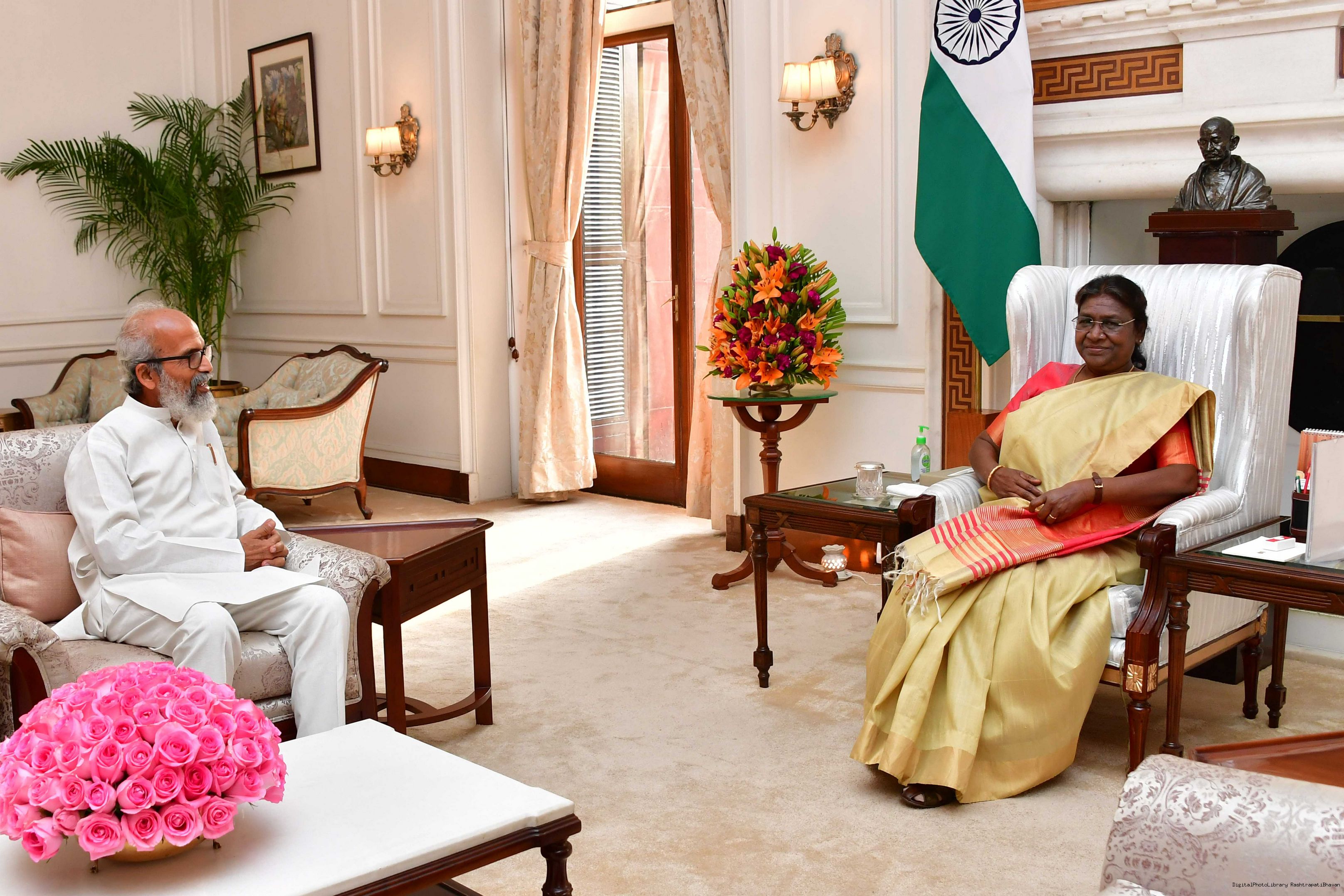 | Caption: | Shri Pratap Chandra Sarangi, MP (LS) meeting with the President of India, Smt. Droupadi Murmu, at Rashtrapati Bhavan on March 15, 2023. |