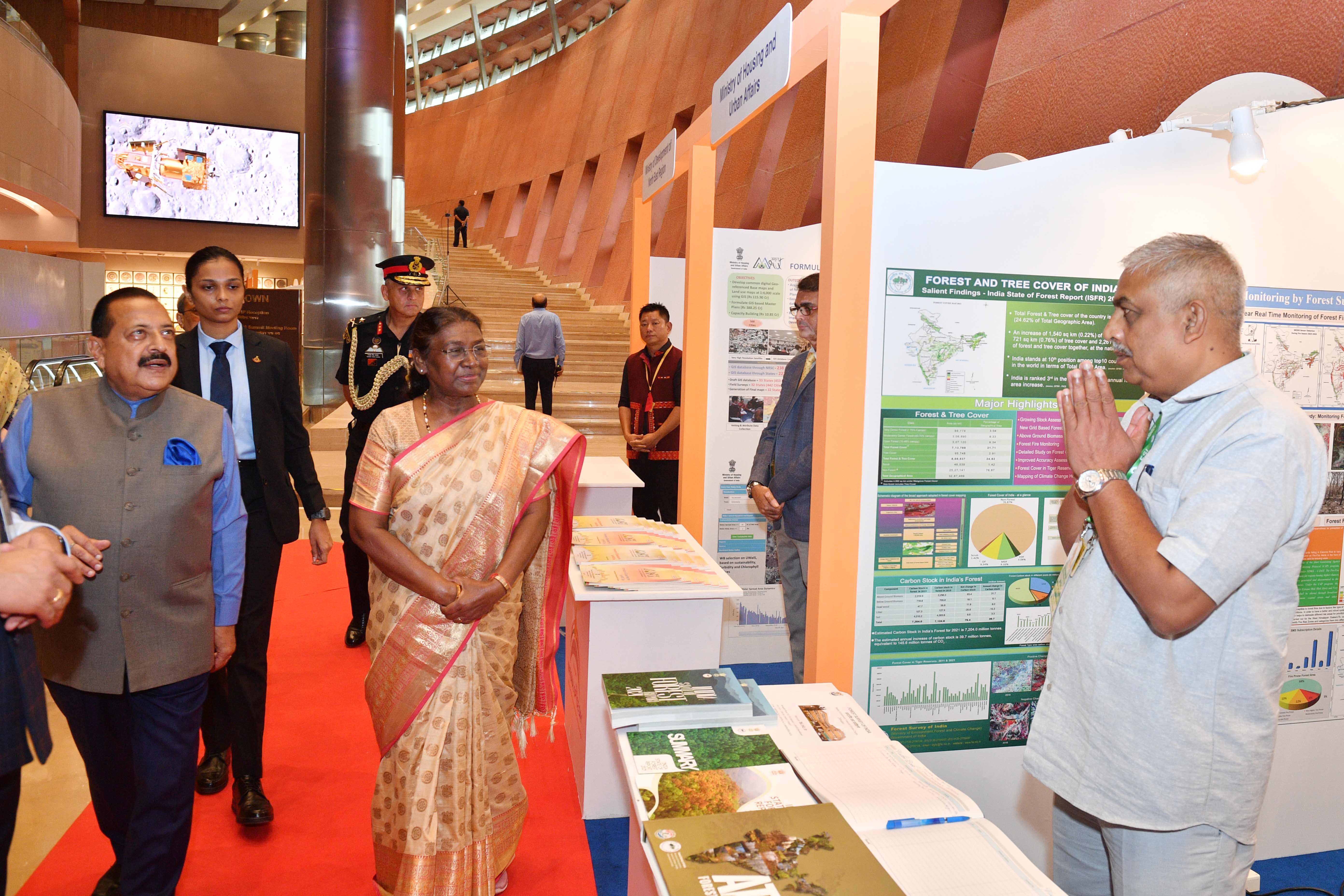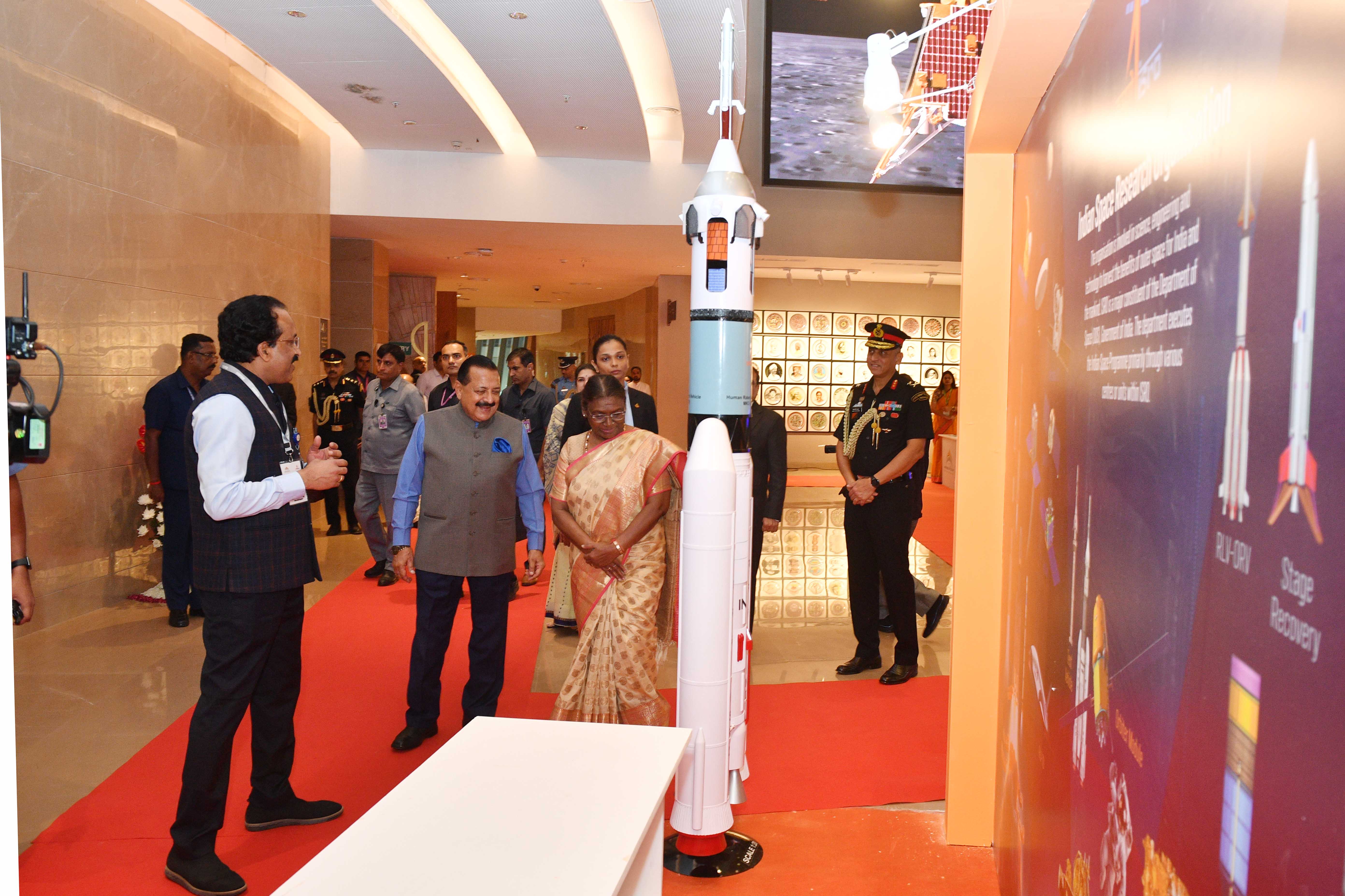 | Caption: | The President of India, Smt. Droupadi Murmu graced the first National Space Day Celebration at Bharat Mandapam in New Delhi on August 23, 2024. |
